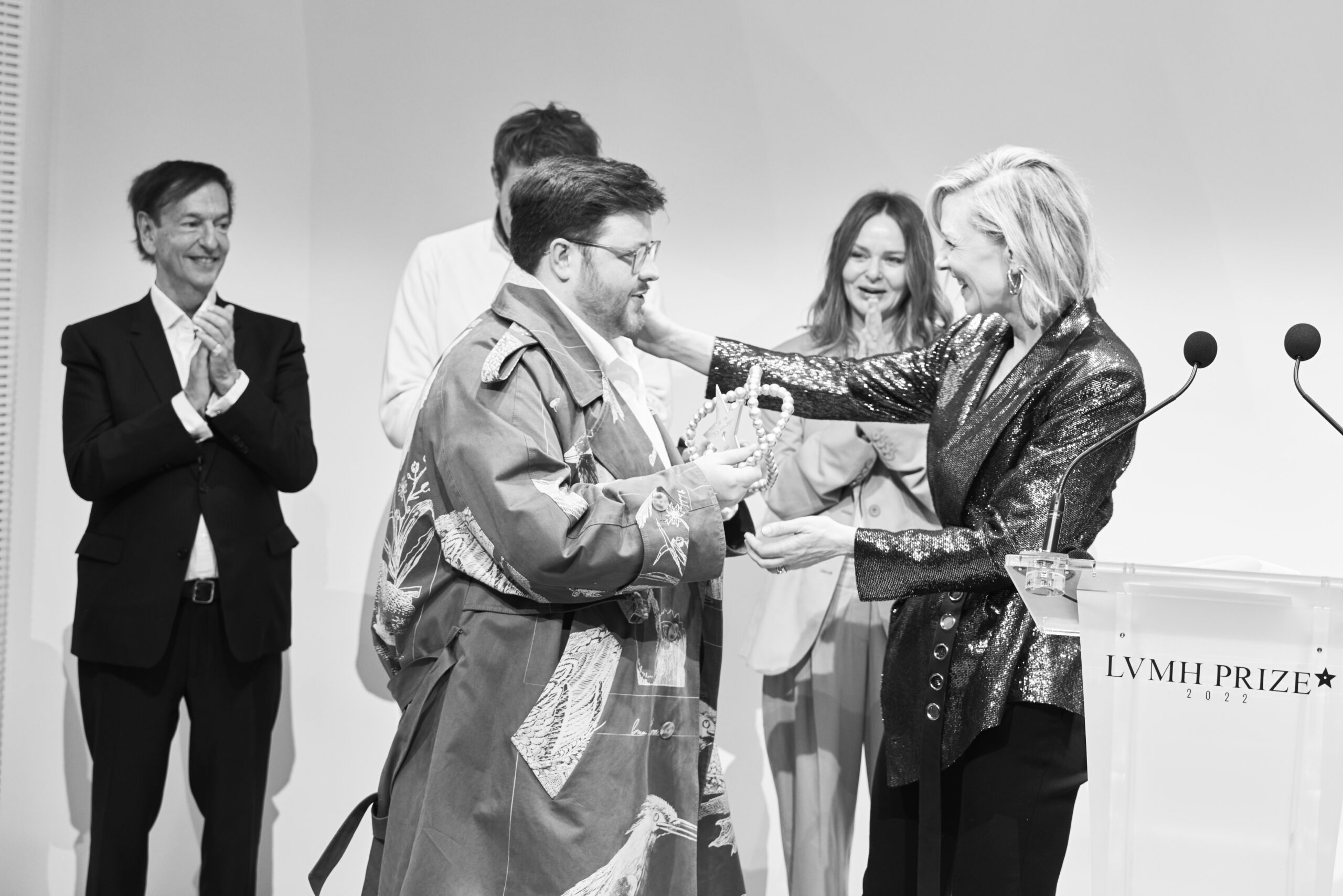 La finale de la neuvième édition du Prix LVMH pour les Jeunes Créateurs de Mode s’est déroulée le 2 juin 2022 à la Fondation Louis Vuitton, en présence de sept directeurs artistiques de Maisons du Groupe LVMH: Jonathan Anderson, Maria Grazia Chiuri, Nicolas Ghesquière, Kim Jones, Stella McCartney, Nigo et Silvia Venturini Fendi, ainsi que de Delphine Arnault, Jean-Paul Claverie et Sidney Toledano. Parmi les huit finalistes, le jury a décerné le Prix LVMH à Steven Stokey Daley, 25 ans, un créateur britannique basé à Londres, fondateur de S.S. Daley, une marque de prêt-à-porter féminin et masculin. Il reçoit une dotation de 300 000 euros et bénéficiera d’un mentorat d’un an au sein de LVMH dans de nombreux domaines d’expertise. L’actrice Cate Blanchett a remis Le Prix LVMH lors de la cérémonie.