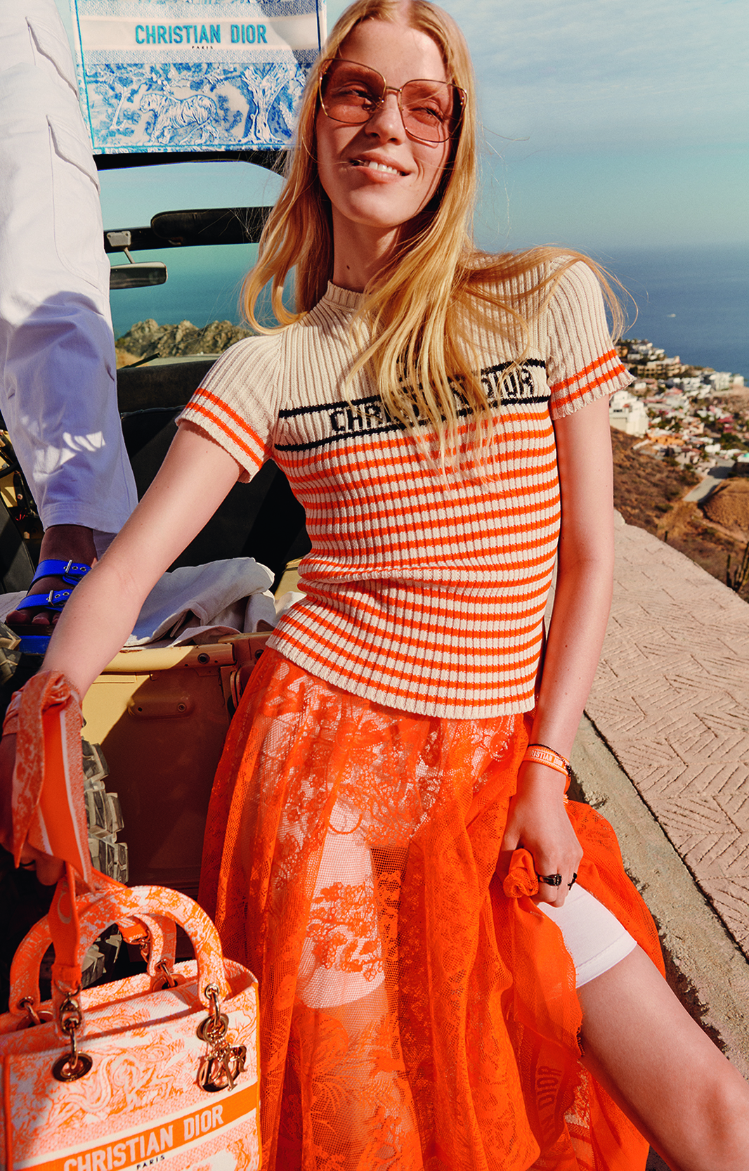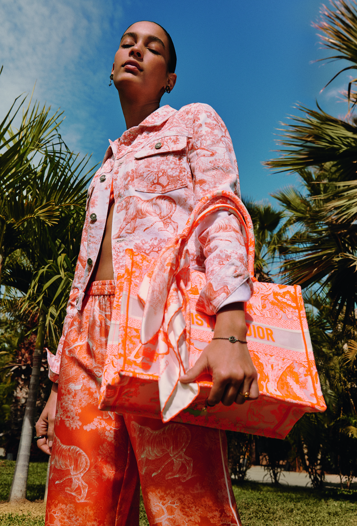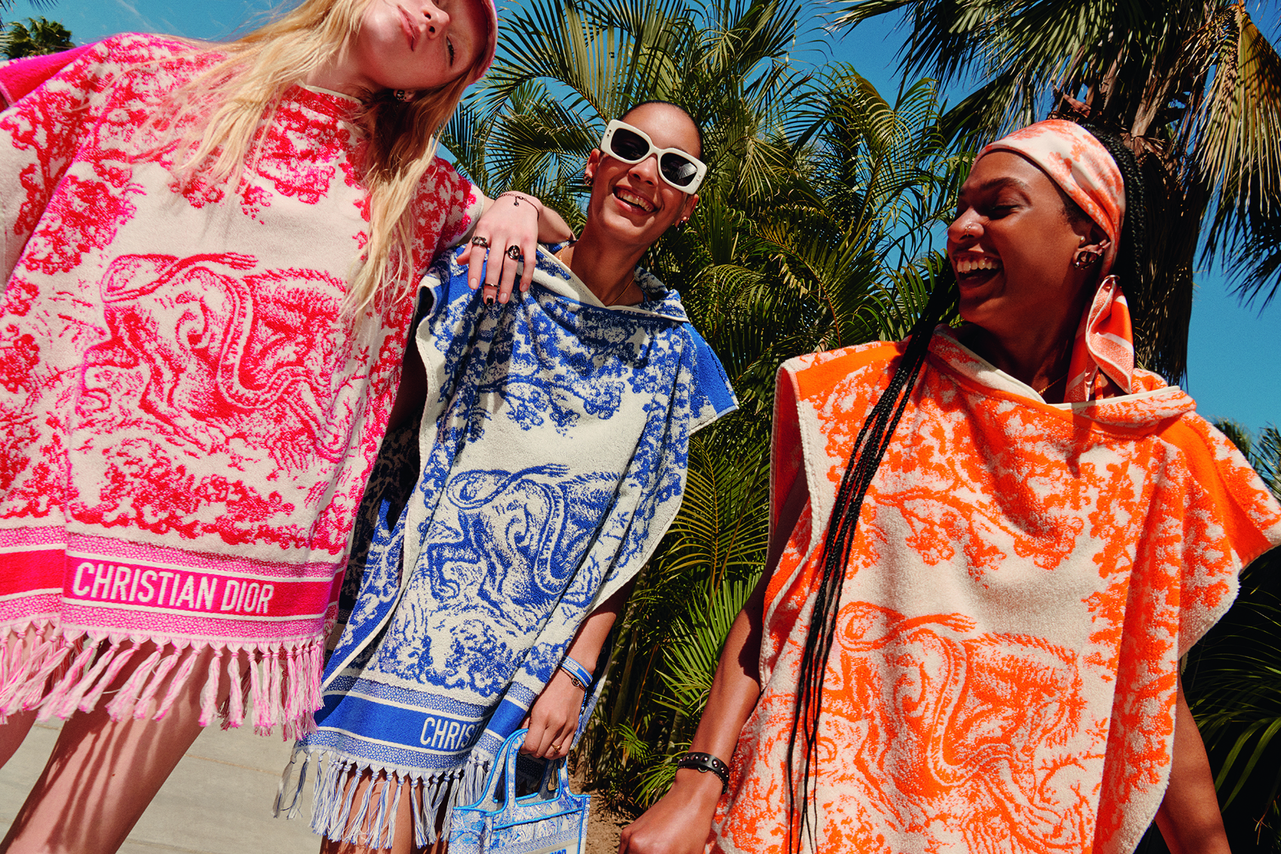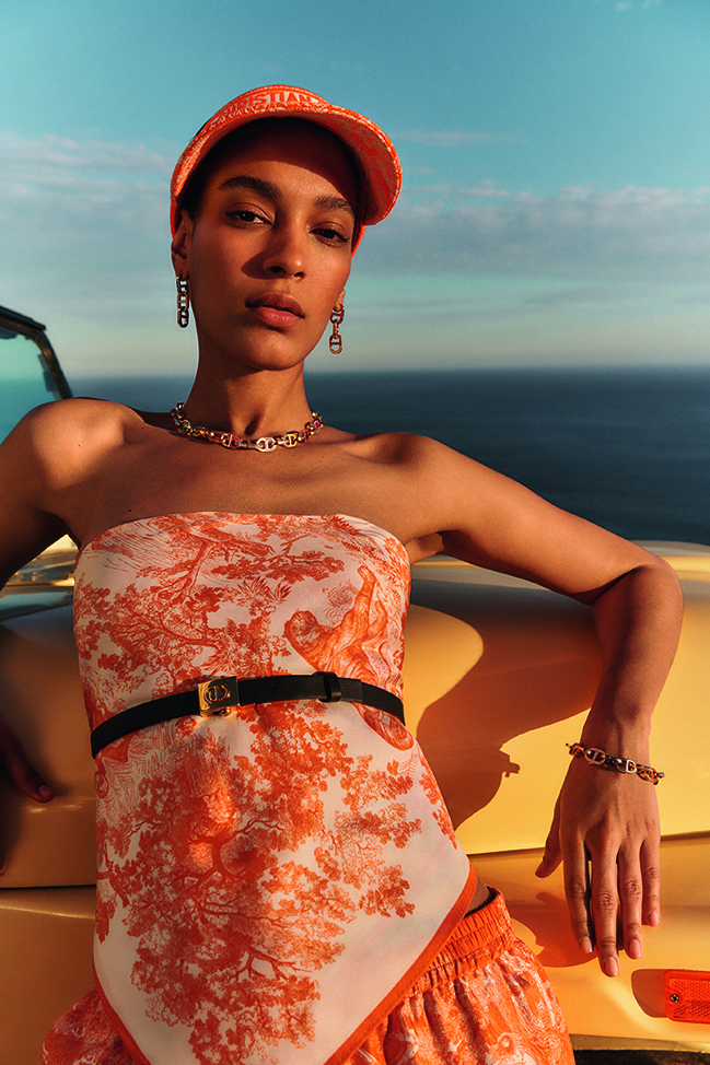 Sans cesse réinventée, la capsule estivale Dioriviera pensée par Maria Grazia Chiuri invite à l’évasion. Jouant avec les codes de la Maison – de la toile de Jouy aux rayures bayadère –, le prêt-à-porter, la maroquinerie et les souliers s’illuminent de nuances fluo – bleu, orange et rose –, inspirées par la ligne Fall 2022. Tout au long de l’été, ces créations solaires sont mises en scène dans une série d’écrins féeriques à travers le monde – de Mykonos à Bodrum, de Capri à Ibiza, de Tokyo à Paraggi. En écho à ces échappées ensoleillées, Dior dévoile – sur les plateformes Instagram, Facebook ou encore Snapchat – un filtre inédit permettant d’essayer deux visières DiorClub ou trois accessoires en soie, mais aussi de scanner les packagings Dioriviera pour voir les animaux du motif iconique s’animer. Une célébration de la dolce vita et de l’art de vivre cher à Dior