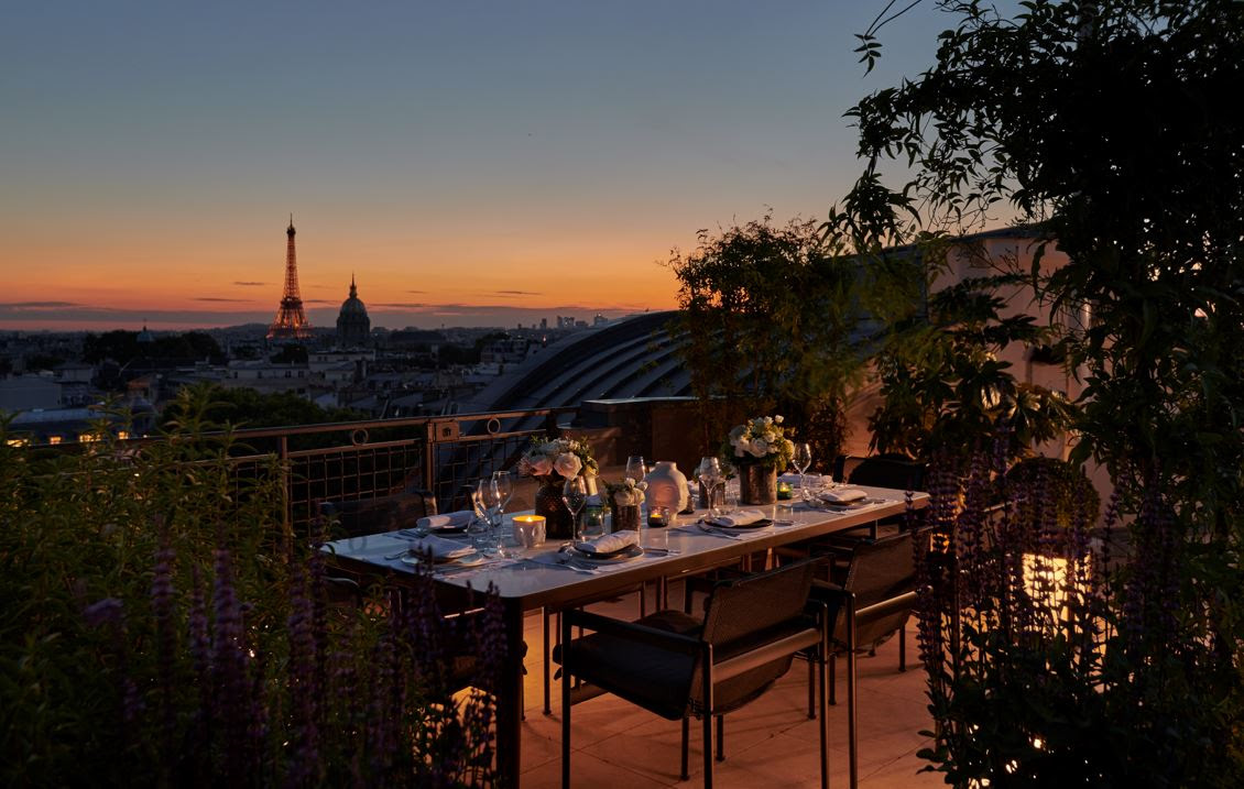Pour un moment entre amis ou en famille, la suite Penthouse Eiffel et sa terrasse de 74 m² surplombent la capitale, ses dômes ciselés et les flèches de ses églises. Cet espace d’exception, idéal pour un dîner de fête comme suspendu dans les nuages, offre une vue imprenable sur le symbole de la France, la tour Eiffel – un lieu magnifique à découvrir à l’occasion du 14 Juillet.