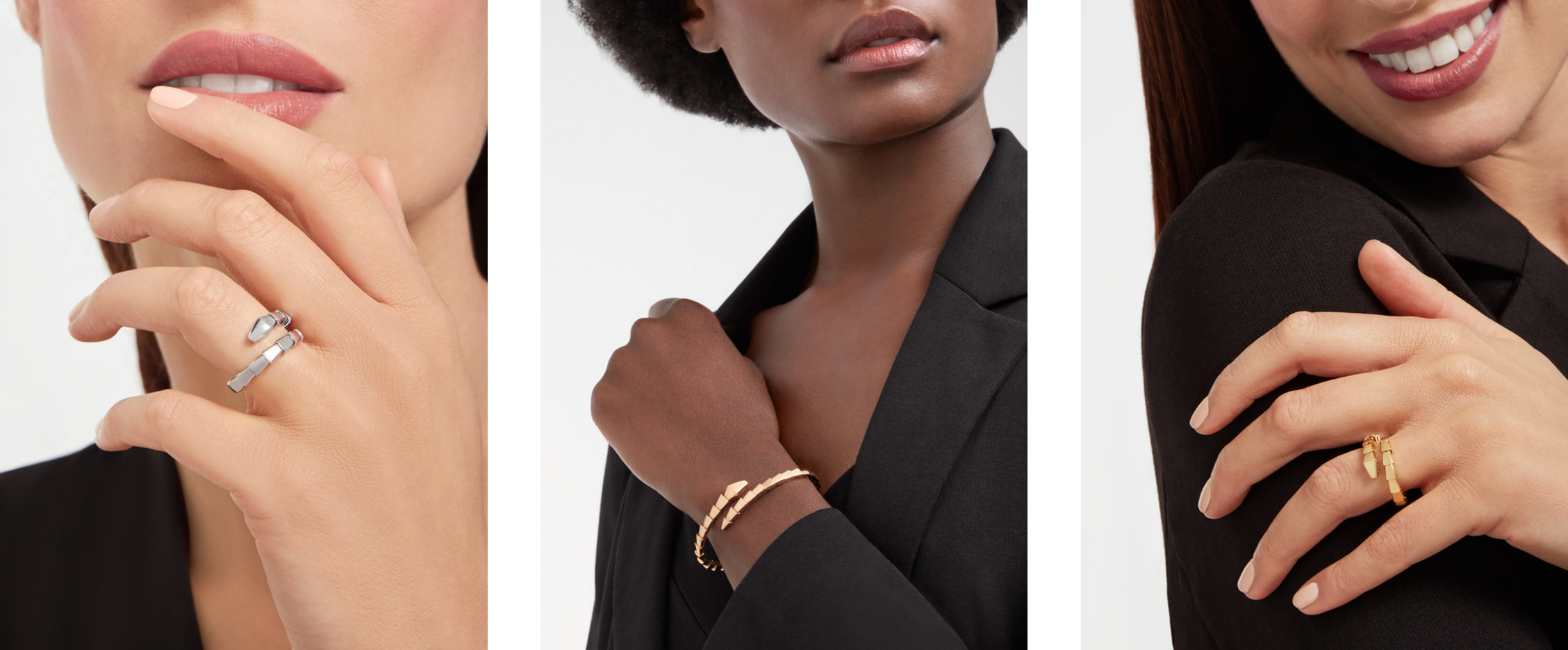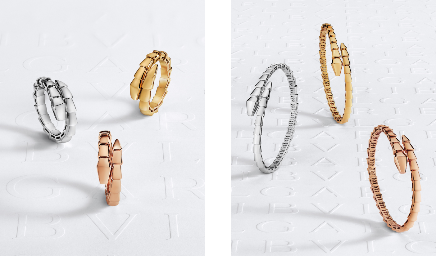 Un motif graphique et iconique, trois ors et trois sertis différents, mais mille et une façons de les composer. Les six nouvelles créations, notamment les versions simples de la bague et du bracelet enveloppant emblématiques de Serpenti Viper, dévoilent une silhouette monochrome hypnotisante en or blanc, rose ou jaune 18 carats. Les géométries avant-gardistes et les courbes sensuelles dégagent une incroyable synergie portée par la créativité des maîtres-artisans de la Maison, qui les montent une à une sur une spirale interne en or : un procédé complexe qui donne naissance à la sinuosité et à la souplesse caractéristiques des bijoux Serpenti. Pour la première fois, ces créations seront accompagnées d’un certificat unique attestant de l’utilisation d’un or éthique. En effet, à compter de janvier 2022, l’intégralité des bijoux Bvlgari seront officiellement réalisés en or issu de sources certifiées 100 % traçables. Un tournant qui réaffirme l’engagement de la Maison en faveur d’un luxe responsable.
