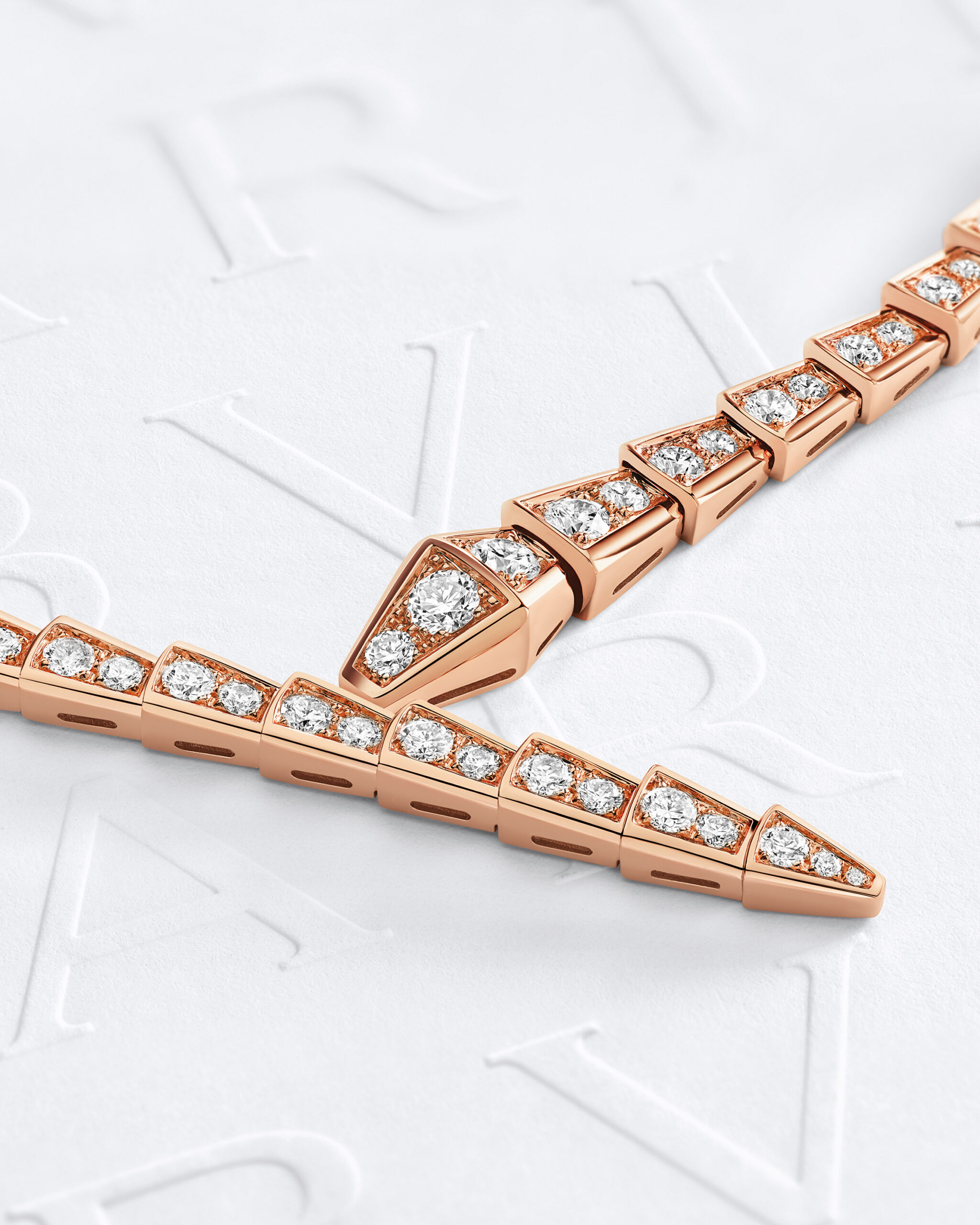 Parce que Serpentise réinvente sans cesse, un collier élégant et scintillant en or rose 18 carats, entièrement serti avec plus de 40 carats de diamants taille brillant, apporte une touche de glamour et d’éclat à la collection. À travers son étreinte sensuelle et captivante, la pièce allie la sobriété esthétique à l’élégance intemporelle de la gemme éternelle. Incarnation séduisante d’une sophistication iconique, elle est idéale en toutes occasions et témoigne de la faculté d’adaptation innée de cette icône indémodable.