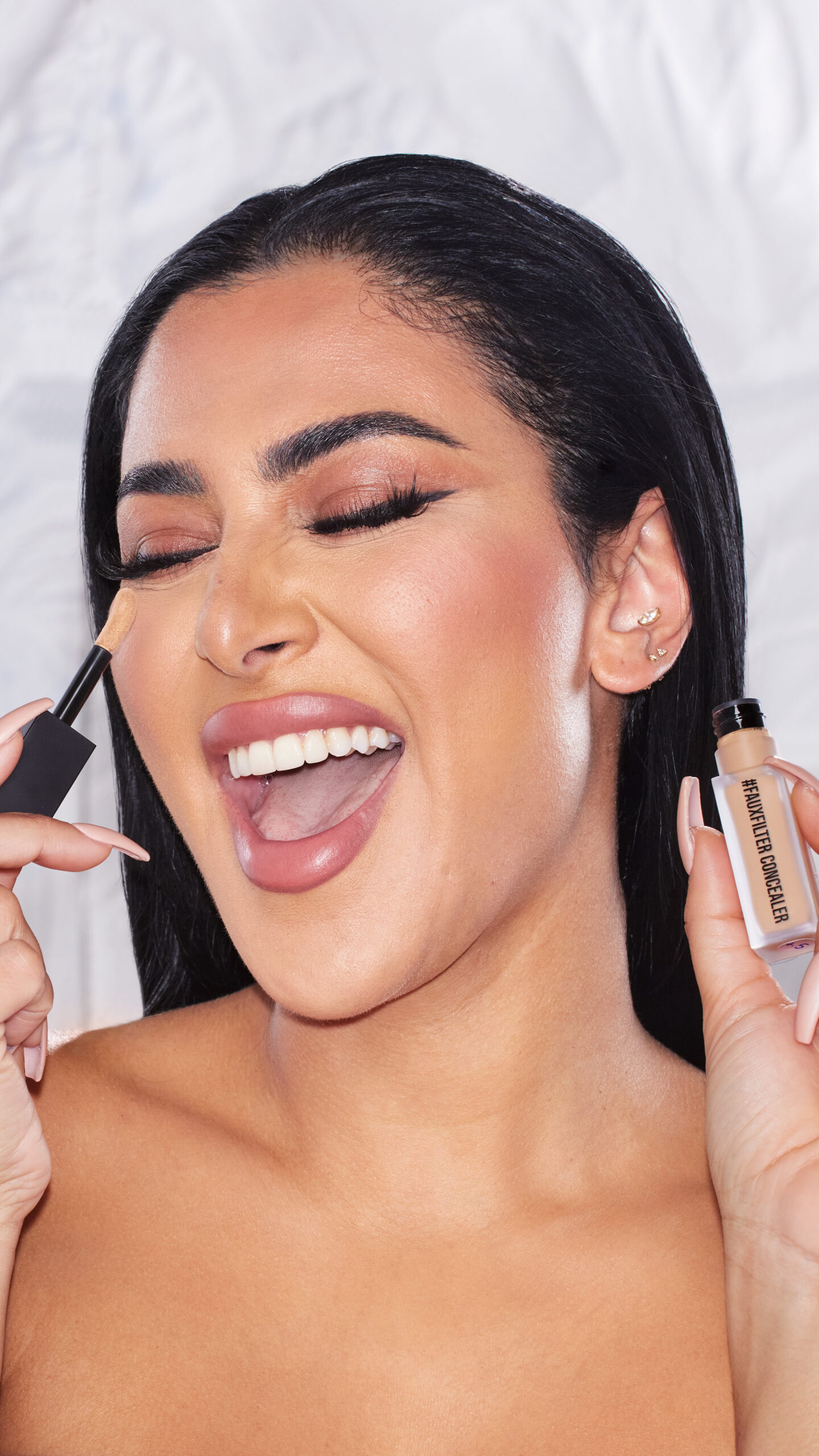 On l’attendait avec impatience ! Après plus de trois ans pour le développer, le correcteur #FAUXFILTER Luminous Matte Liquid Concealer débarque enfin ! La créatrice Huda Kattan avait à cœur de créer une formule crémeuse, qui ne plisse pas et sans reflet, avec une texture souple pour un effet seconde peau. Le correcteur #FAUXFILTER se décline en 29 teintes, réparties en 9