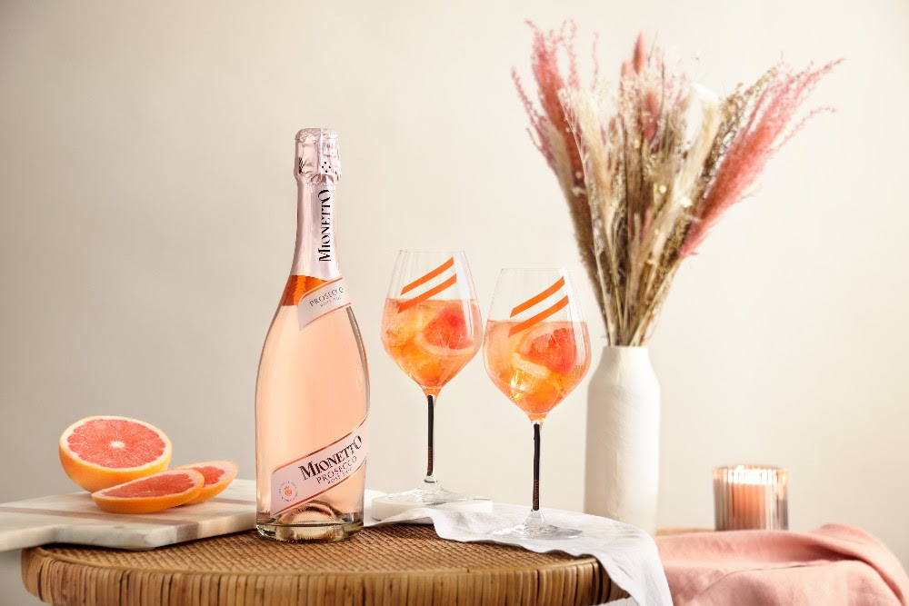 Assemblage de Glera et de Pinot Noir, le Prosecco Mionetto Rosé se consommera aussi bien pur à la coupe qu’en cocktail !