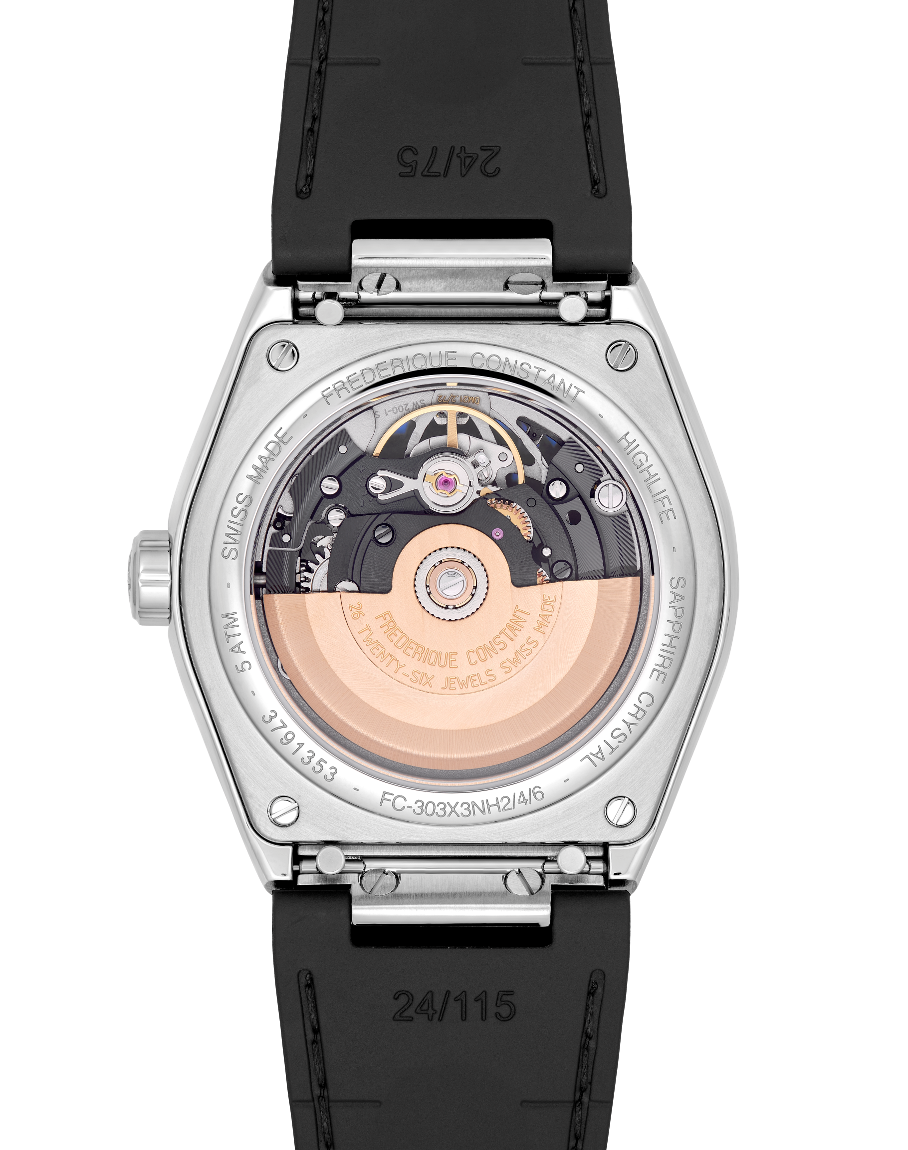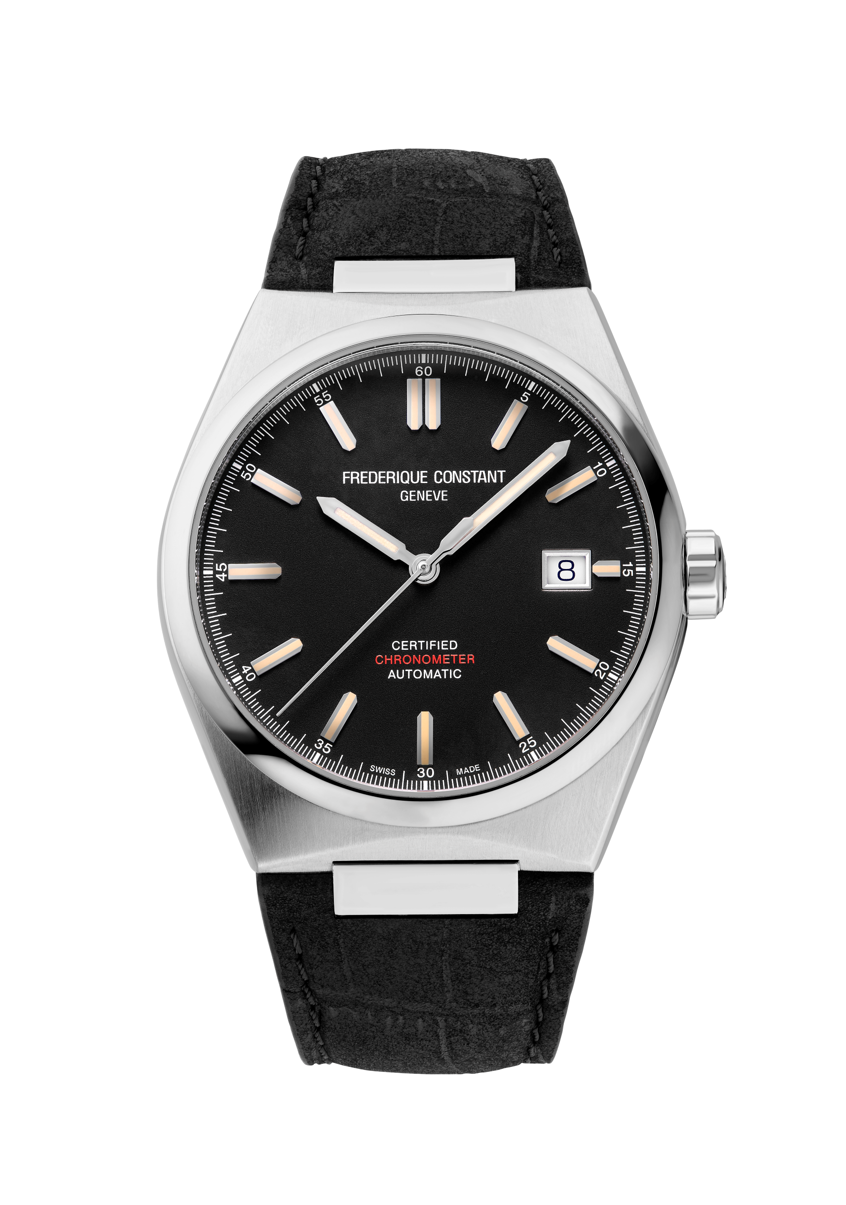 Inscrit dans l’air du temps, ce bracelet intégré est également interchangeable. Grâce à un système de fixation rapide, il se détache par une simple pression pour céder sa place à un bracelet en nubuck noir fourni avec la montre. Quelques secondes suffisent pour changer de style et s’adapter aux circonstances sans dénaturer l’ensemble.