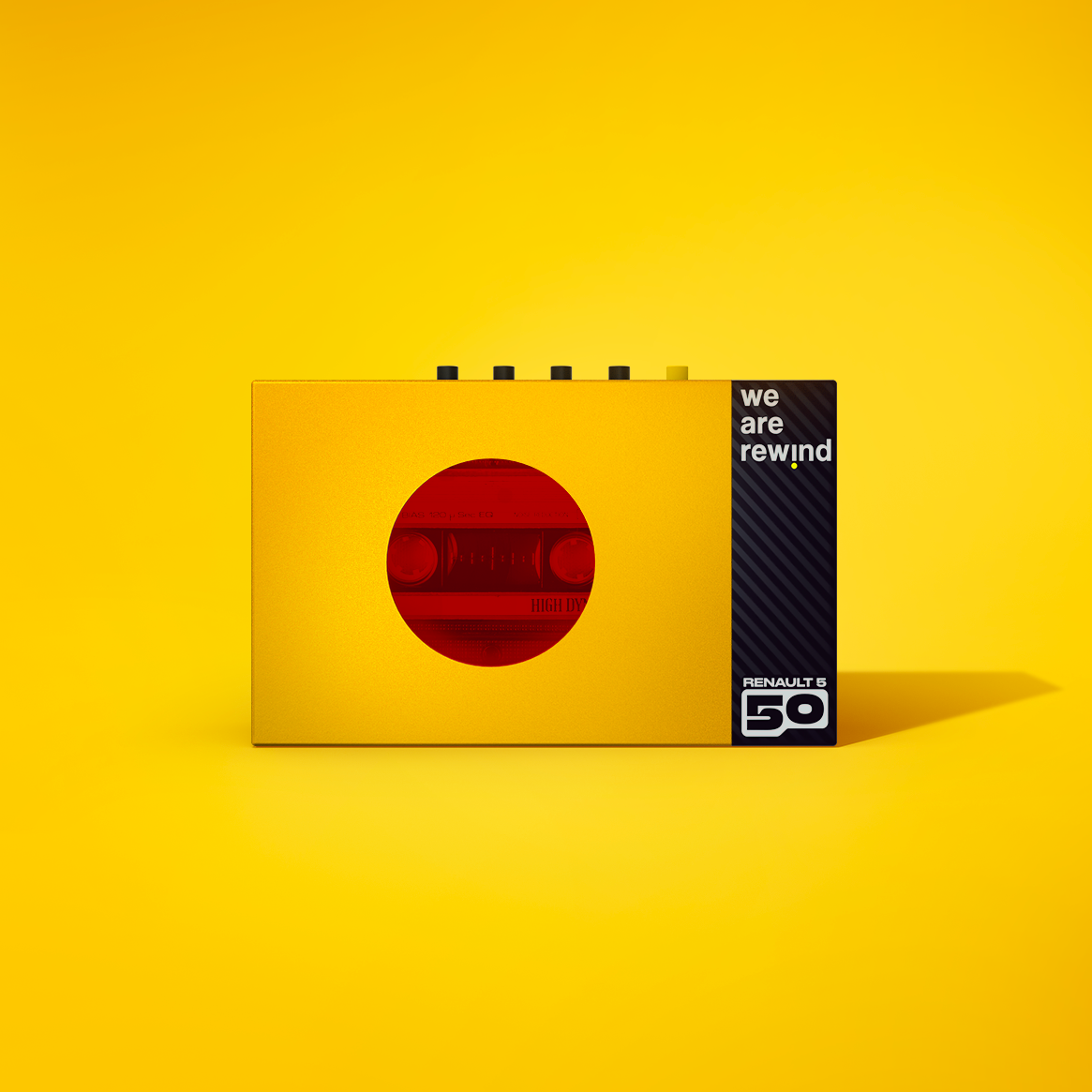 Pour les 50 ans de la Renault 5, une autre icône des années 70 rejoint la partie : PlayeR5, le lecteur cassette portable rétrofité. Avec son nouveau design inspiré de Renault 5 Prototype, PlayeR5 arbore une carrosserie métallique jaune, avec un côté rayé rappelant les pare-chocs et une vitre teintée rouge faisant penser aux feux arrières. Le baladeur est équipé du Bluetooth pour l’écoute sans fil, d’un micro intégré. Fourni avec une cassette vierge et un crayon de papier pour rembobiner en cas de