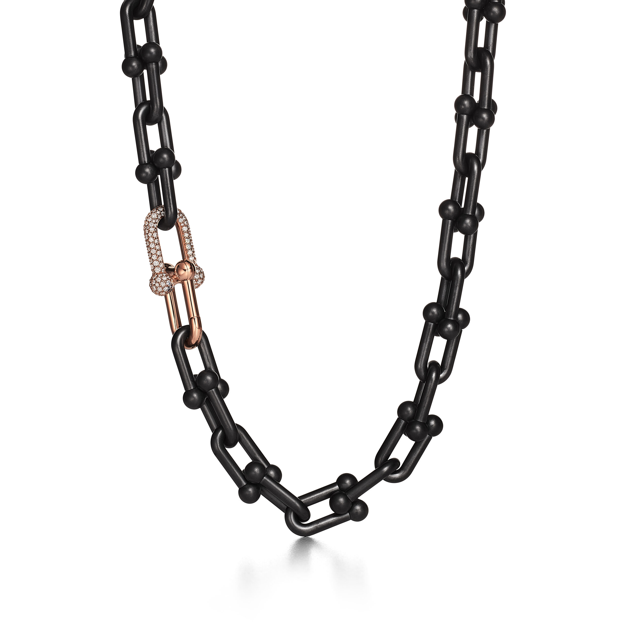 Tiffany & Co. dévoile aujourd’hui un nouveau collier et bracelet en titane noir, or rose et diamants de sa collection iconique Tiffany City HardWear.