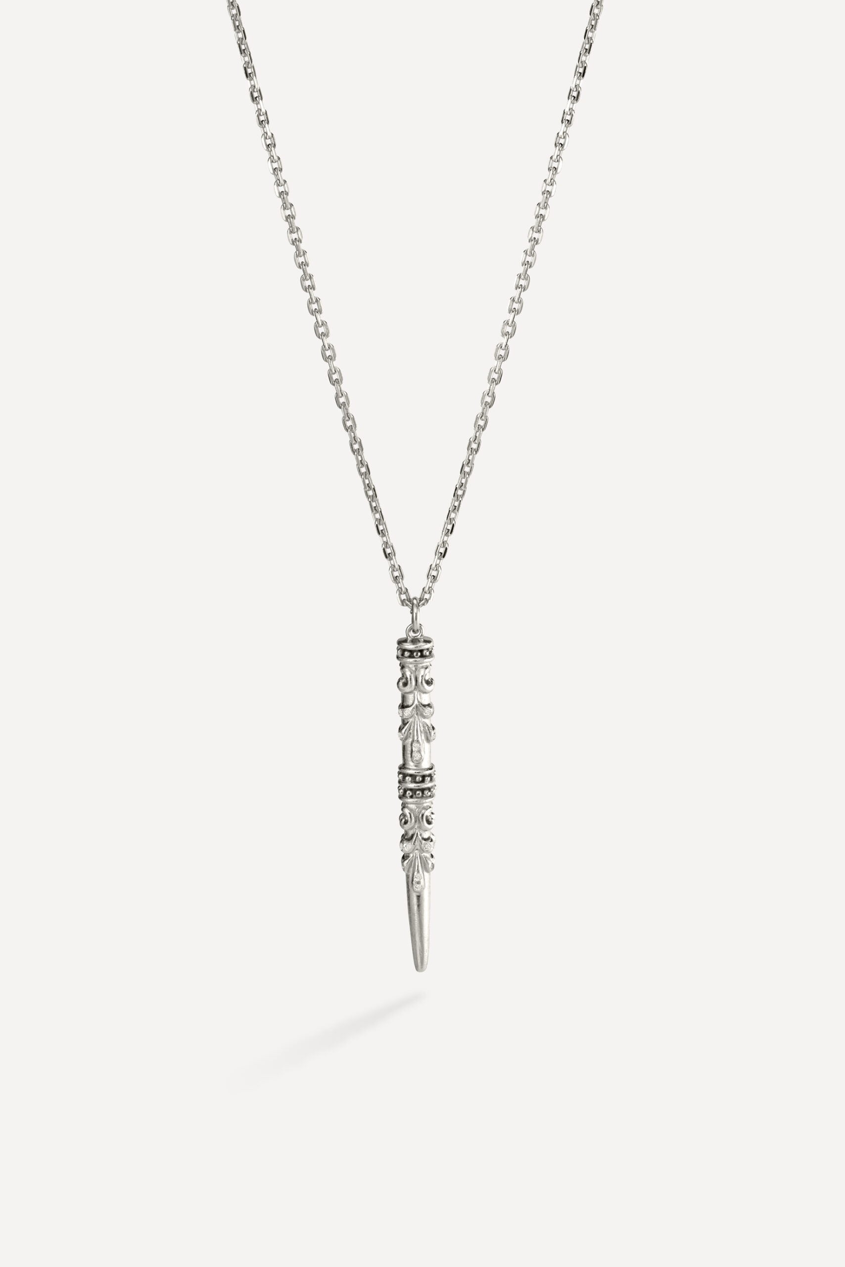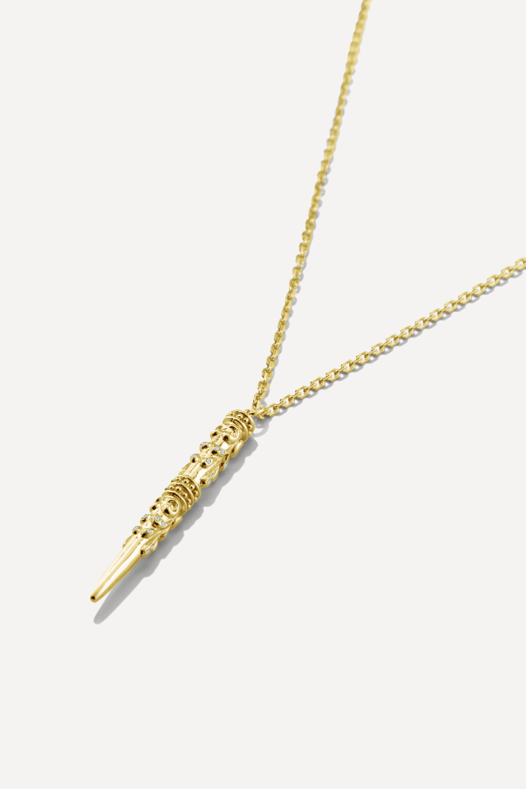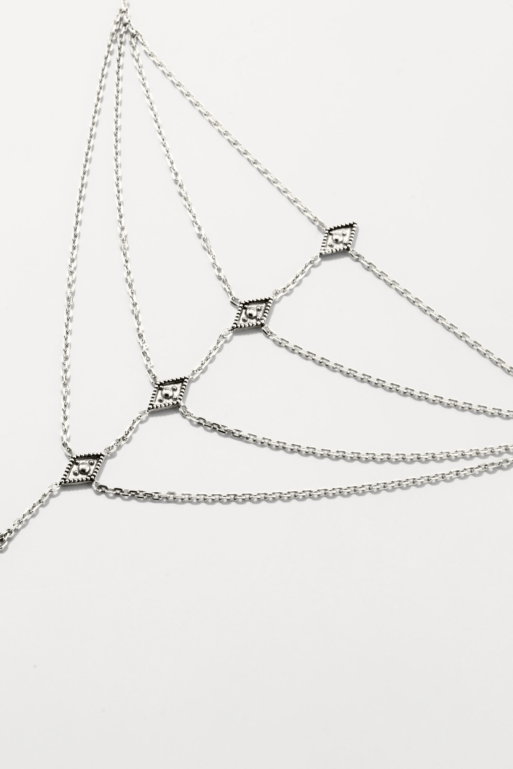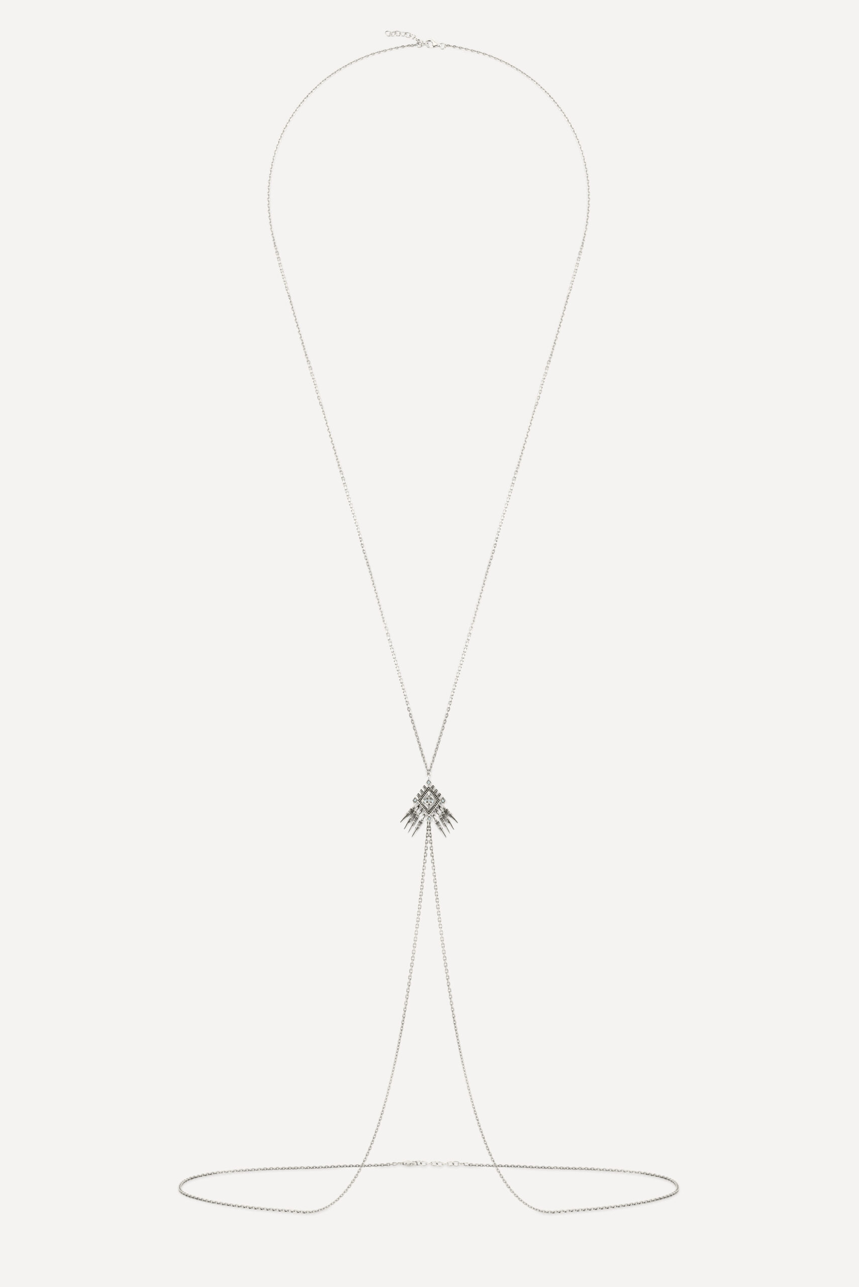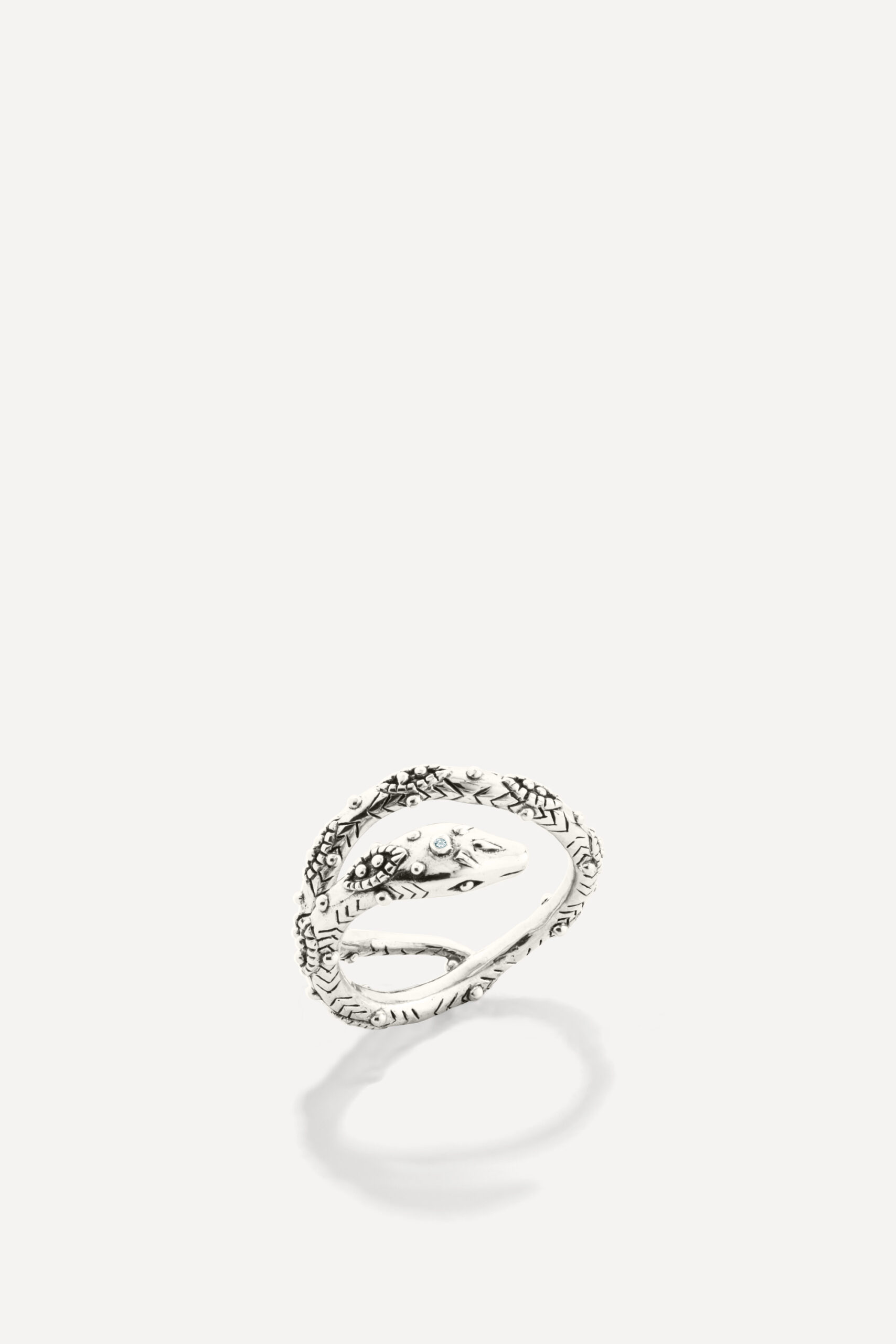 Le périple commence avec la monoboucle Amazonie et la bague Snake, deux pièces qui revisitent le serpent, et pour cause : cet animal symbolique occupe une place à part dans de nombreuses cultures traditionnelles, mais aussi dans l’iconographie du rock. D’autres pièces s’inscrivent à mi-chemin entre ambiance tribale et irrévérence punk, comme la boucle Jiji, une pointe travaillée avec des inclusions de zirconiums, ou le sautoir Savan, qui associe une pique gravée à une chaîne rock à maillons XL.