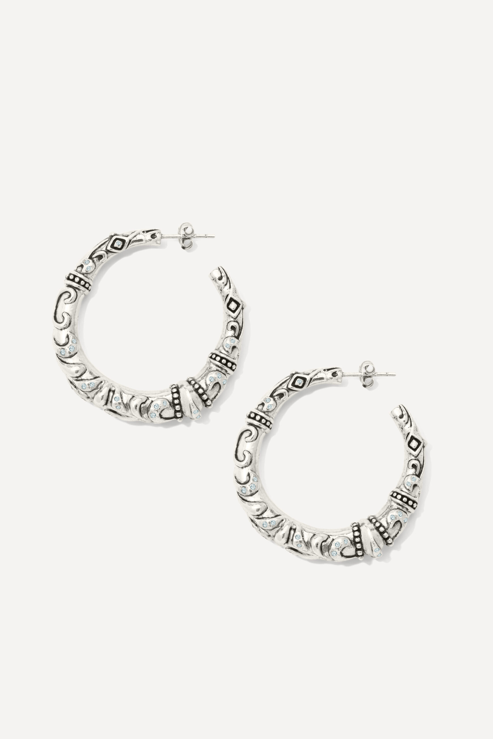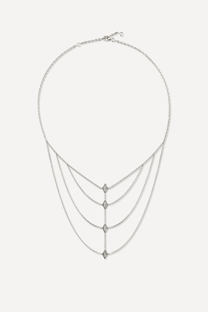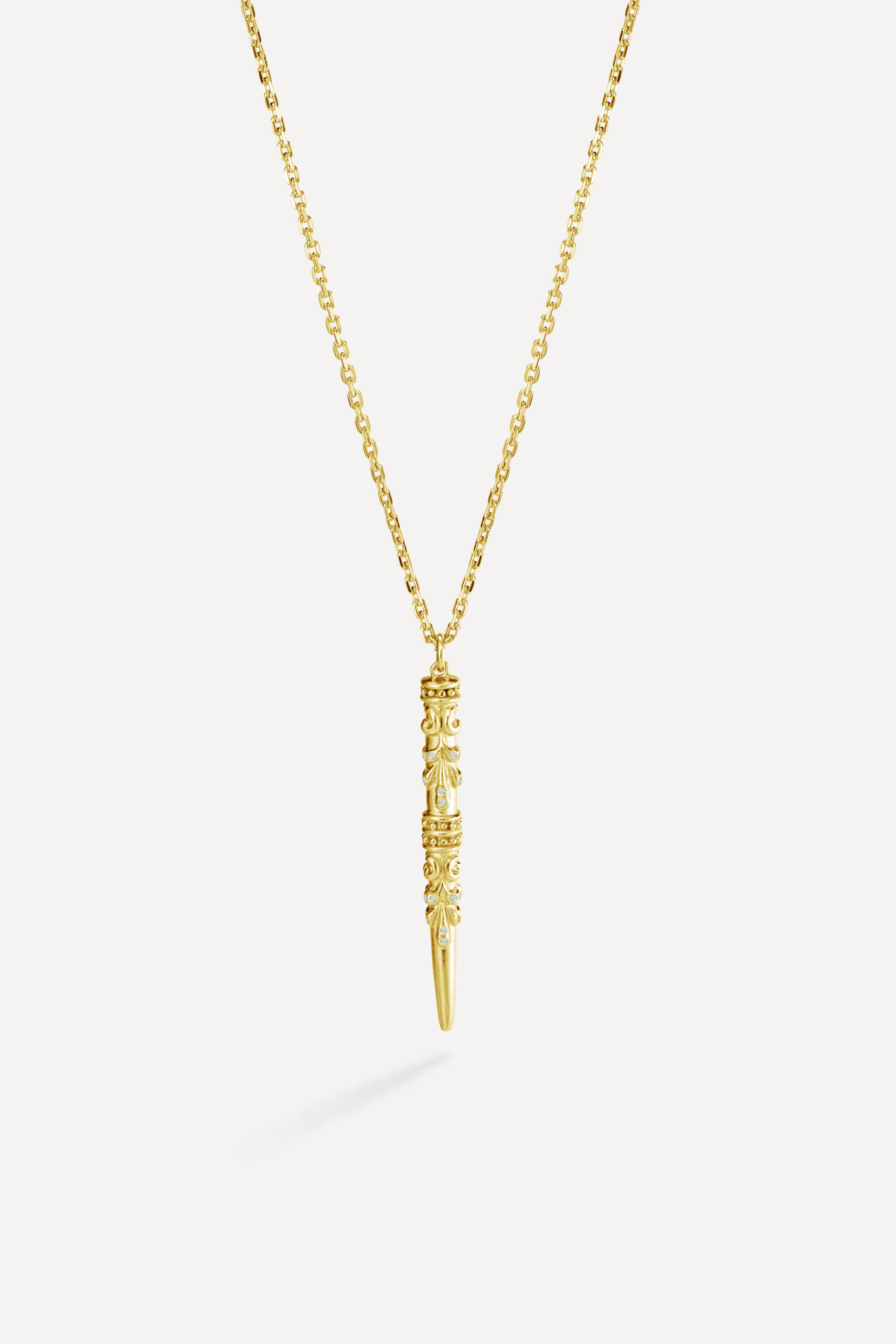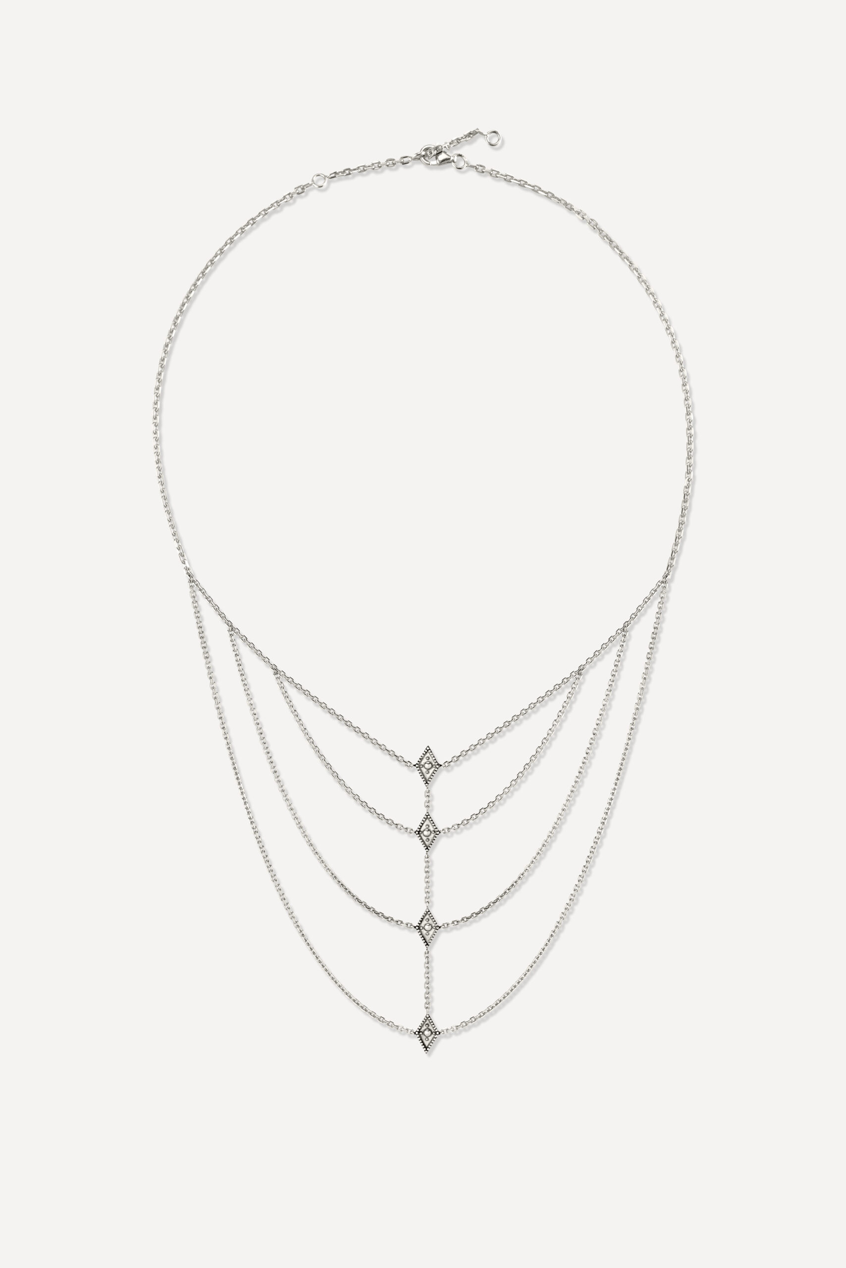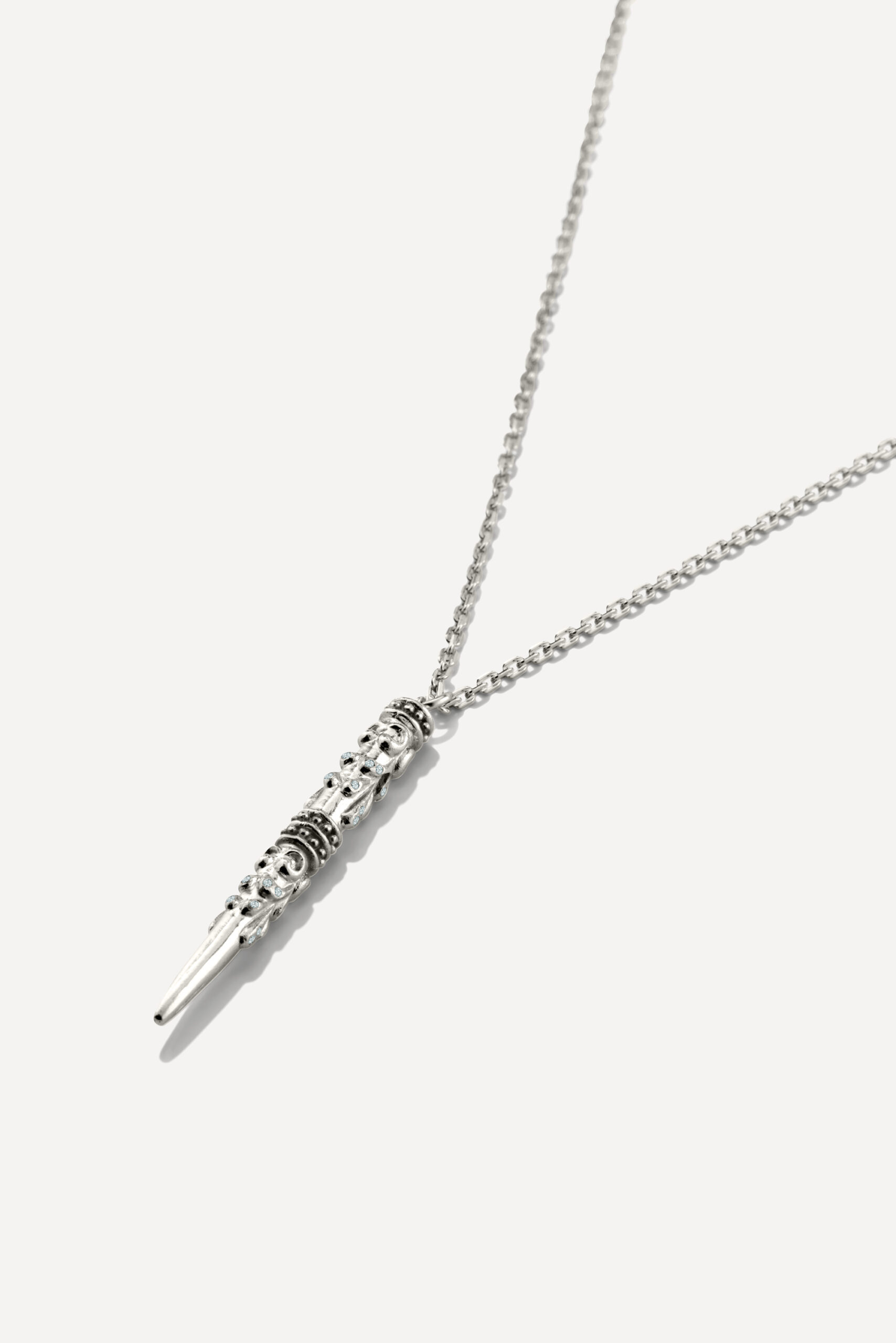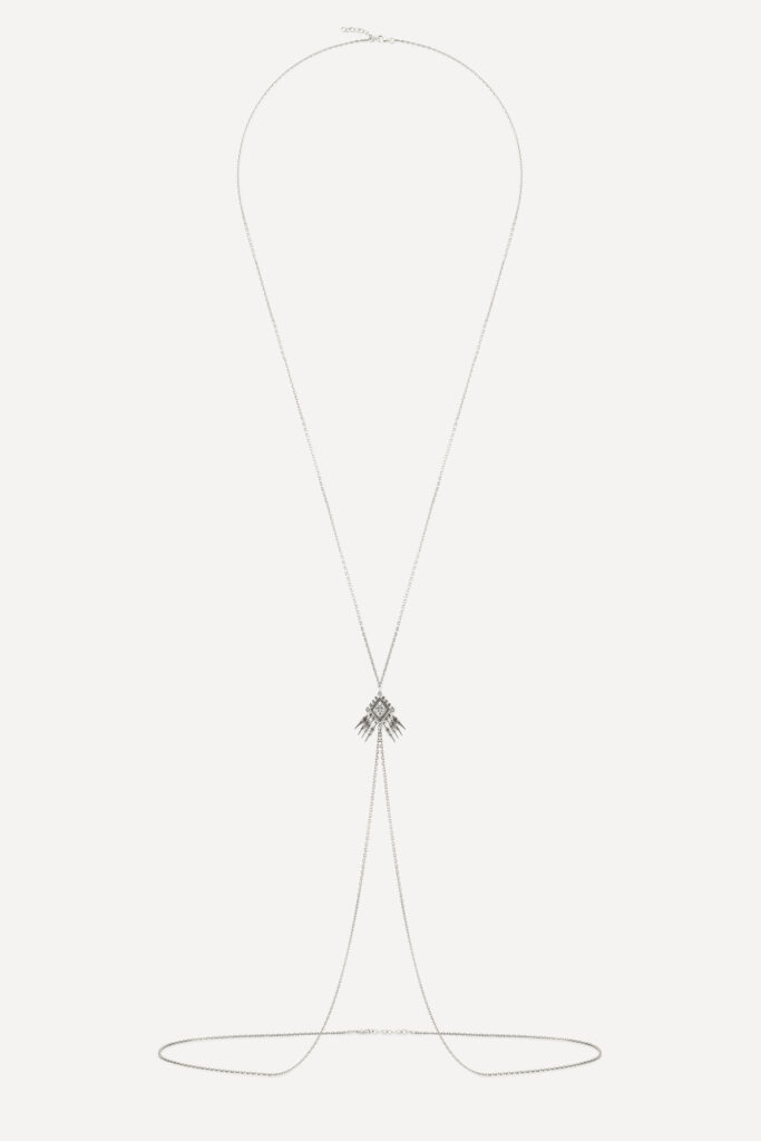 Le périple commence avec la monoboucle Amazonie et la bague Snake, deux pièces qui revisitent le serpent, et pour cause : cet animal symbolique occupe une place à part dans de nombreuses cultures traditionnelles, mais aussi dans l’iconographie du rock. D’autres pièces s’inscrivent à mi-chemin entre ambiance tribale et irrévérence punk, comme la boucle Jiji, une pointe travaillée avec des inclusions de zirconiums, ou le sautoir Savan, qui associe une pique gravée à une chaîne rock à maillons XL.