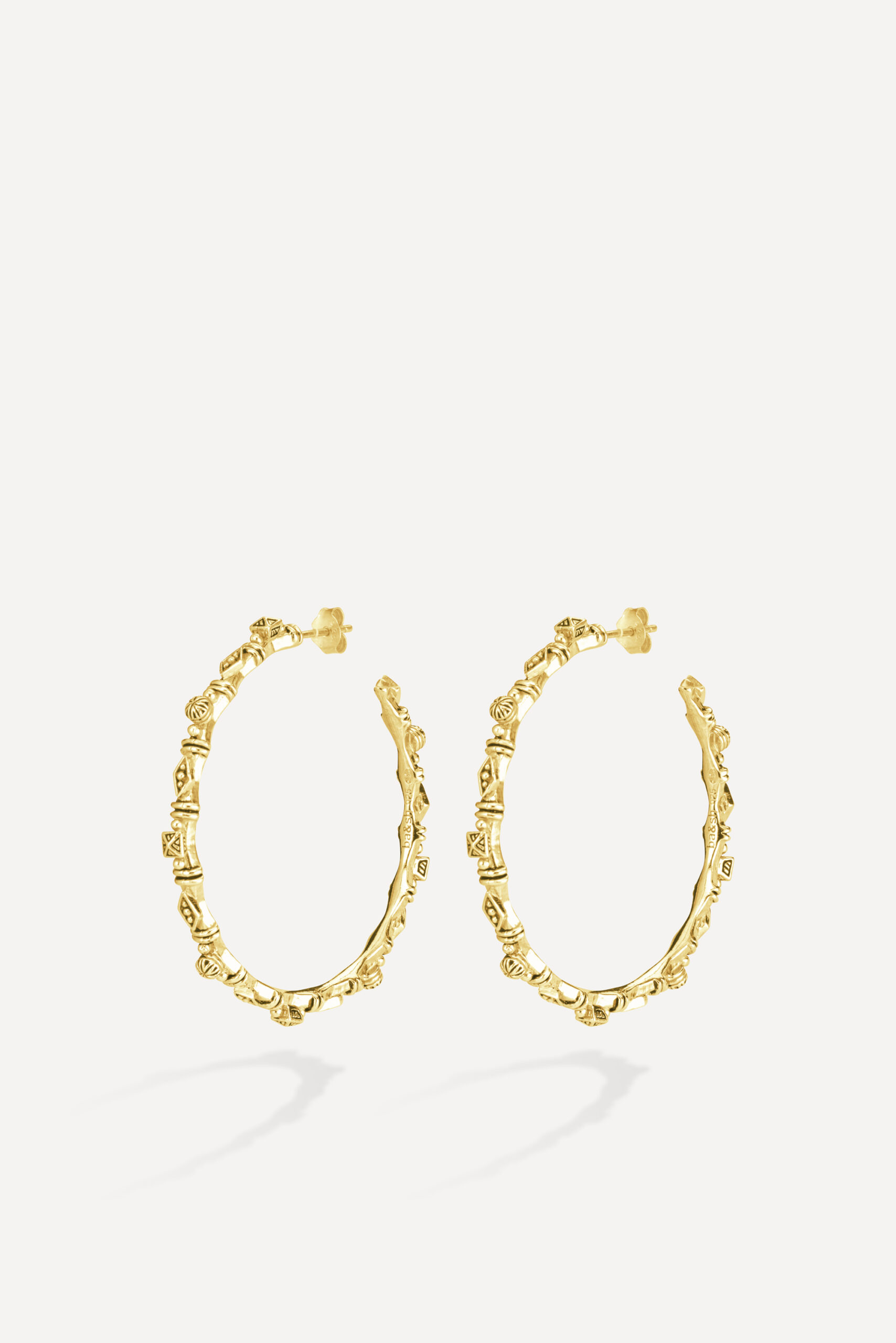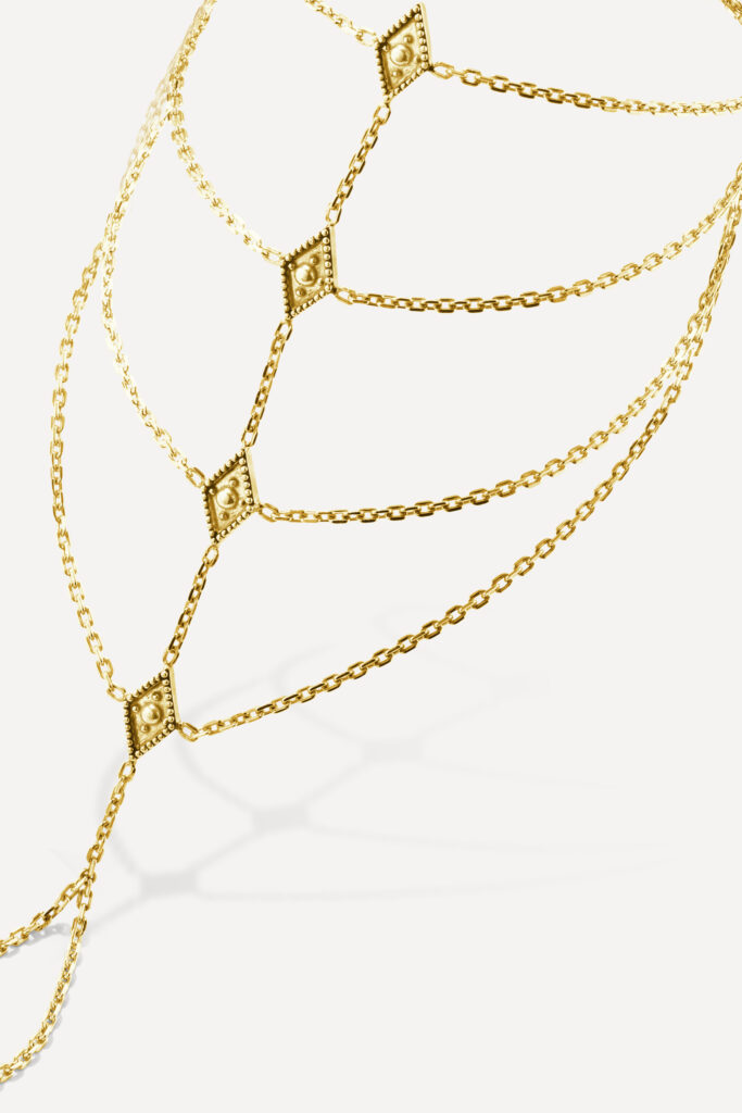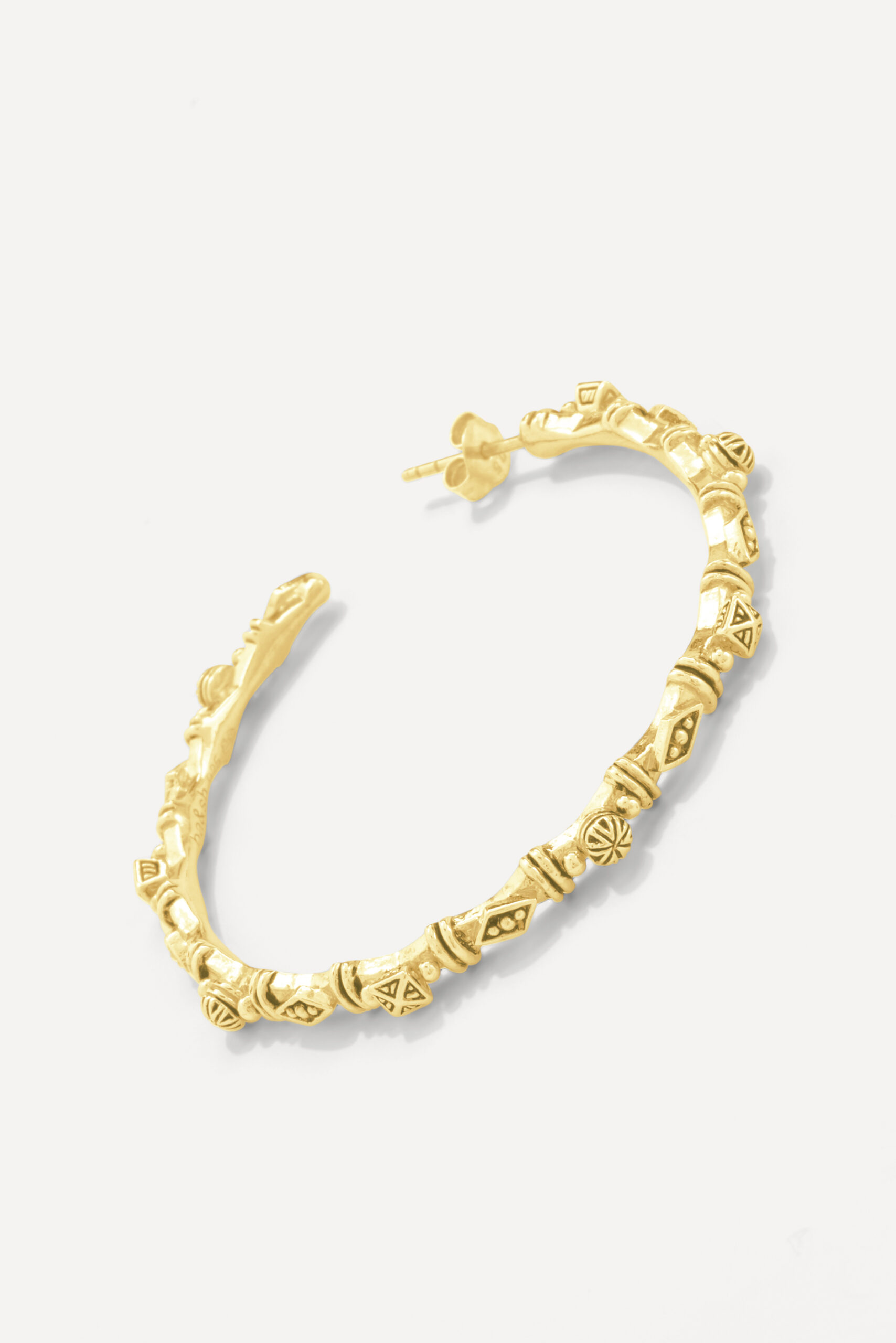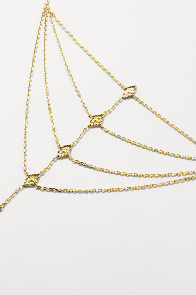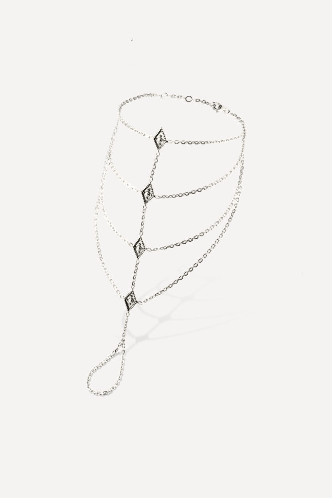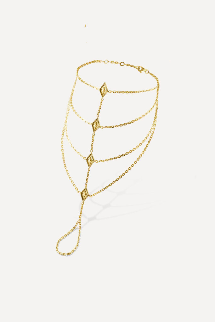 Le losange, emblème de ba&sh depuis toujours, est partout : sur le bracelet de main Lada et le collier multi-rang Gypset, aux accents orientaux, ou encore sur les Records Earrings, des créoles entièrement sculptées qu’on croirait ramenées de l’autre bout du monde.