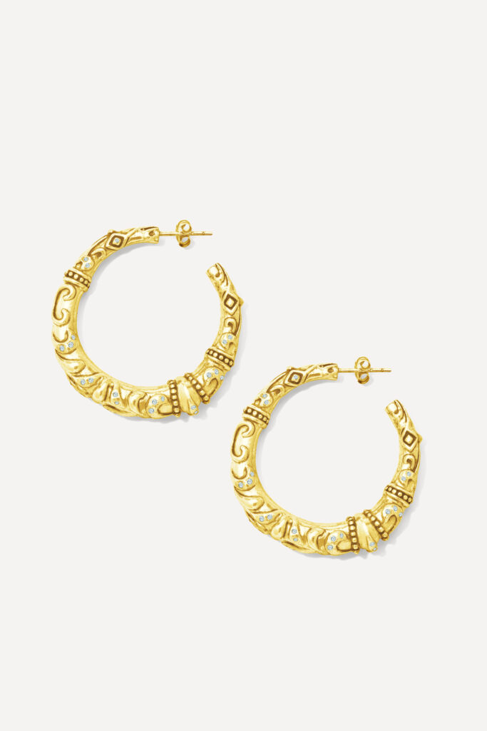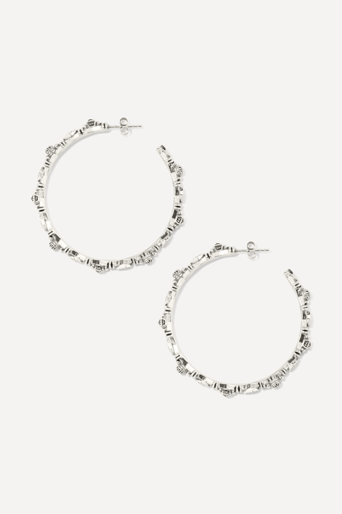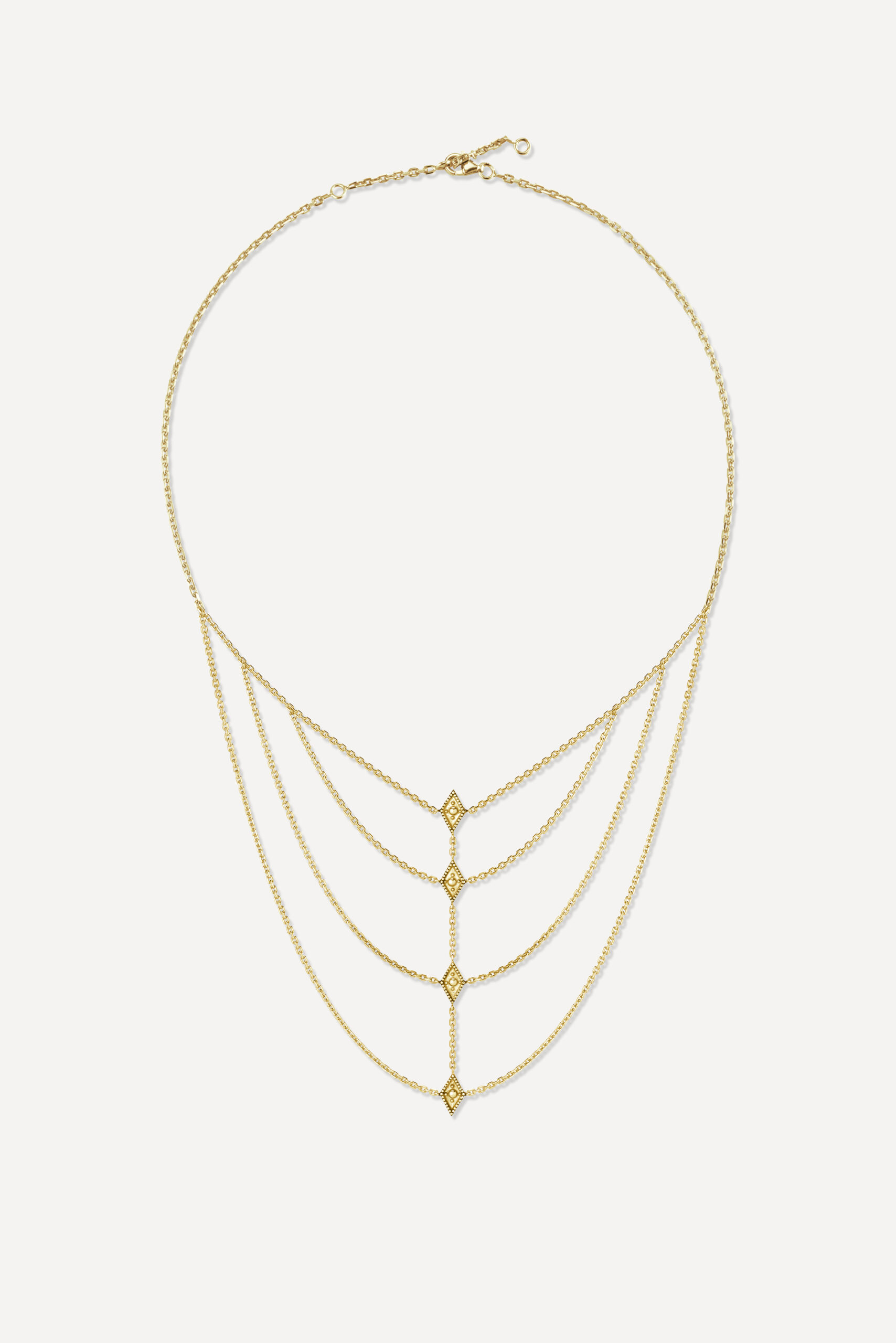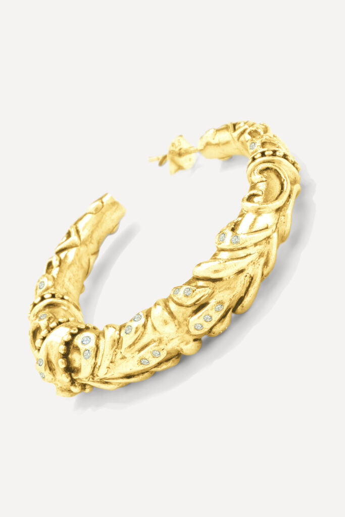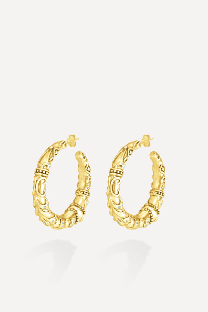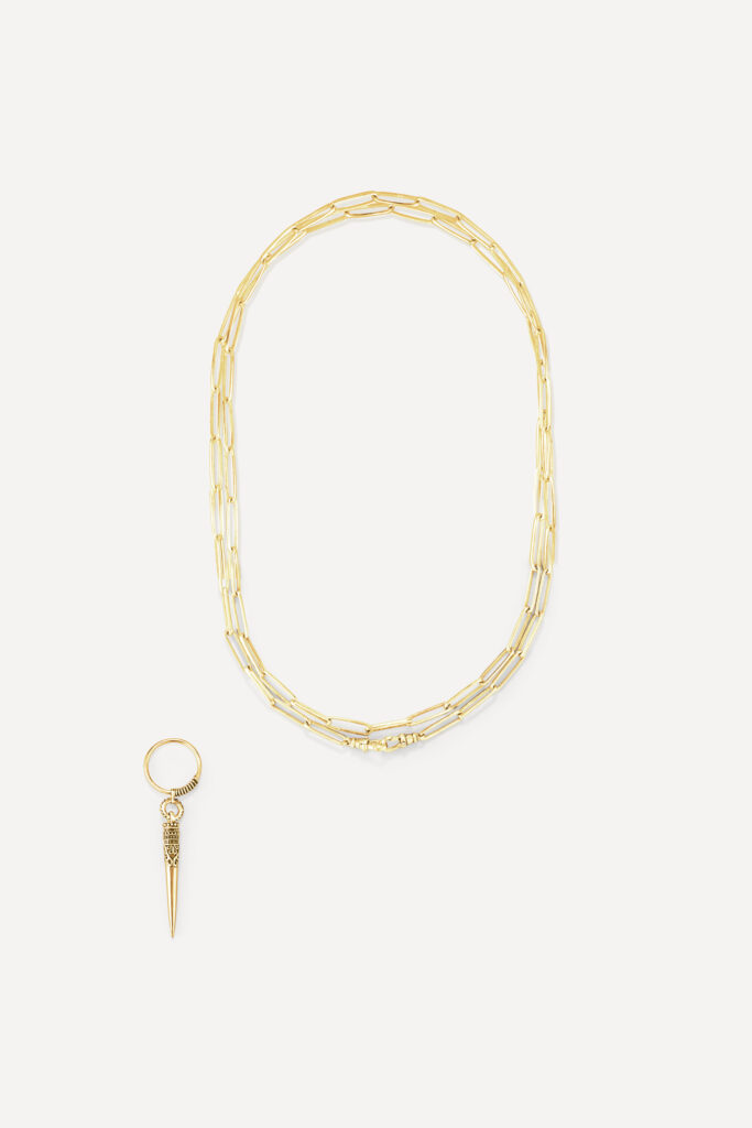 Le losange, emblème de ba&sh depuis toujours, est partout : sur le bracelet de main Lada et le collier multi-rang Gypset, aux accents orientaux, ou encore sur les Records Earrings, des créoles entièrement sculptées qu’on croirait ramenées de l’autre bout du monde.