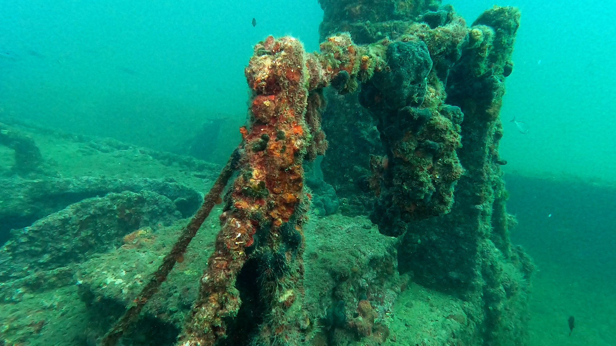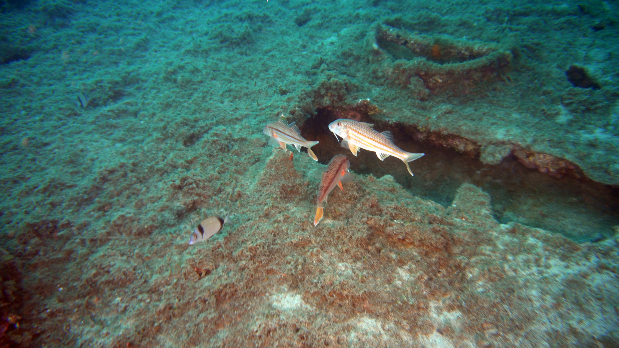 Située à 45 minutes du port de Kalkan, l’île Heybeli offre aux plongeurs une expérience distinctive avec sa zone rocheuse. Dans la partie sud de Heybeli, qui se compose de deux petites îles avec une profondeur maximale de 24 mètres, les plongeurs peuvent voir des bancs de dentex (Dentex dentex) et, dans la zone est, de grands mérous (Epinephelus aeneus) se cachant parmi les roseaux et les rochers.