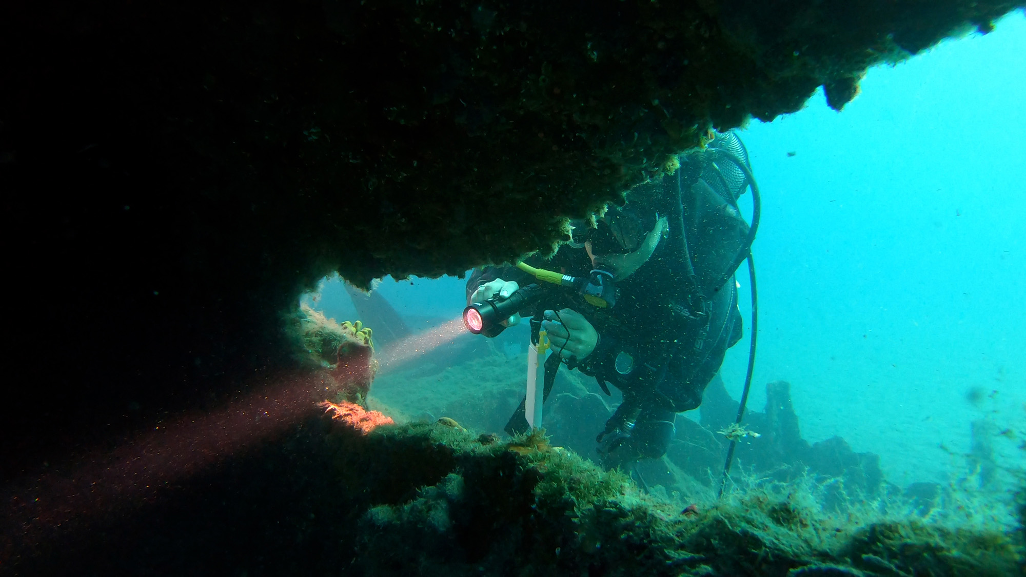 Dans la grotte du Pirate (Korsan), les plongeurs, débutants ou expérimentés peuvent observer une épave à une profondeur de 25 mètres. Comme Korsan, la grotte des amoureux (Âşıklar), est un endroit adapté aux plongeurs de tous niveaux et possède une ancienne ancre de bateau.