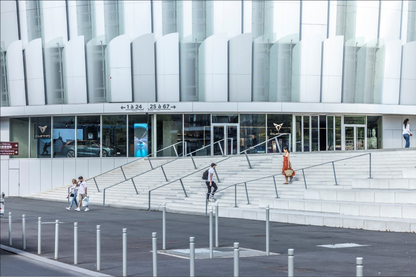 Le CUPRA Garage in the City est idéalement situé dans le quartier d’affaires de la Défense. Cette situation géographique lui permet de profiter du passage des centaines de milliers de salariés qui y travaillent tous les jours. Des horaires d’ouverture aménagés ont d’ailleurs été mis en place pour faciliter l’accès au showroom au plus grand nombre de salariés pendant leur