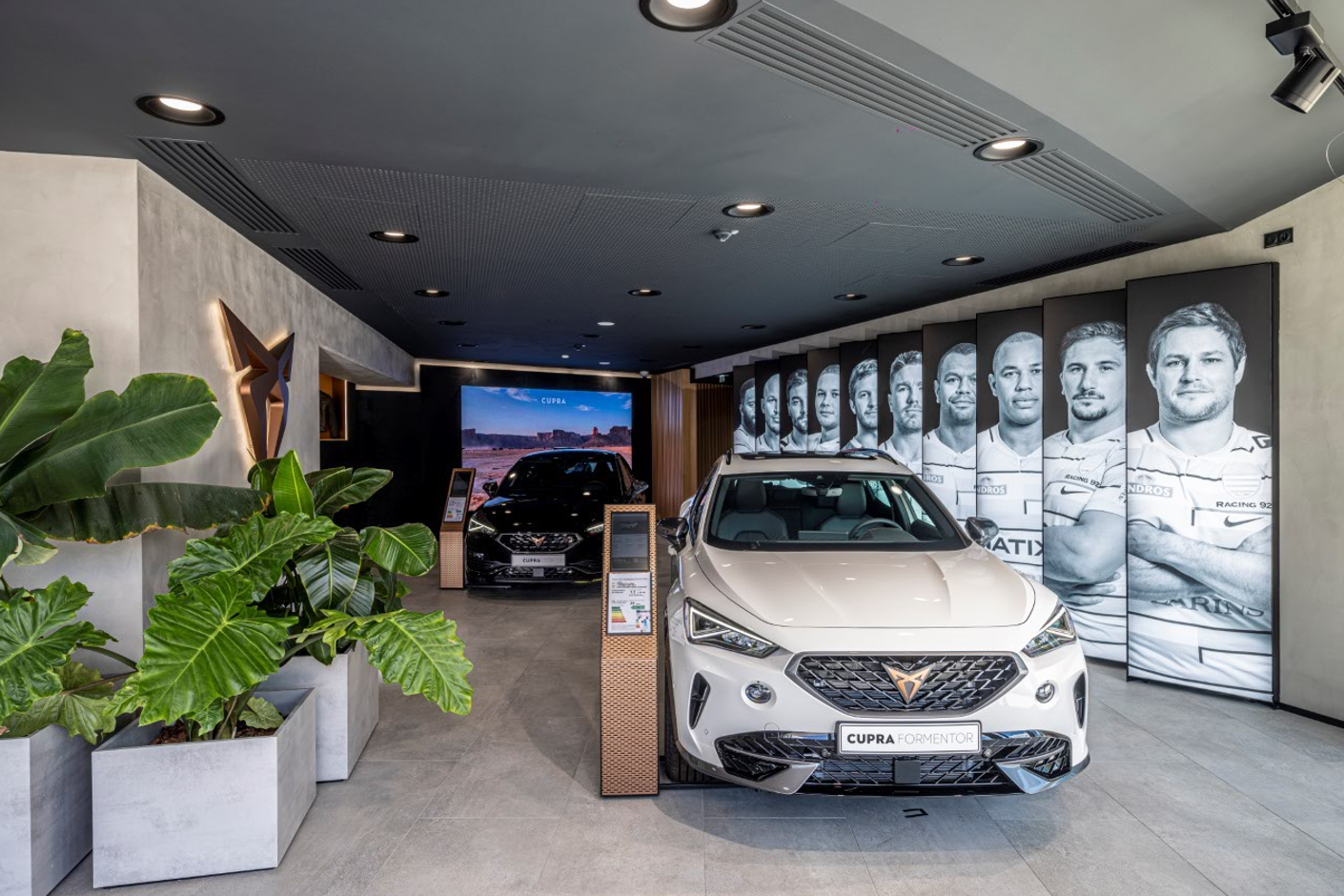 La concession CUPRA LS Group est partenaire de l’équipe de rugby résidente de Paris La Défense Arena, le RACING 92. Ainsi, un mur entier du showroom met en avant les joueurs de rugby qui composent l’équipe. La célèbre équipe Altoséquanaise qui prône l’audace, l’élégance et l’excellence entretient des relations privilégiés avec CUPRA car une flotte de 53 voitures a été mise à disposition des joueurs le 6 septembre dernier. Cette flotte est constituée de modèles suivants : CUPRA Formentor e-HYBRID, CUPRA Leon 5 portes et Sportstourer e-HYBRID, CUPRA Ateca et depuis peu CUPRA Born 100% électrique.