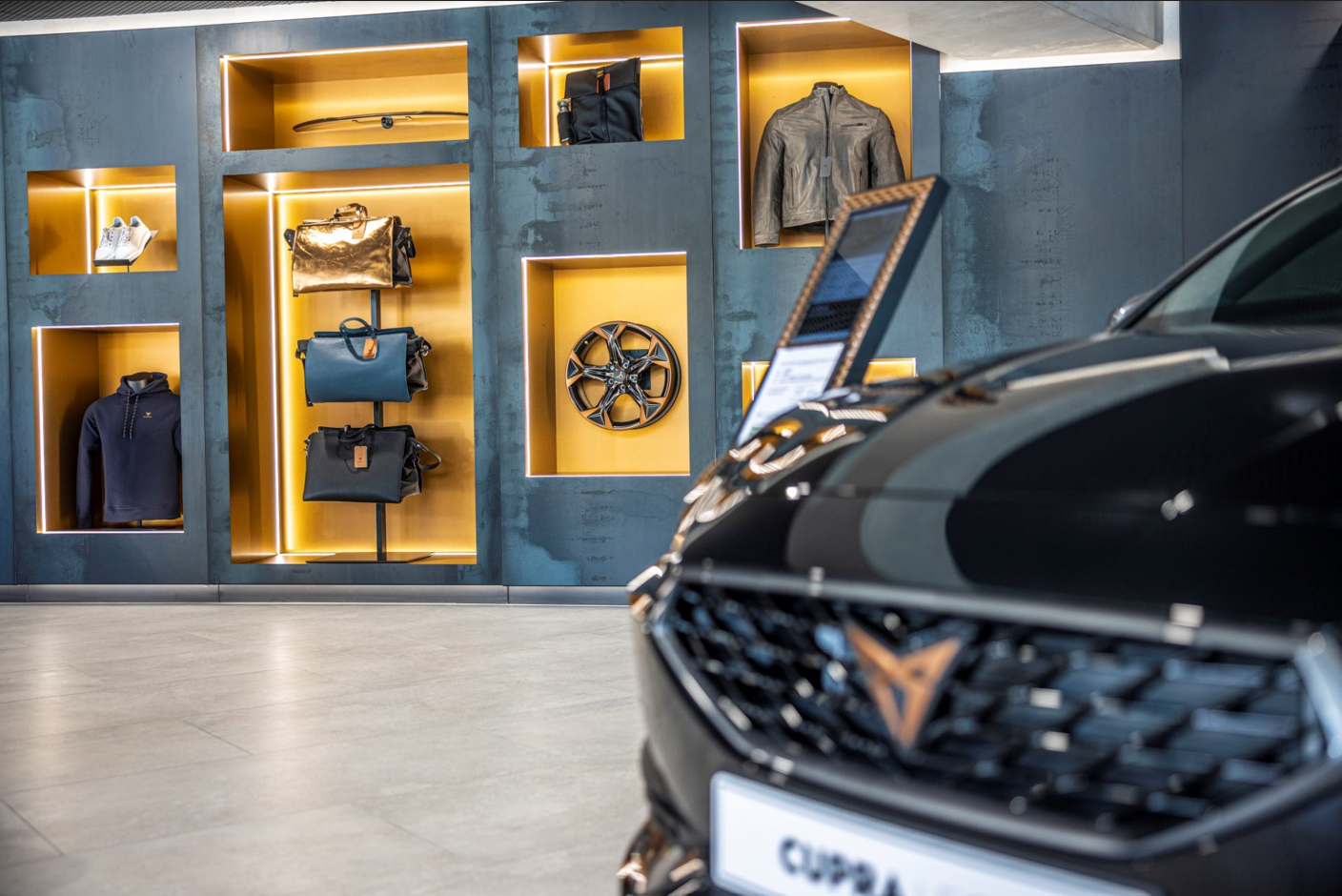 Le CUPRA Garage in the City est un centre de découverte de la marque dans lequel sont exposées les dernières nouveautés produits et la gamme lifestyle CUPRA comprenant les produits développés en collaboration avec les marques artisanales. L’espace peut accueillir jusqu’à quatre voitures et il est équipé de derniers outils numériques permettant aux visiteurs de configurer leur futur véhicule avec l’accompagnement d’un Product Genius dédié et d’un CUPRA Master. Ceux-ci proposeront le projet le plus adapté aux attentes d’un nouveau client, qu’il soit particulier ou responsable entreprise.