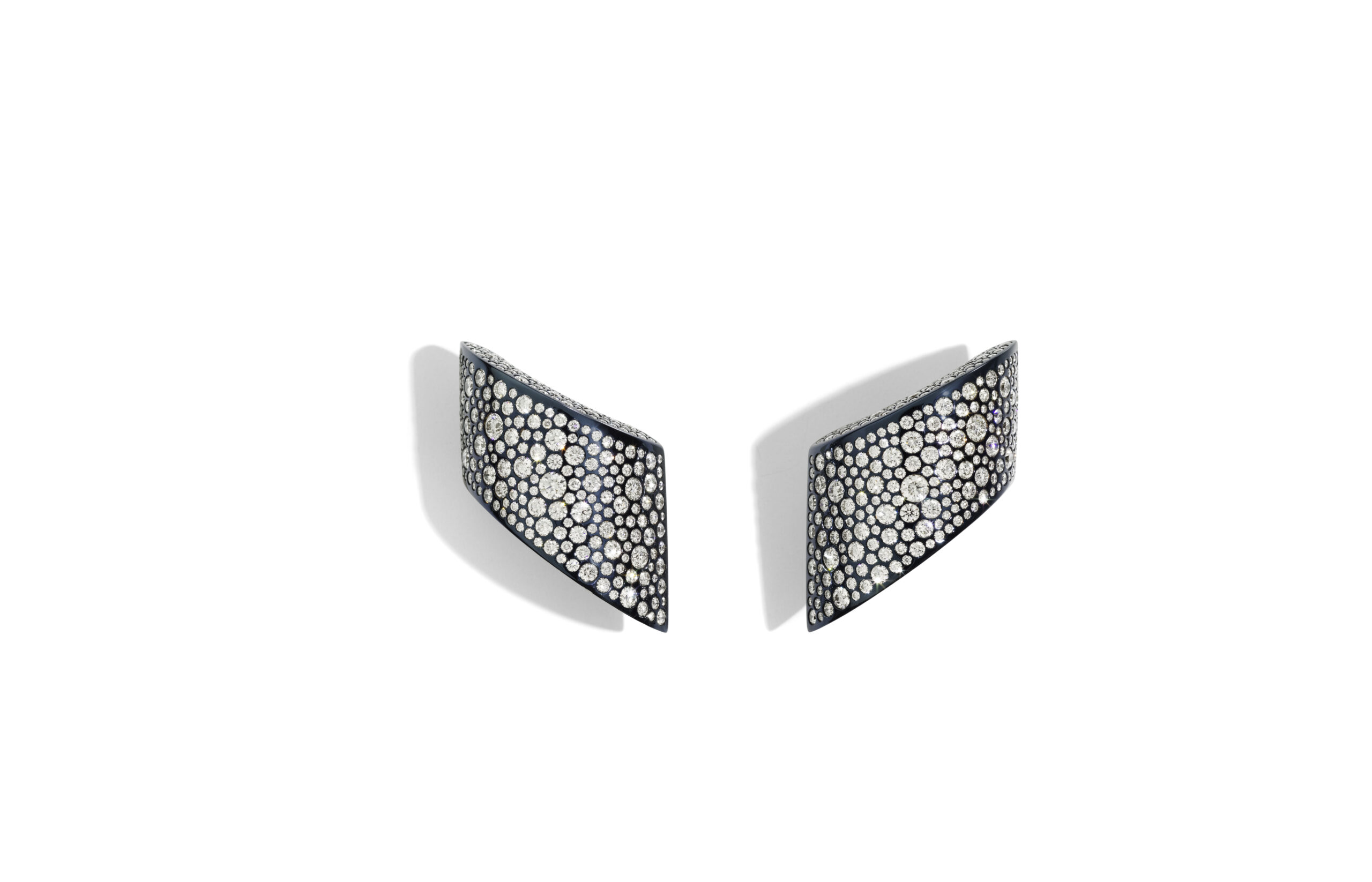 Bijoux Vhernier en or blanc pavés de diamants blancs avec le procédé « eyeliner pavé », prix sur demande.