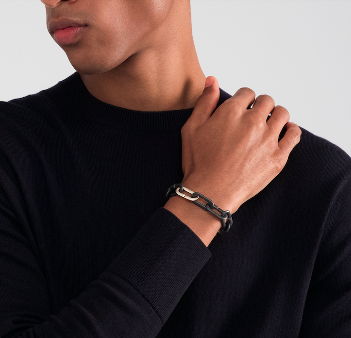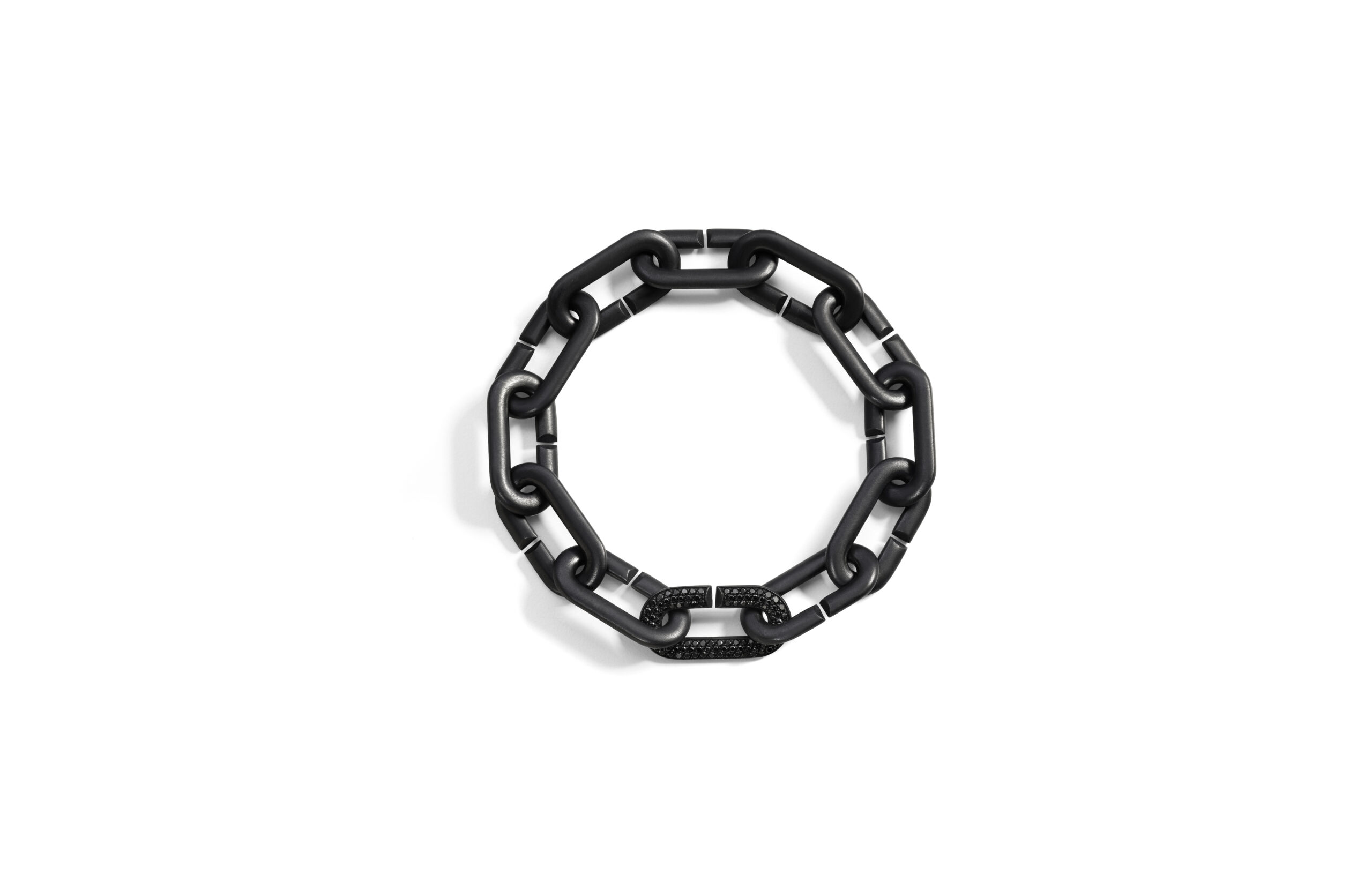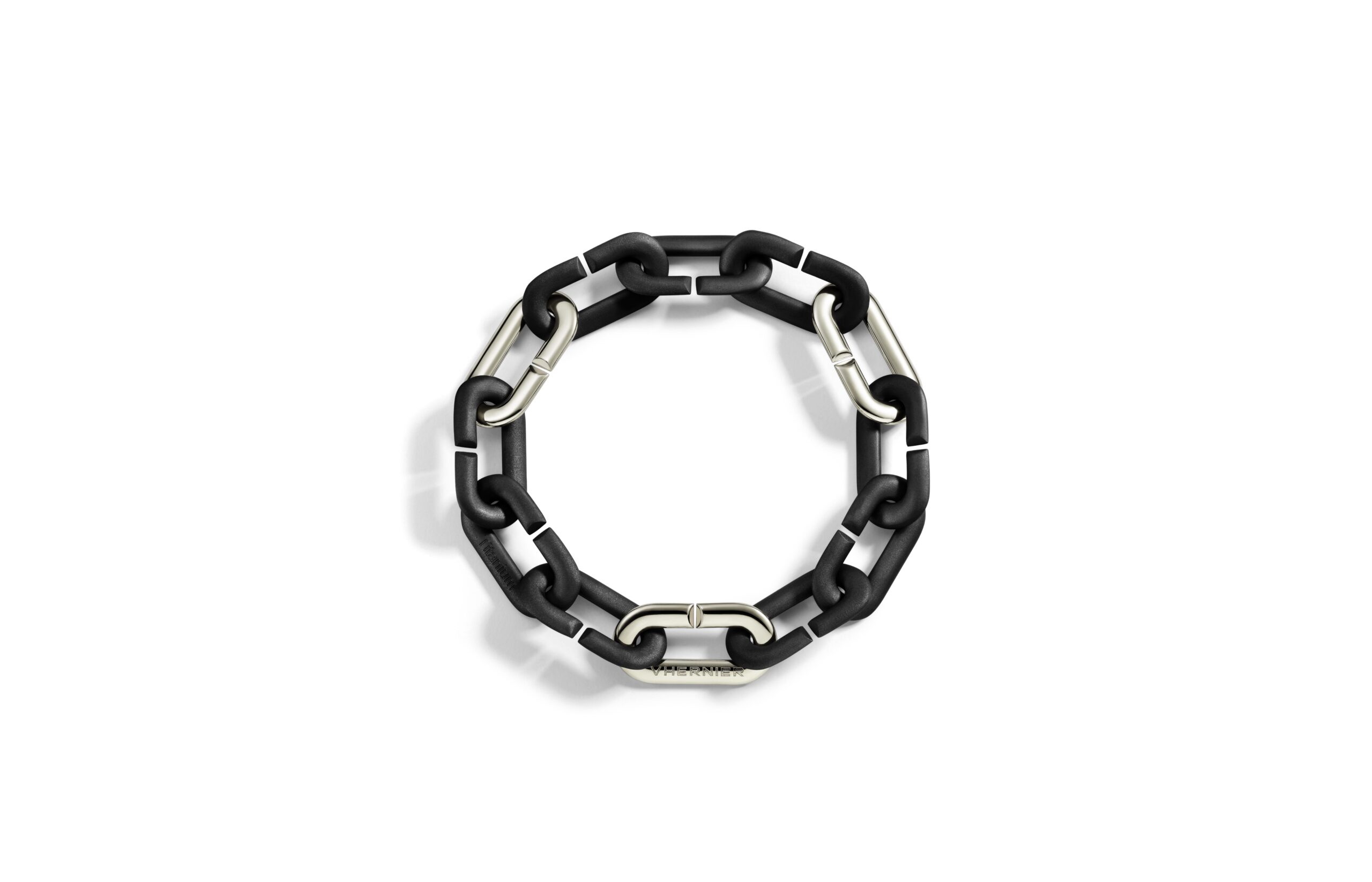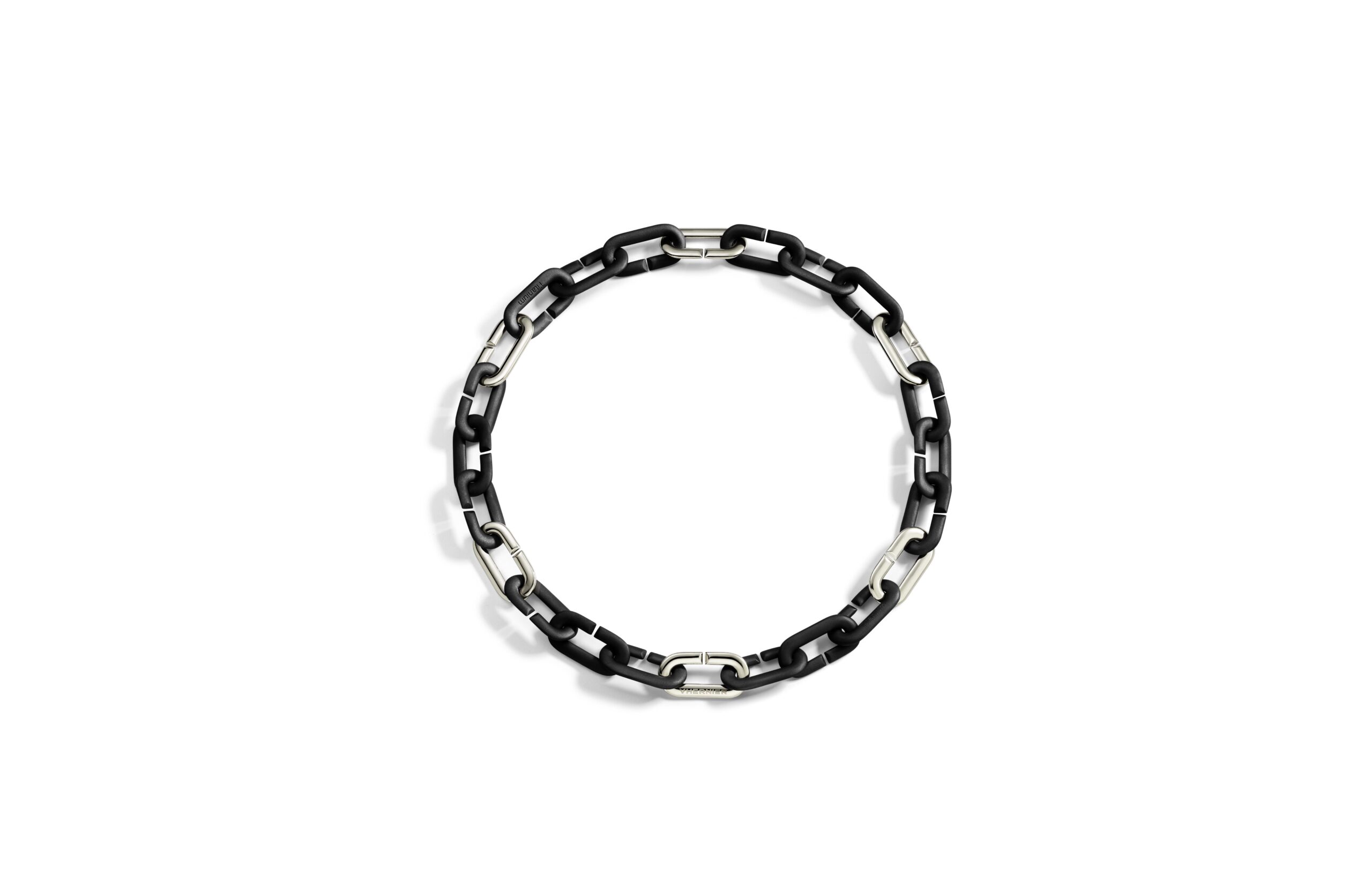 Bracelet chaine Vhernier collection Mon Jeu composé de 11 maillons en titane noir mat et 1 maillon en or blanc