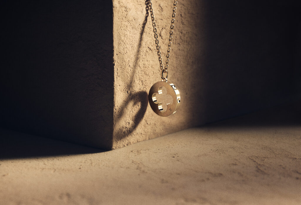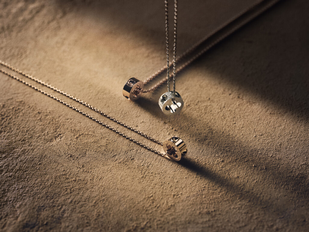 Des liens se détachent en relief sur des bagues et des bracelets : allégorie de la connexion, cet entrelacement évoque les sangles de cuir qui entourent les bagages légendaires de la Maison. La célèbre Fleur quadrilobée exerce son attraction universelle sur des médaillons aux allures de talismans modernes.
