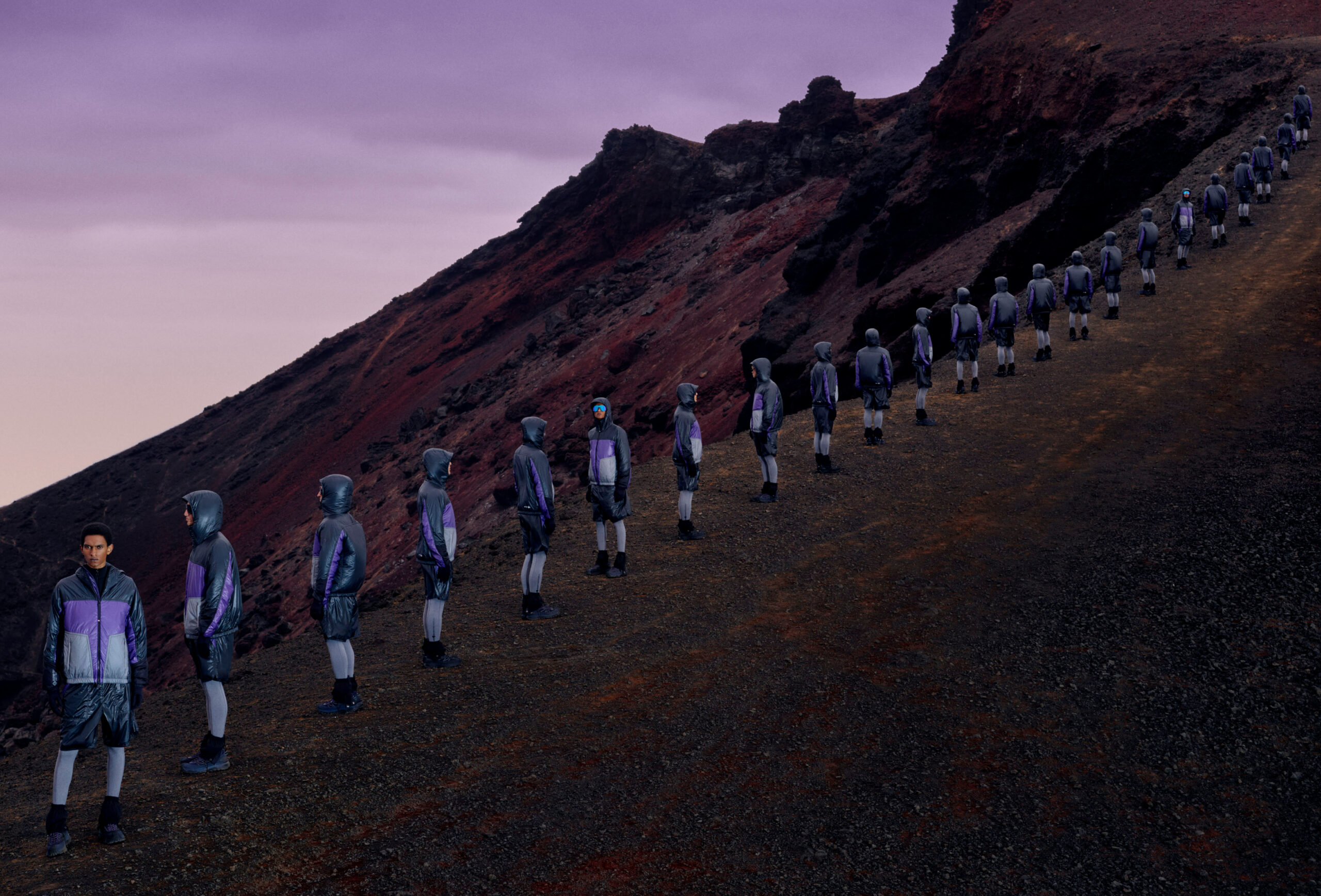 Une nouvelle campagne photographiée par Thibaut Grevet dans un décor naturel extraordinaire qui capture l’énergie dynamique de Moncler Grenoble, et adapte les codes de la montagne aux journées plus chaudes passées sur les hauteurs des sommets. Les mannequins sont parés de modèles techniques, prêts pour une nouvelle saison dynamique en extérieur – la collection se révèle en parfaite harmonie avec le cadre environnant époustouflant. Des tonalités iridescentes de lilas, de blanc spectral et d’argent mercuriel reflètent la brume violette du crépuscule et offrent une vision cohérente pour la prochaine saison de loisirs en plein air.