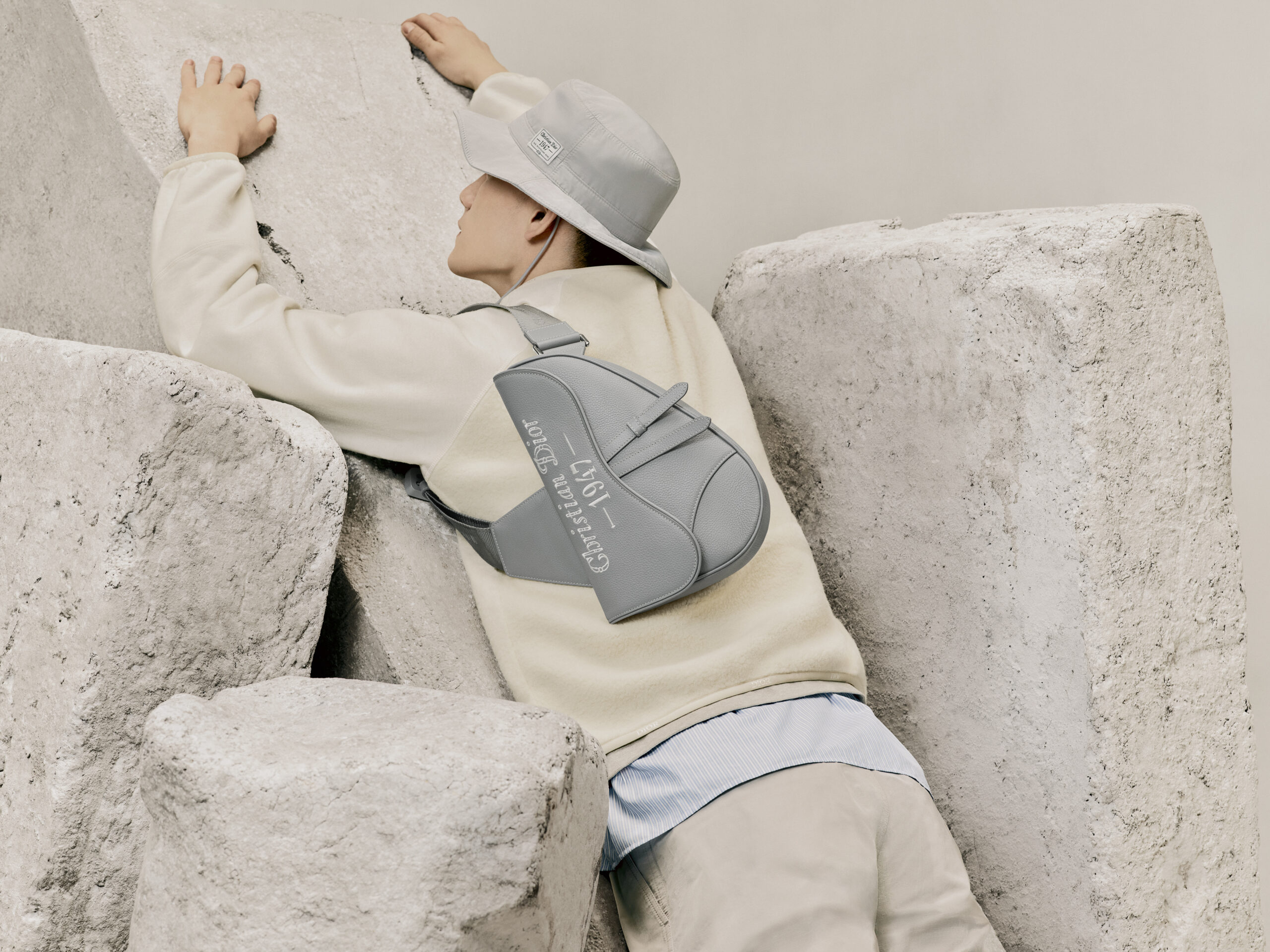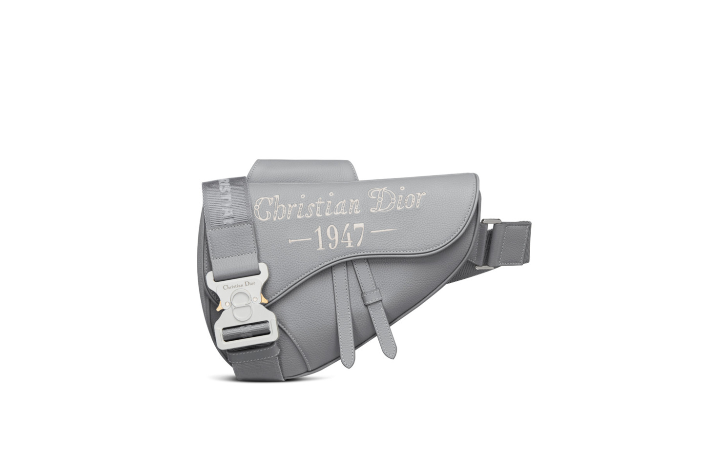 EMBLÈME DE LA CAPSULE CD 1947 – EXALTANT LE DIALOGUE PASSIONNANT ENTRE KIM JONES ET L’HÉRITAGE DE MONSIEUR DIOR, LE SAC SADDLE SE DÉCLINE, CETTE SAISON, DANS UNE VERSION EN CUIR GRENÉ GRIS DIOR, LA COULEUR FÉTICHE DU COUTURIER-FONDATEUR, ÉVOQUANT LE CIEL DE GRANVILLE, SA VILLE D’ENFANCE ET DE CŒUR. BRODÉE SELON UN SAVOIR-FAIRE VIRTUOSE, LA SIGNATURE ARBORANT LE NOM « CHRISTIAN DIOR » ET « 1947 » – ANNÉE DU PREMIER DÉFILÉ DIOR – SE DÉPLOIE SUR CETTE CRÉATION IRRÉSISTIBLE. UN OBJET DE DÉSIR INÉDIT, REFLET DE L’EXCELLENCE ET DE LA MODERNITÉ DE LA MAISON.