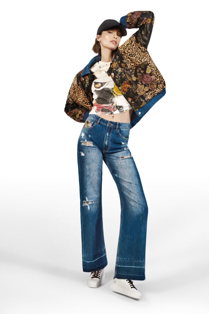 Pour la collection FW 2022 : l’esthétique rétro du personnage est associée au goût de Desigual pour des combinaisons insolites. Nous retrouvons des vêtements radicalement urbains comme les hoodies, les ensembles en denim jean ou les vestes bombers remplies d’empiècements complexes et de panneaux contrastants.