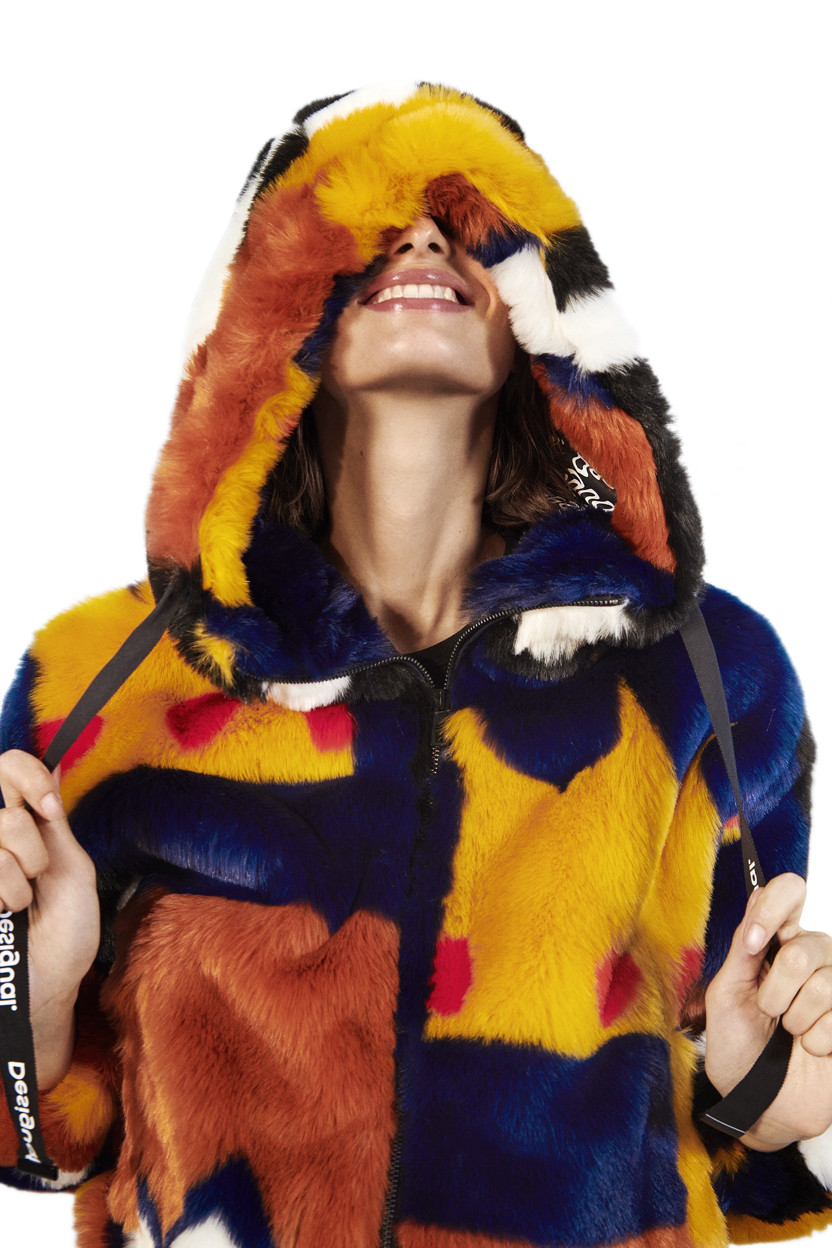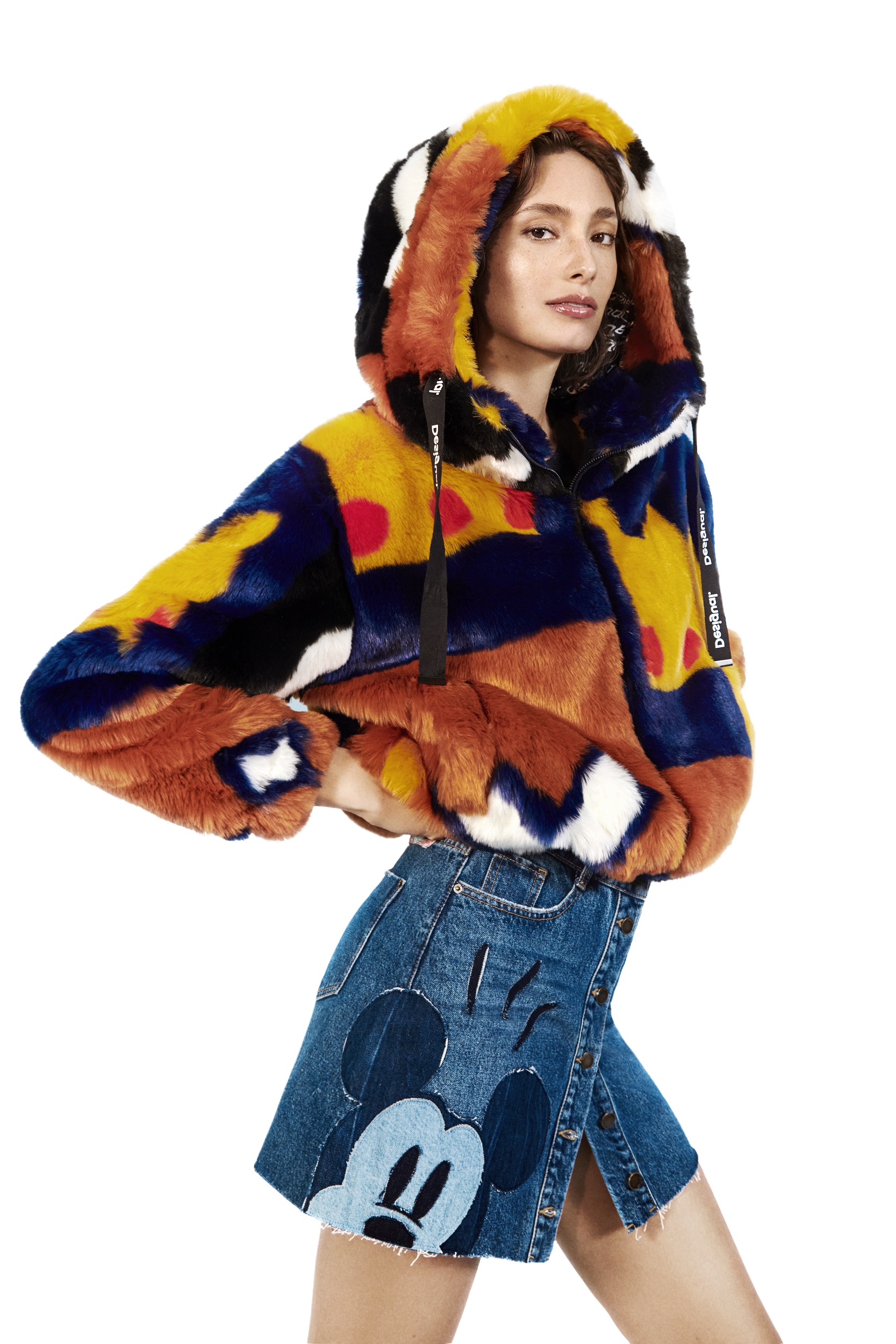 Pour la collection FW 2022 : l’esthétique rétro du personnage est associée au goût de Desigual pour des combinaisons insolites. Nous retrouvons des vêtements radicalement urbains comme les hoodies, les ensembles en denim jean ou les vestes bombers remplies d’empiècements complexes et de panneaux contrastants.