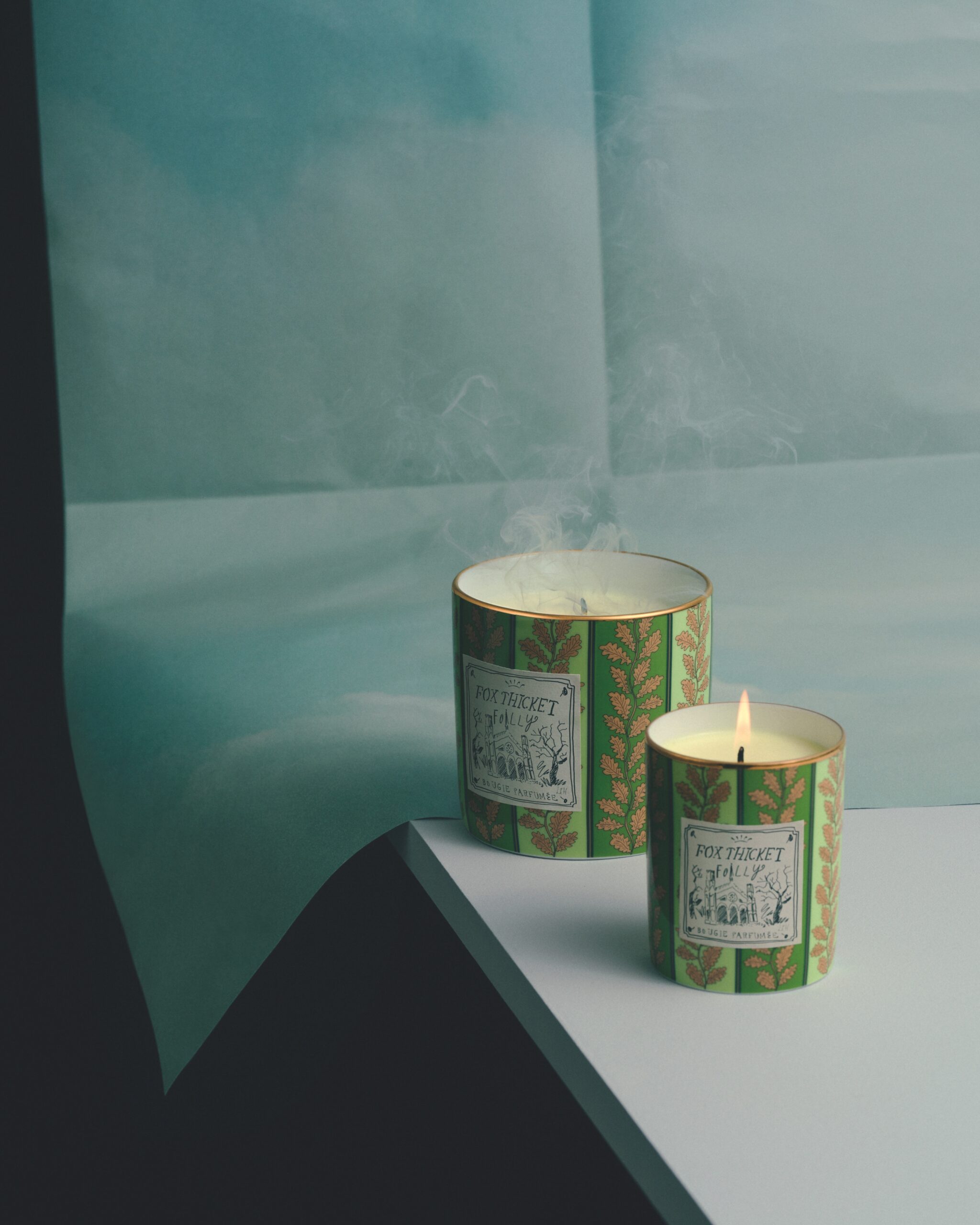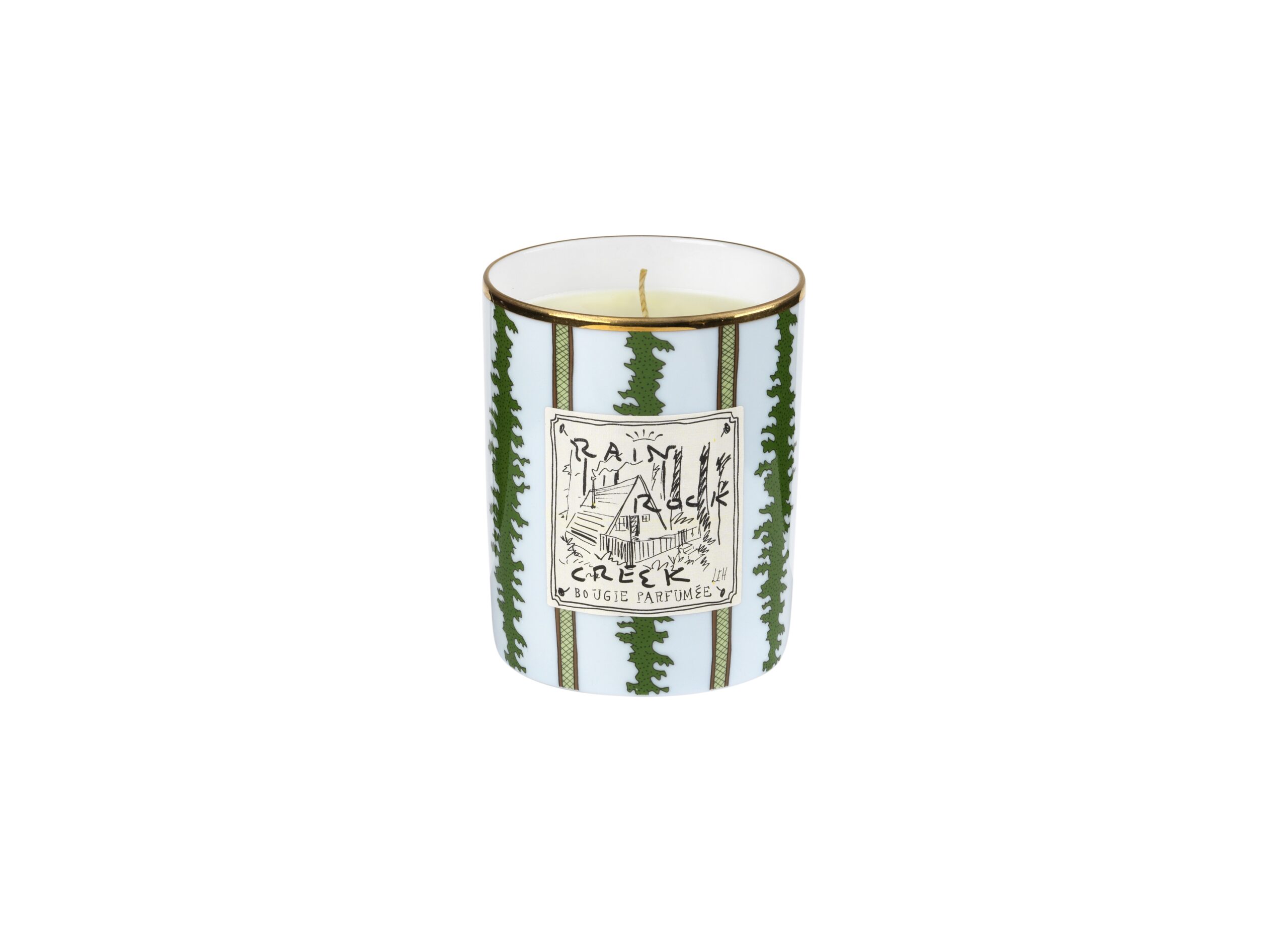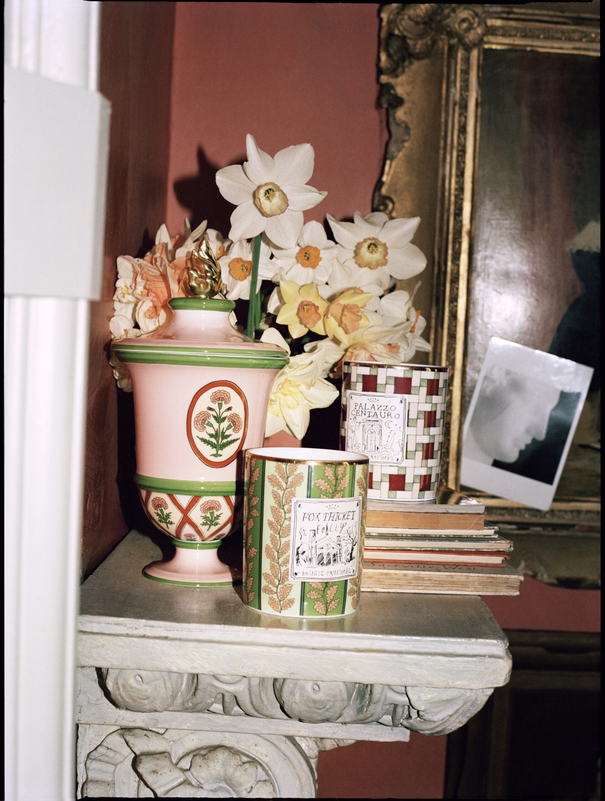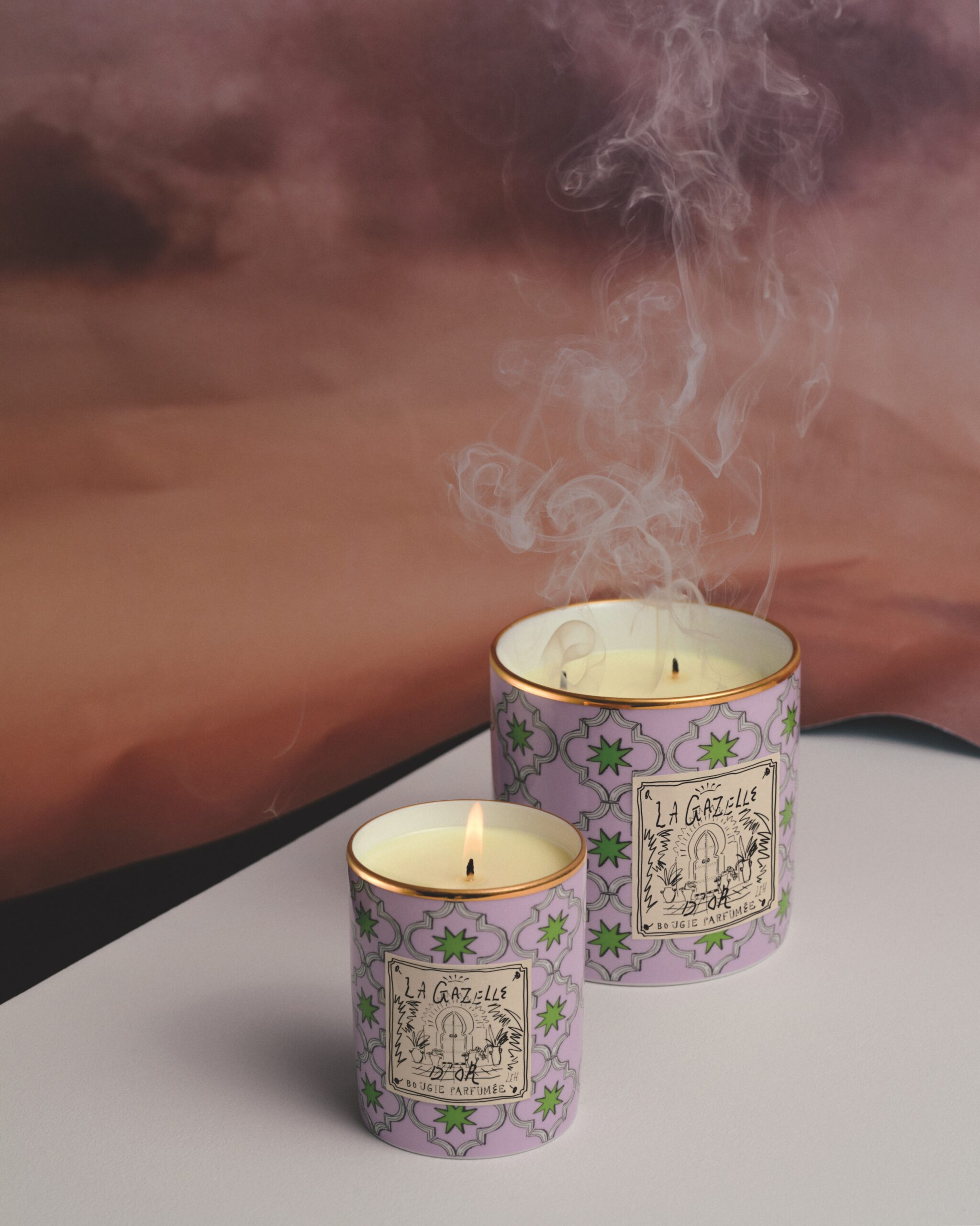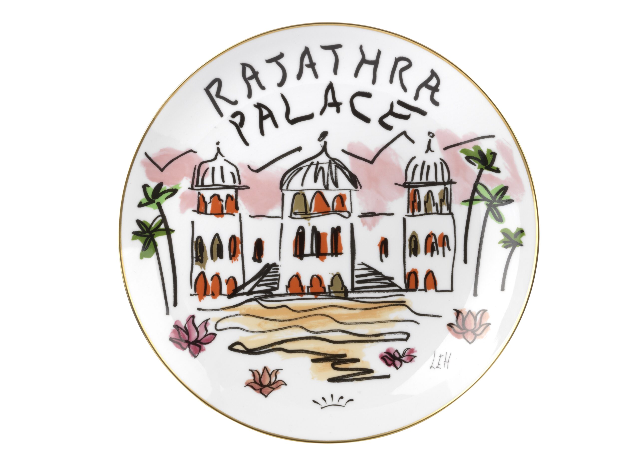 Chaque fragrance s’accompagne d’un petit plateau et d’un vide-poches, tous deux finis à la main et décorés des dessins suggestifs de Luke Edward Hall représentant les cinq lieux.