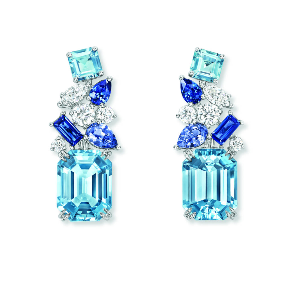 Une beauté sereine capturée par une mer infinie de pierres précieuses d’un bleu aquatique. Santorin, l’un des lieux les plus magiques au monde, a inspiré un chef-d’œuvre de Haute Joaillerie serti de diamants, saphirs et aigues-marines. Un collier unique en son genre exprime la personnalité singulière de cette ville pittoresque, avec ses villages peints en blanc et bleu — traduits ici respectivement en diamants et saphirs — et ses eaux calmes qui scintillent au pied de ses falaises abruptes que symbolisent huit aigues-marines octogonales. L’admirable serti des pierres permet en outre au collier de bouger avec une grâce et une fluidité exceptionnelles. La parure Shades of Blue comprend également une paire de boucles d’oreilles assorties en aigues-marines, saphirs bleus et diamant en forme de goutte.