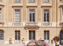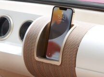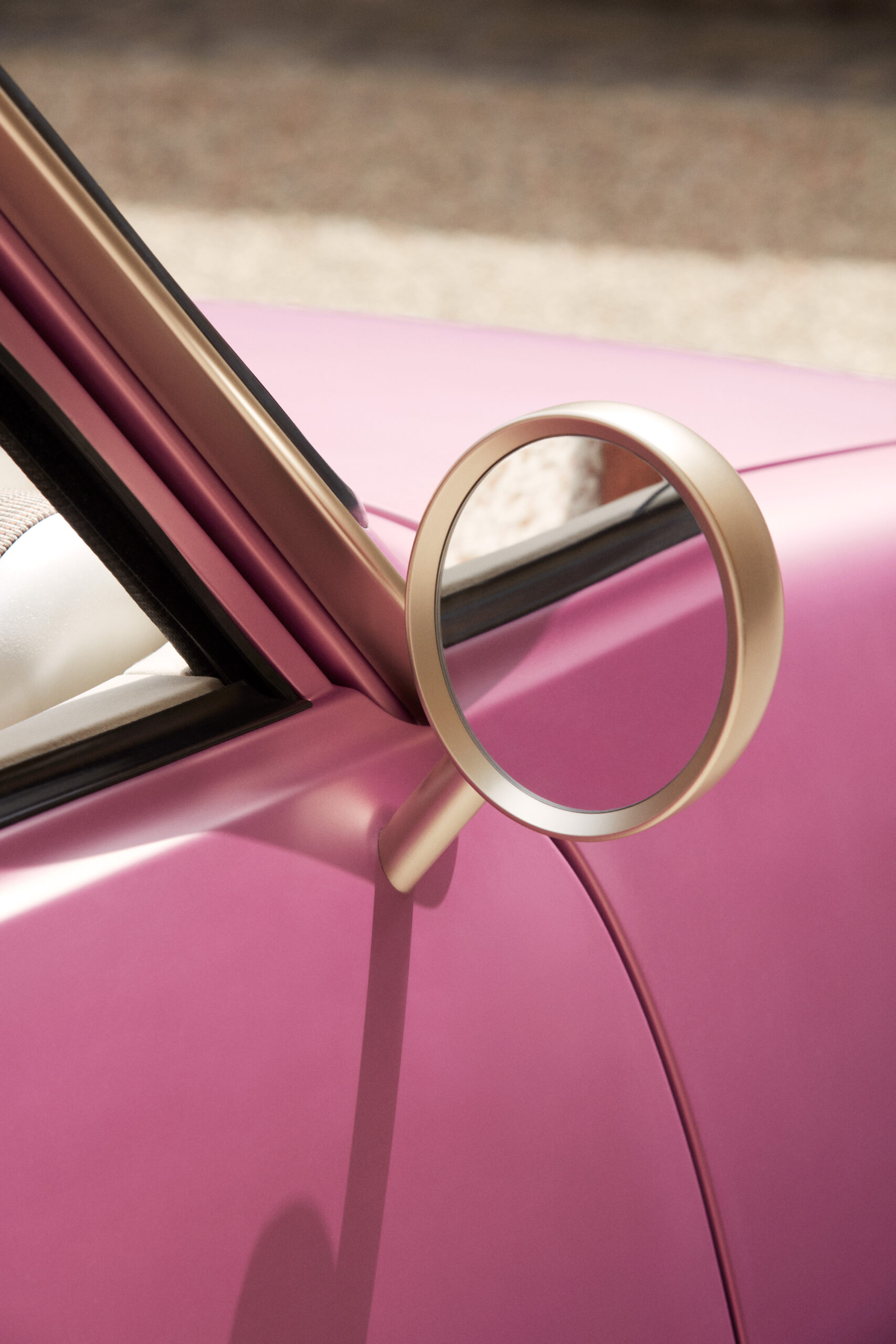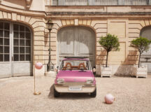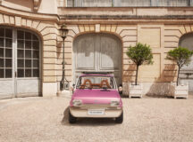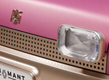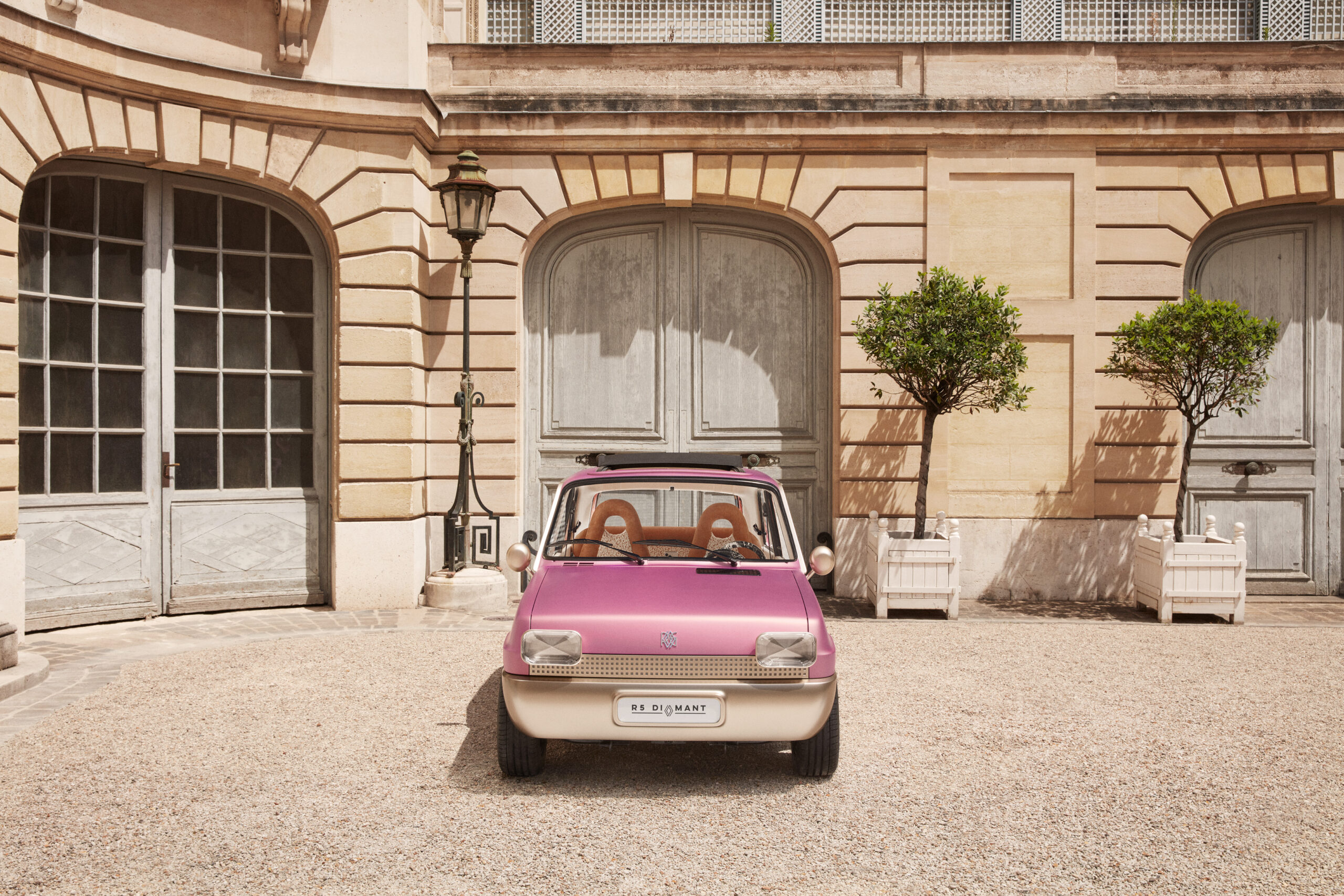 A l’extérieur, la carrosserie a été épurée pour mieux souligner les lignes iconiques de la Renault 5 et les appendices habituels sont volontairement sortis de leur environnement et ont été magnifiés en forme comme en finition. Les phares et feux sont facettés comme des pierres précieuses et les roues larges, héritées de la version Alpine, ont été lissées et signées en leur centre du soleil cher à Pierre Gonalons. La teinte extérieure présente une peinture tri-couche, faite de pigments dorés sur une base rose. Elle est récouverte d’un vernis givré, ce qui donne un effet très changeant avec des reflets dorés au soleil, et une nuance plus bleue dans les ombres. A l’intérieur c’est l’épure qui domine. Avec les expertises conjointes du Design Renault et des artisans associés à la réalisation du projet, Pierre Gonalons a pu simplifier la voiture en ne gardant que des éléments très spécifiques. Les poignées de portes et commandes de lève-vitre ainsi que le levier de vitesses sont faits à partir d’une sphère tronquée, traitée comme des références très parisiennes en laiton doré à l’or pâle, matériaux inoxydables, et très durables. Le volant, avec sa forme très particulière et pourtant fonctionnel, est produit avec du marbre sur carbone, et même la clé du véhicule subit un traitement spécifique. Tout en s’appuyant sur l’expertise de Renault pour donner à l’ensemble un crédibilité et un réalisme automobile sans faille, et sans compromettre l’usage des éléments fonctionnels. Renault 5 Diamant apporte aussi de la technologie. Tout d’abord elle est 100% électrique, et intègre un lecteur d’empreinte digitale déverrouille les portes. Véhicule électrique, Renault 5 Diamant propose un levier de vitesses à trois positions séquentielles (marche avant, neutre et marche arrière). Trois compteurs ronds à l’affichage digital célébrant l’horlogerie affichent les informations essentielles : vitesse, charge et heure. Quant à la navigation et l’infodivertissement, tout peut être facilement fourni par le smartphone du propriétaire qui trouve sa place dans un emplacement dédié au milieu de la planche de bord.