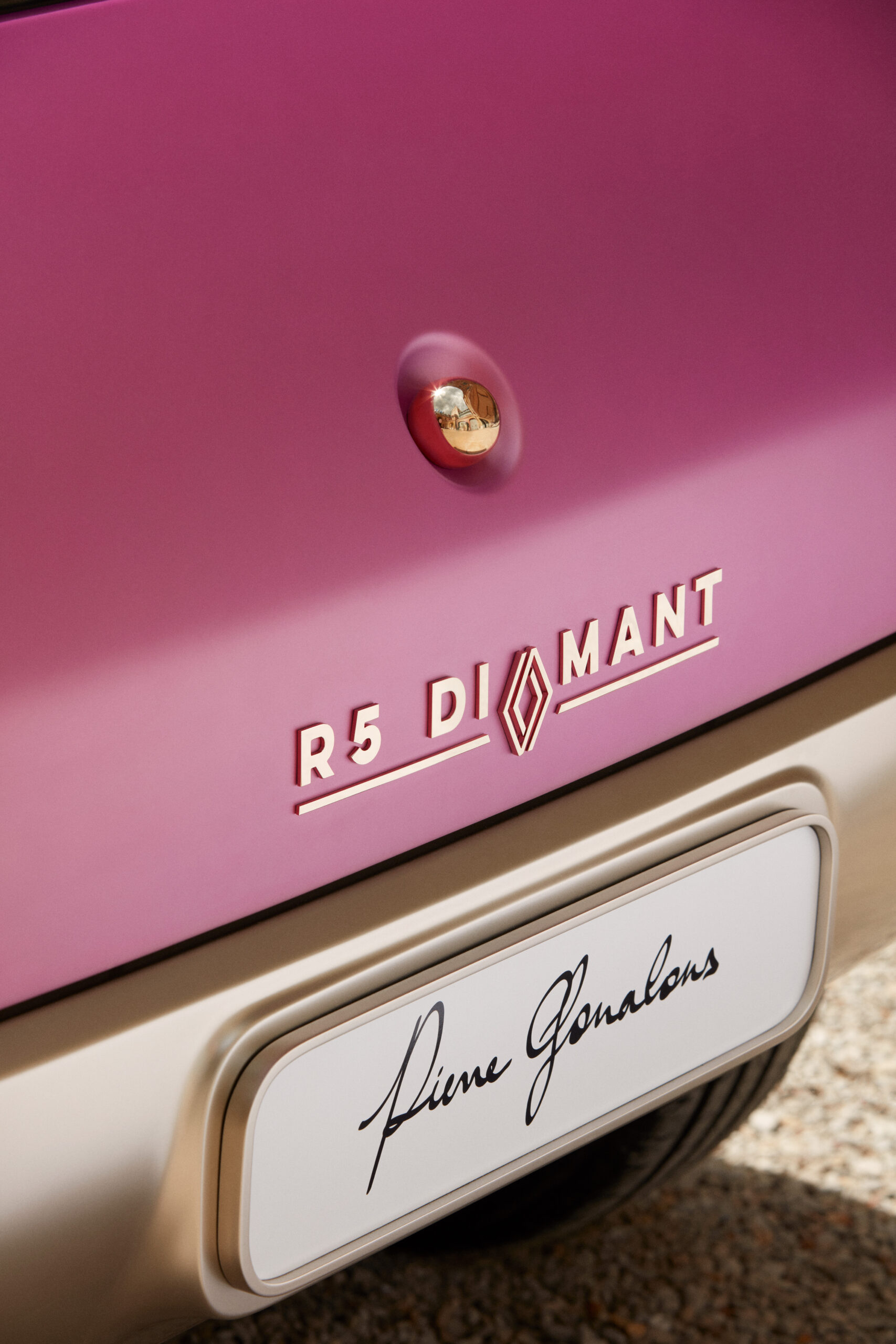 L’inspiration pour Pierre Gonalons est venue des arts décoratifs et plus particulièrement de la haute joaillerie, que l’on retrouve dans les détails précieux et innovants. Renault 5 Diamant garde les lignes caractéristiques et la forme iconique de la « Supercar » originelle qui sortait de la ligne de production de Renault en 1972, mais sous cette silhouette familière, une transformation profonde a eu lieu. Sous le capot, la voiture est équipée d’un moteur 100% électrique, premier élément qui signale sa modernité. Visuellement, son design introduit des détails de haute qualité qui invitent à la découverte de ce mélange inédit et raffiné. François Farion, Directeur Couleurs & Matières de Renault, a souligné : « L’univers créatif et la personnalité de Pierre Gonalons et de ses collaborateurs font partie du fleuron d’artisans français, donnant un résultat novateur et élaboré dans les détails. Pour moi la Renault 5 Diamant est d’abord le choc émotionnel des teintes extérieures qui donnent à la voiture un aspect à la fois naïf et sophistiqué, et l’attention du détail apporté par Pierre, très sensible aux références et à la signification de chaque élément. »