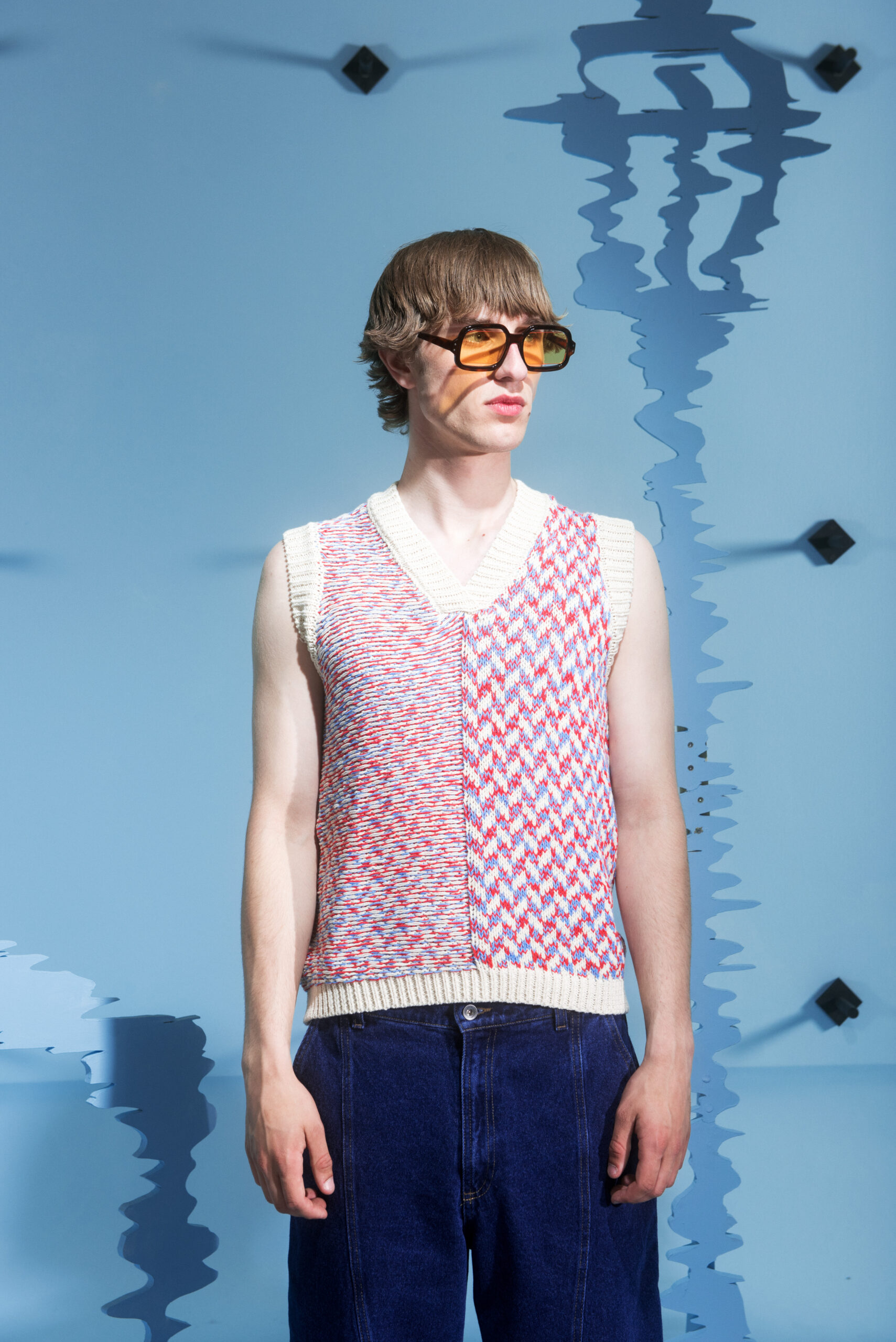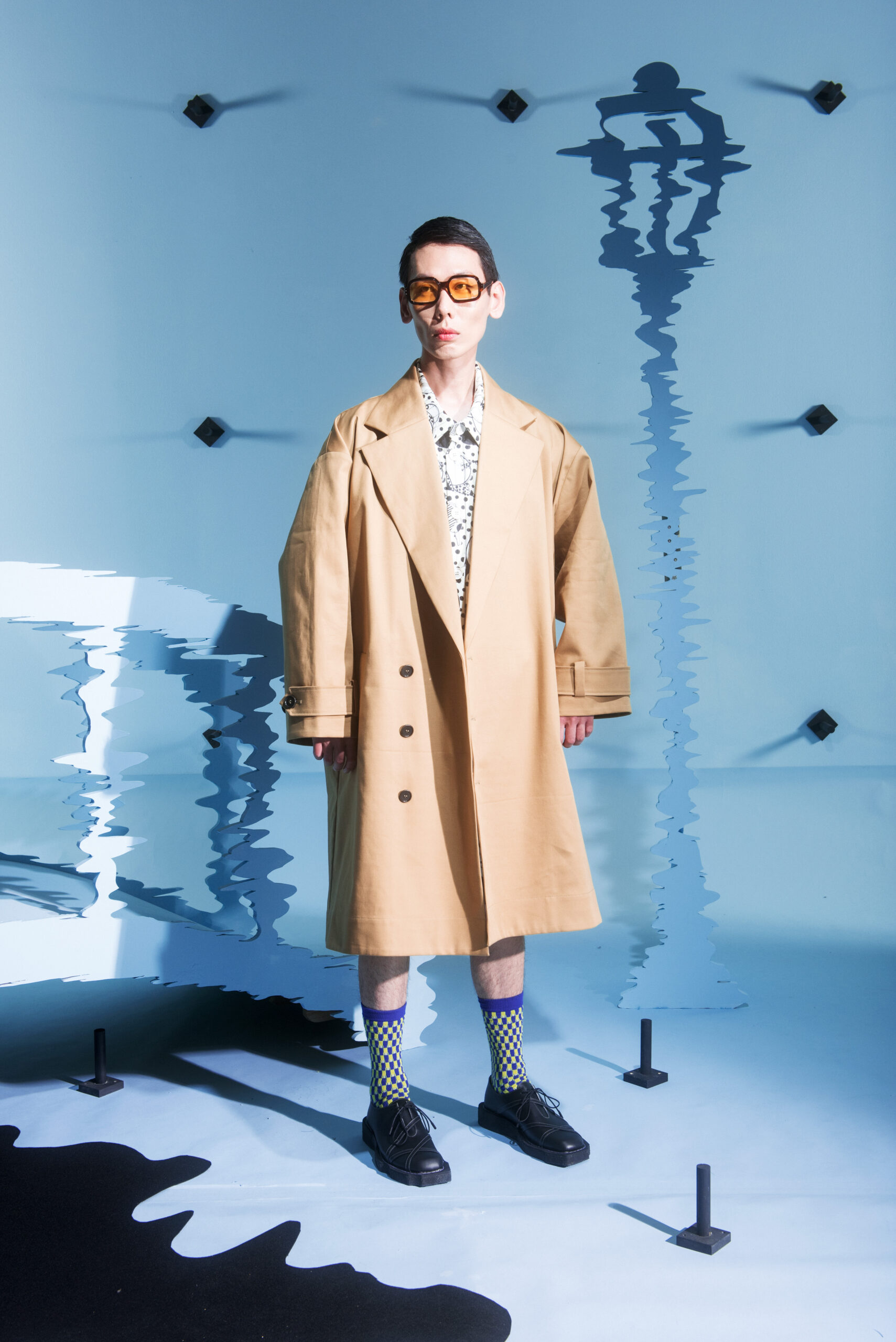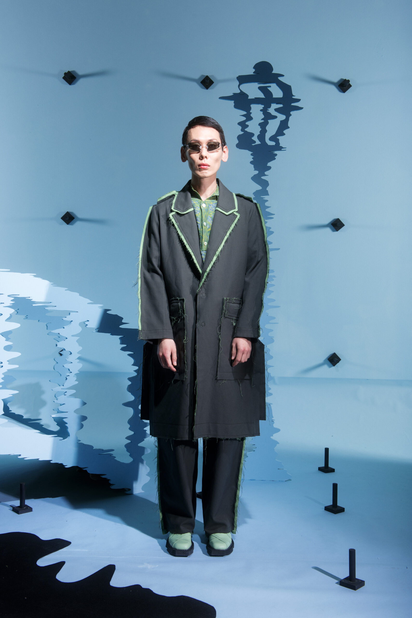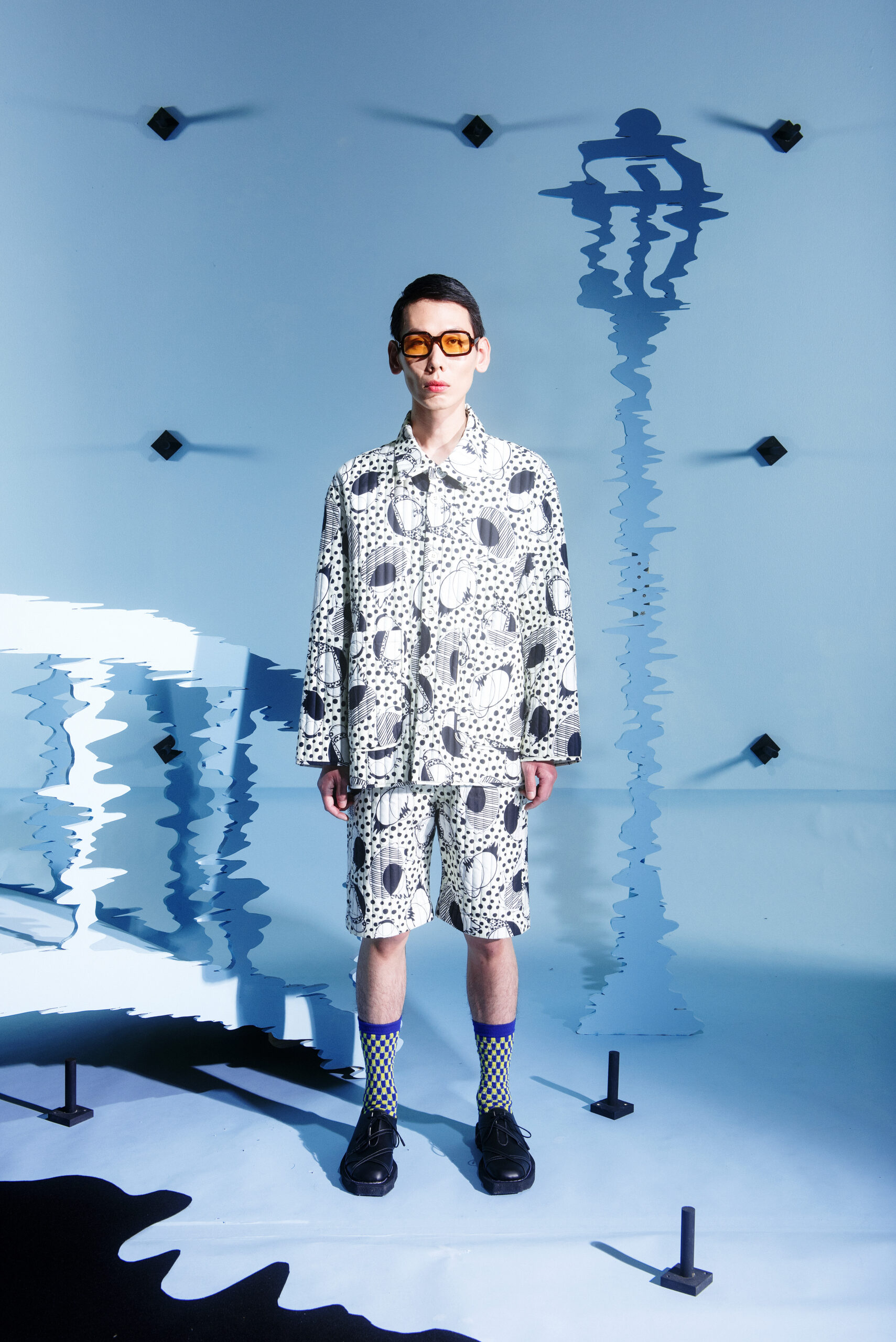 The collection’s color palette references the colors of nature and the manmade, showing the contrast between the calming of the blue and green with the noise of the orange.