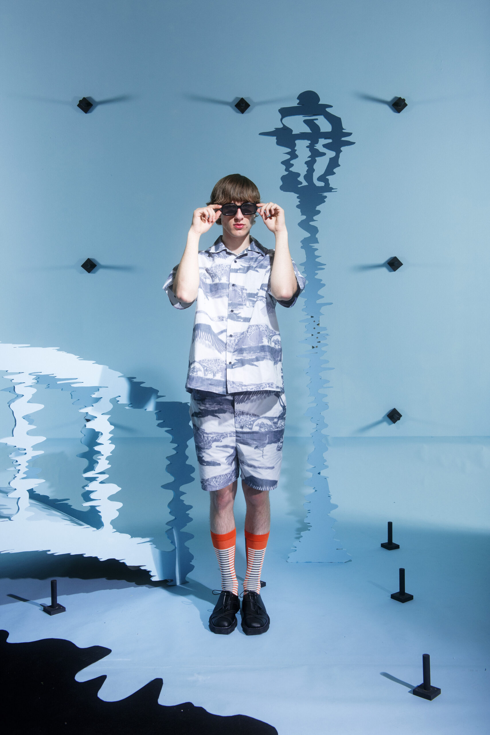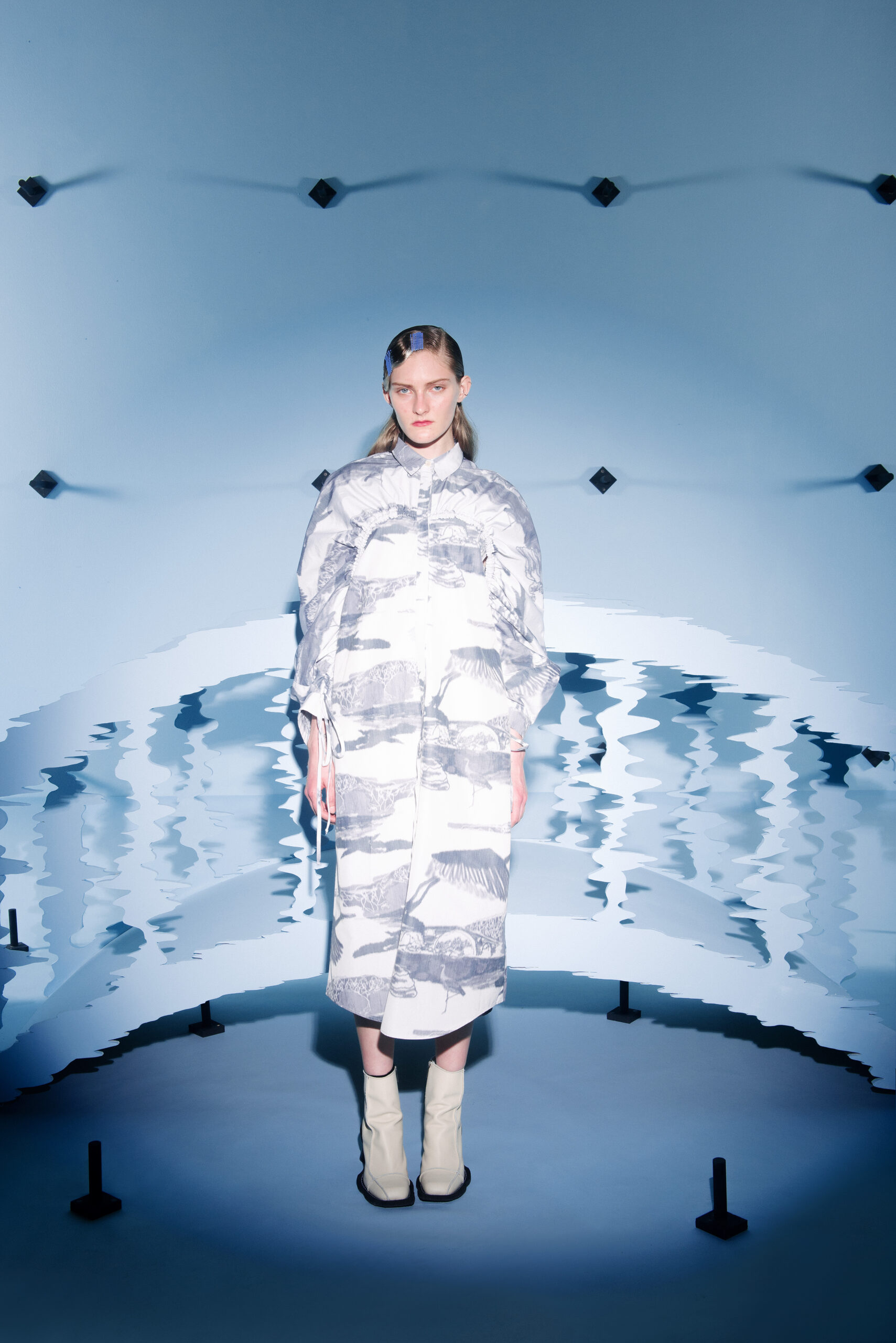 For the SS23 studio collection, Henrik Vibskov investigates the elements of bridges – a construction born from the hands of humans, allowing the feet to touch where only birds used to inhabit. Now, a bridge acts as a transition from one place to another, where humans and birds can combine their spheres to be coherent in a moment of motion.