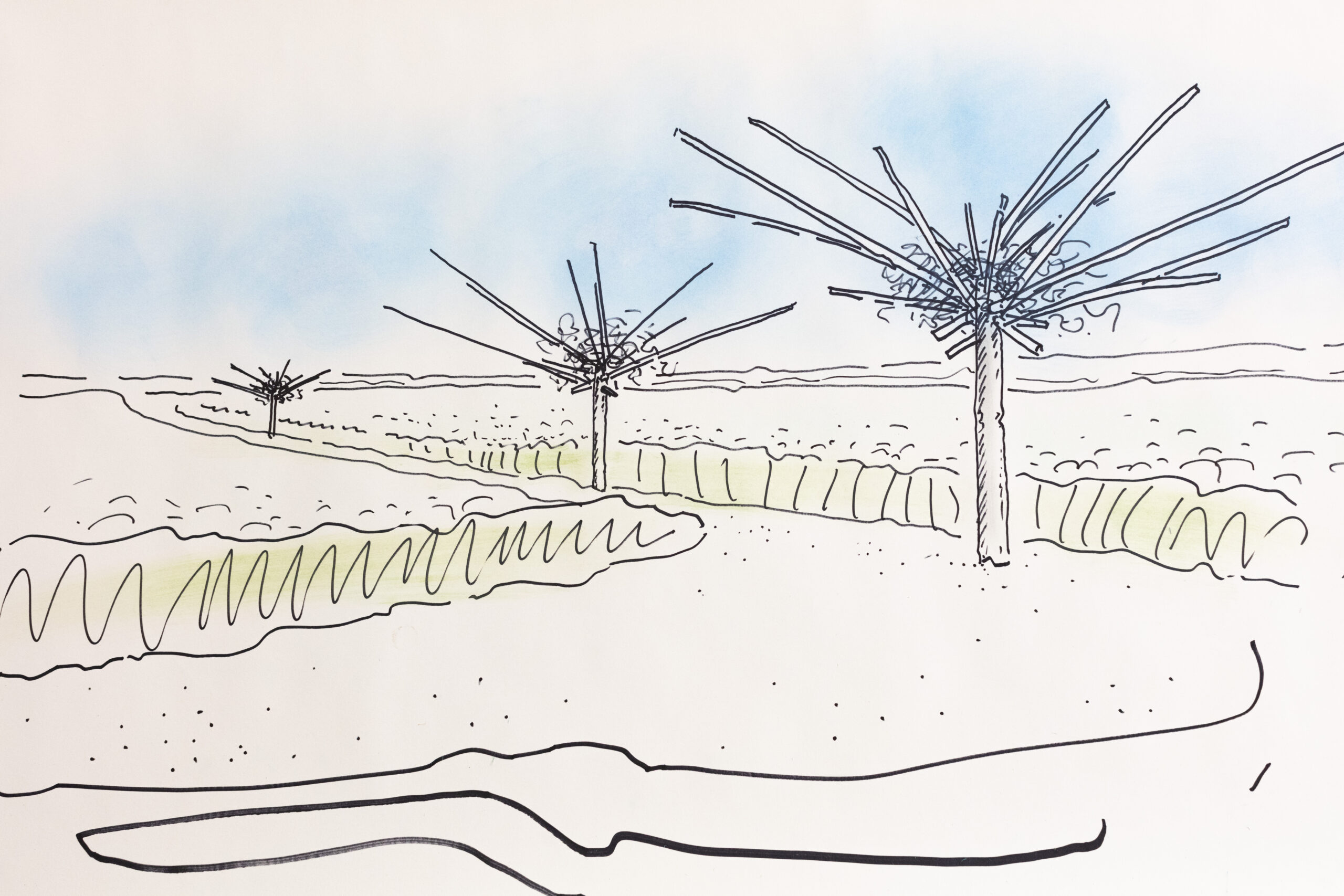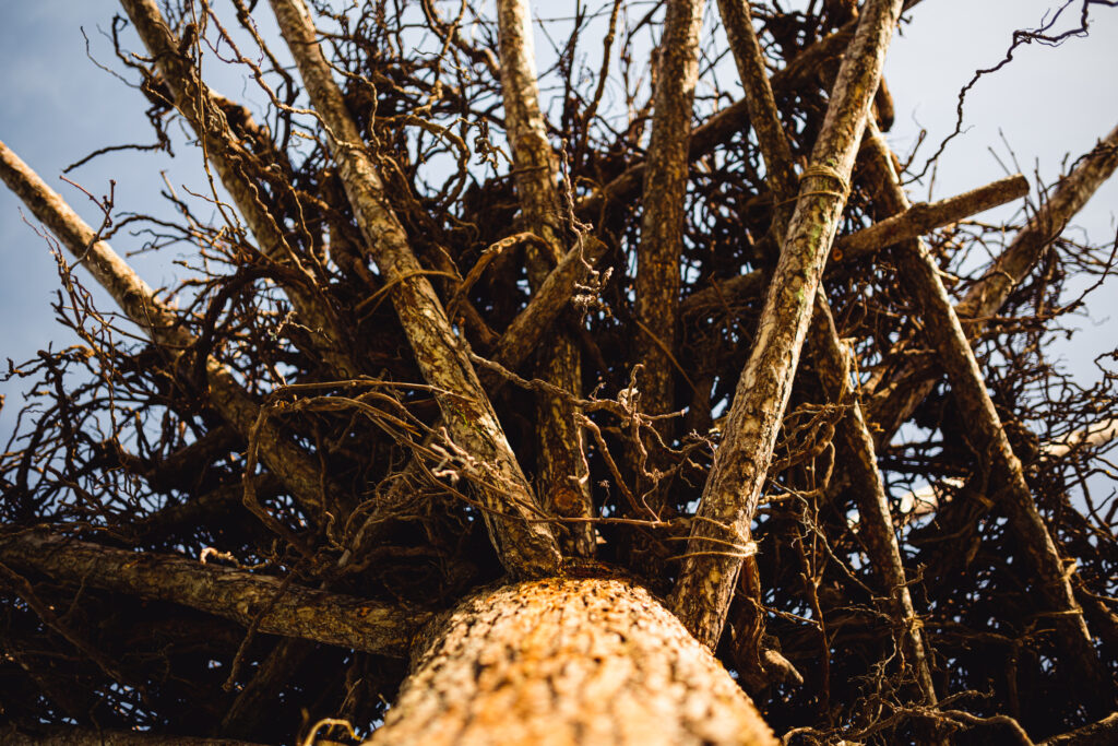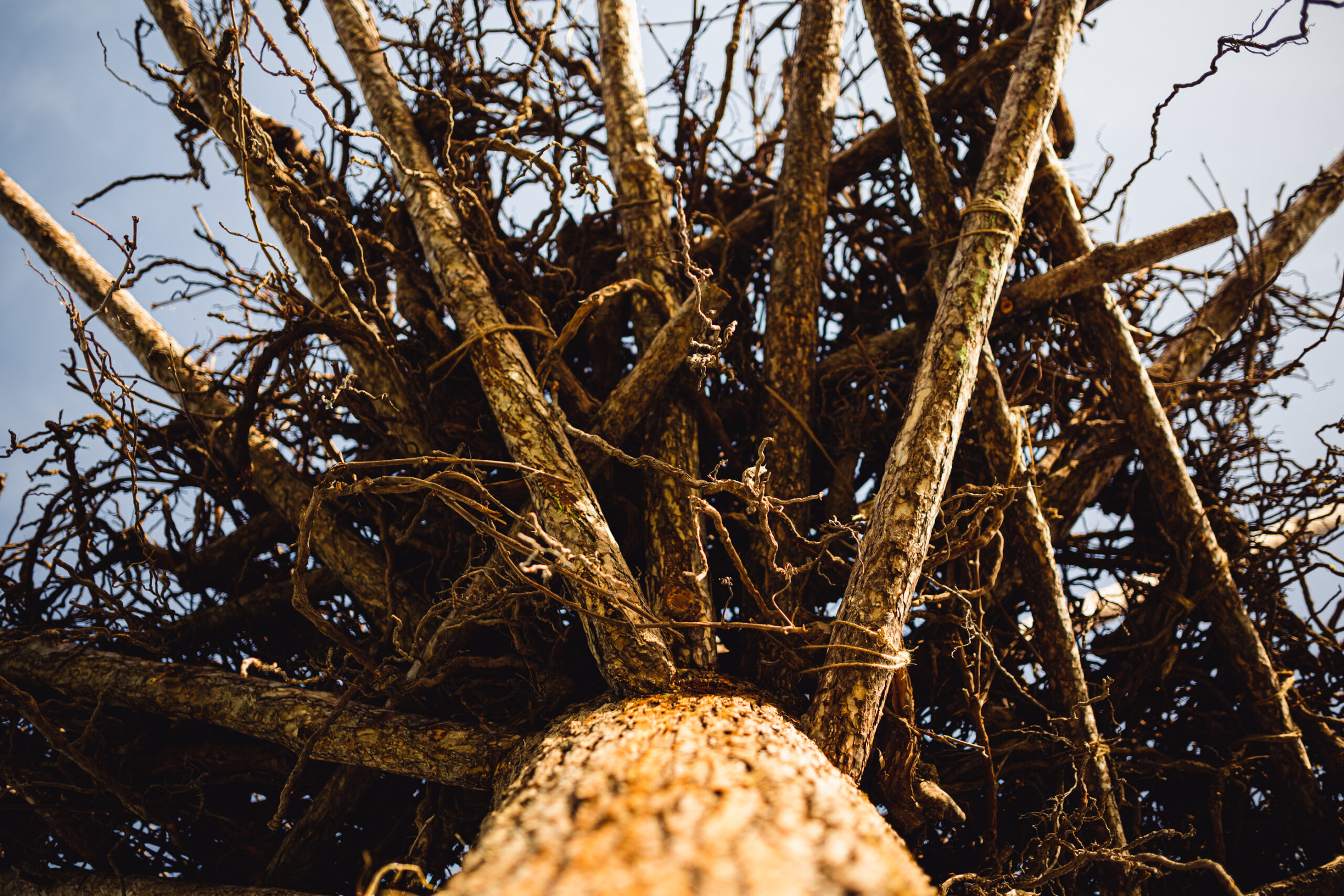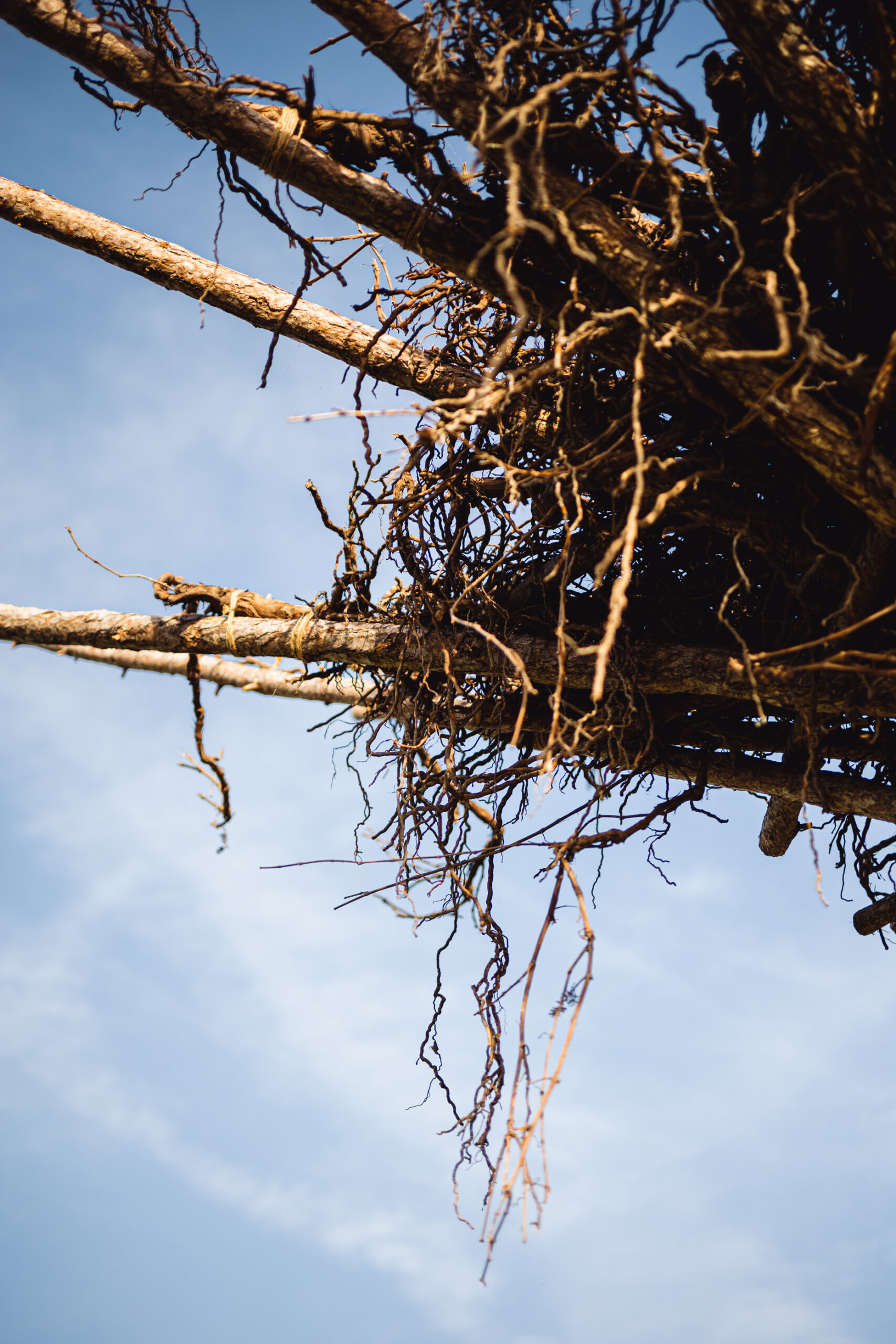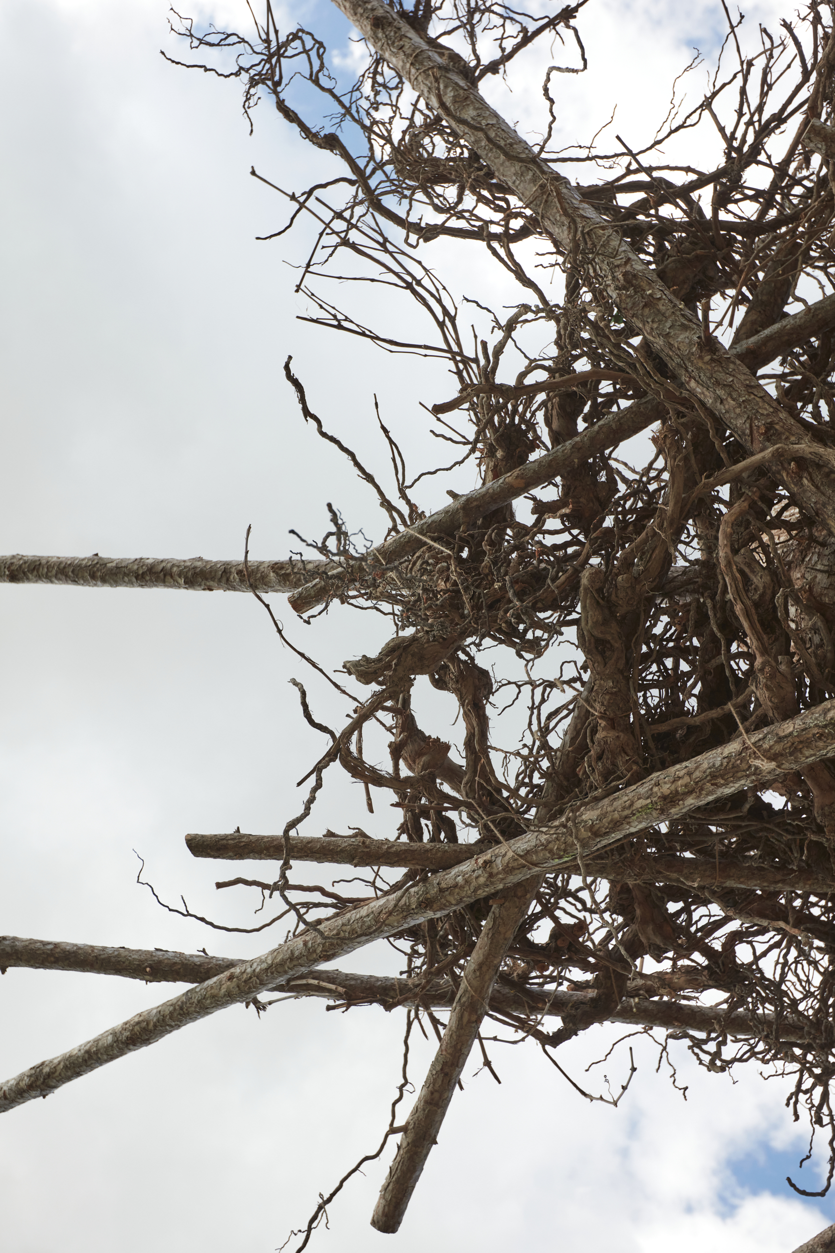 NILS-UDO a utilisé pour les construire les ceps et sarments retirés du vignoble par les équipes de la Maison Ruinart afin de fragmenter d’immenses parcelles pour leur redonner une taille bocagère et favoriser la biodiversité. Constitués d’un tronc en chêne et de pins en en guise de branches, ces HABITATS forment des nids et ne comportent aucun clou ni aucune fixation métallique.