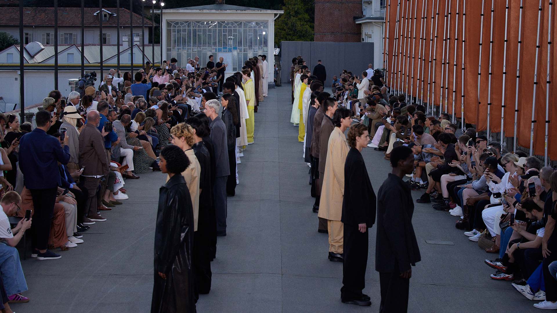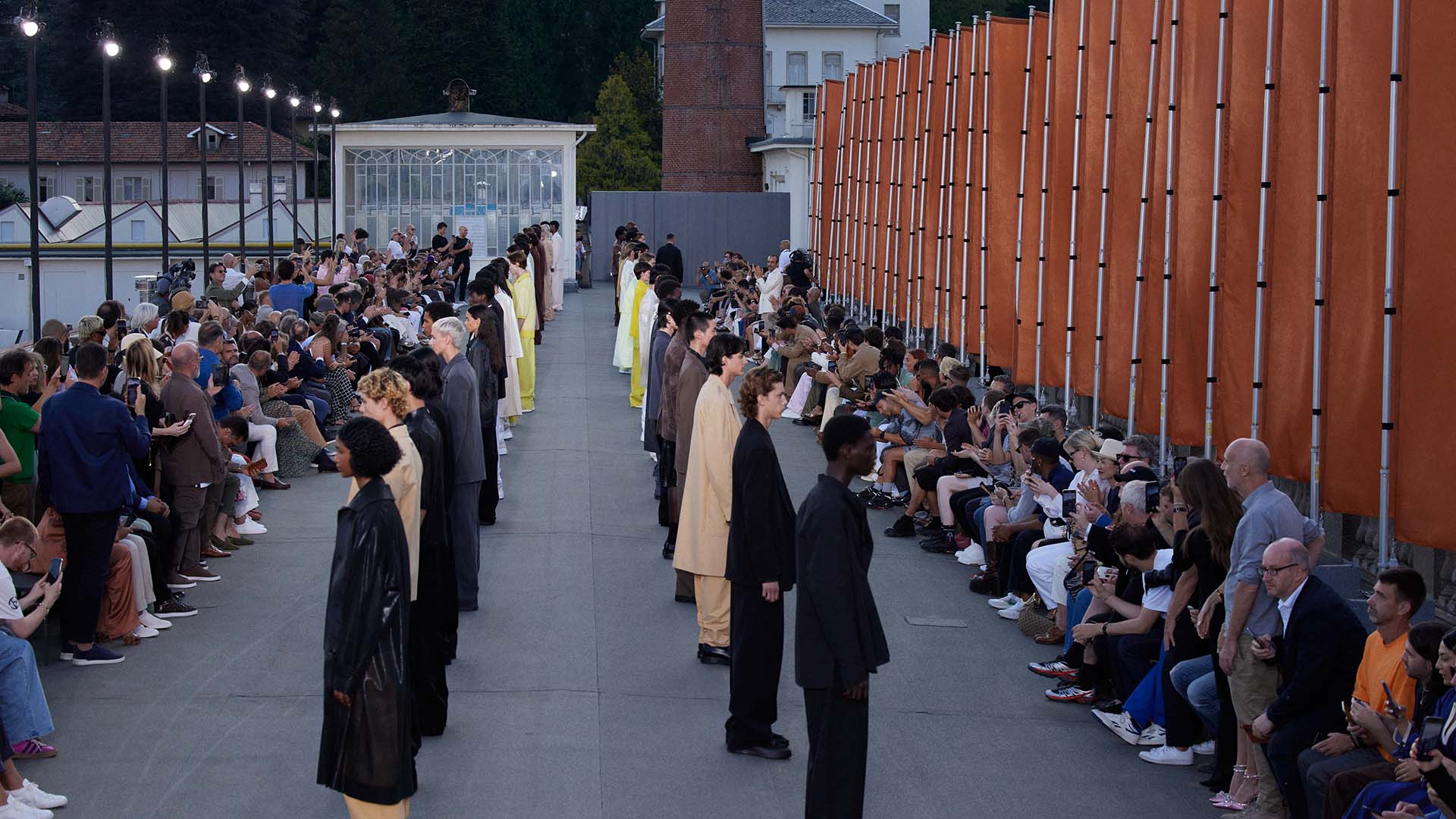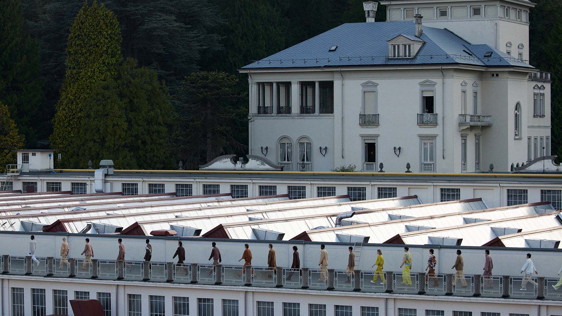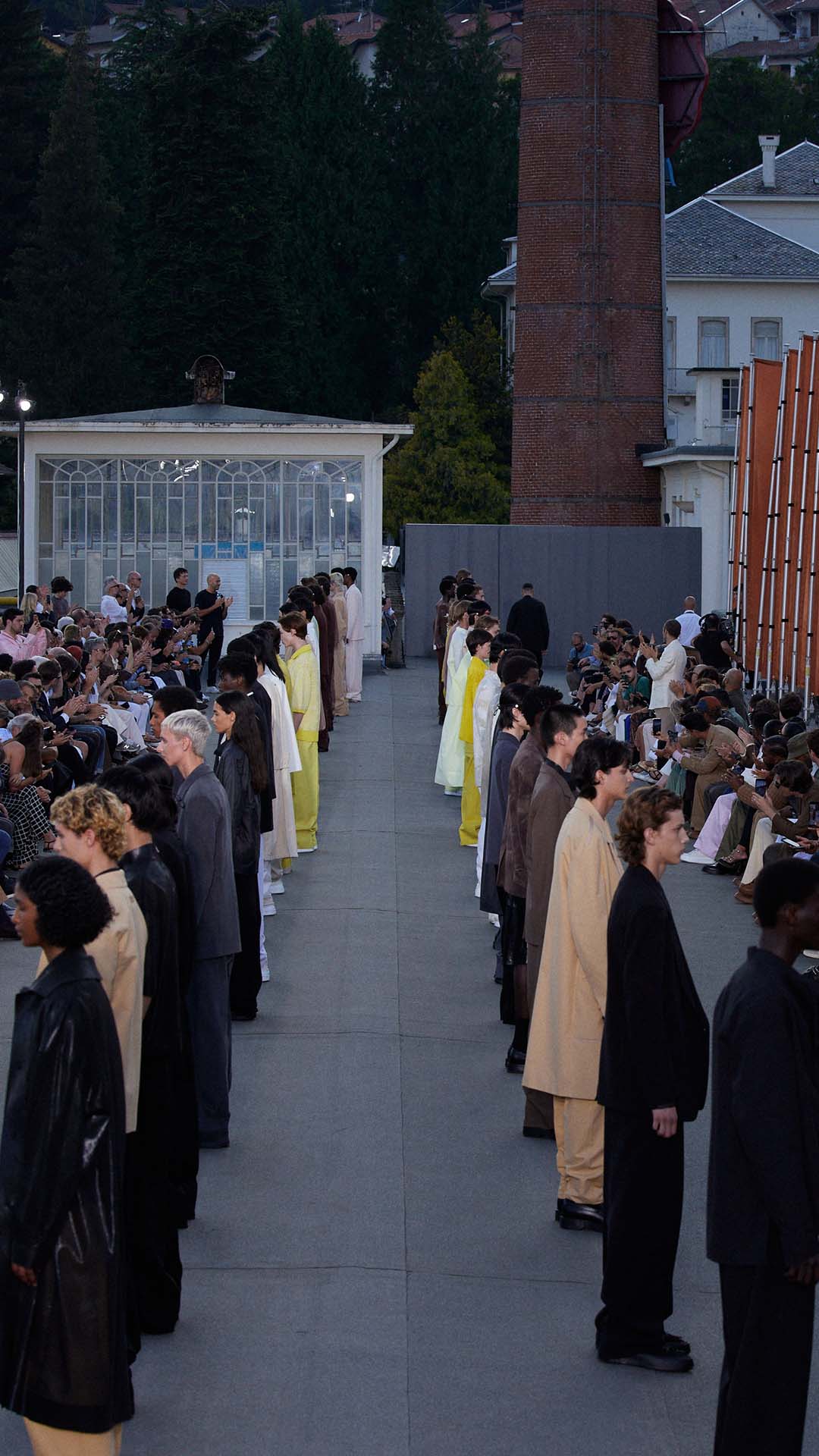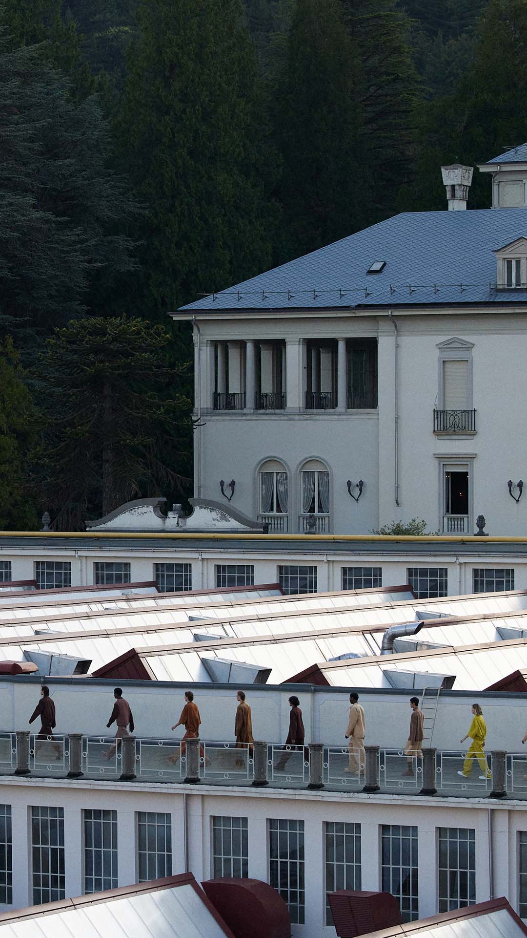 Le défilé printemps été 2023 de Zegna a été présenté sur le toit de la filature de laine historique Lanificio Zegna, et diffusé simultanément dans le monde entier, offrant au public un accès sans précédent au défilé grâce à plusieurs caméras permettant différentes vues autour de l’Oasi.