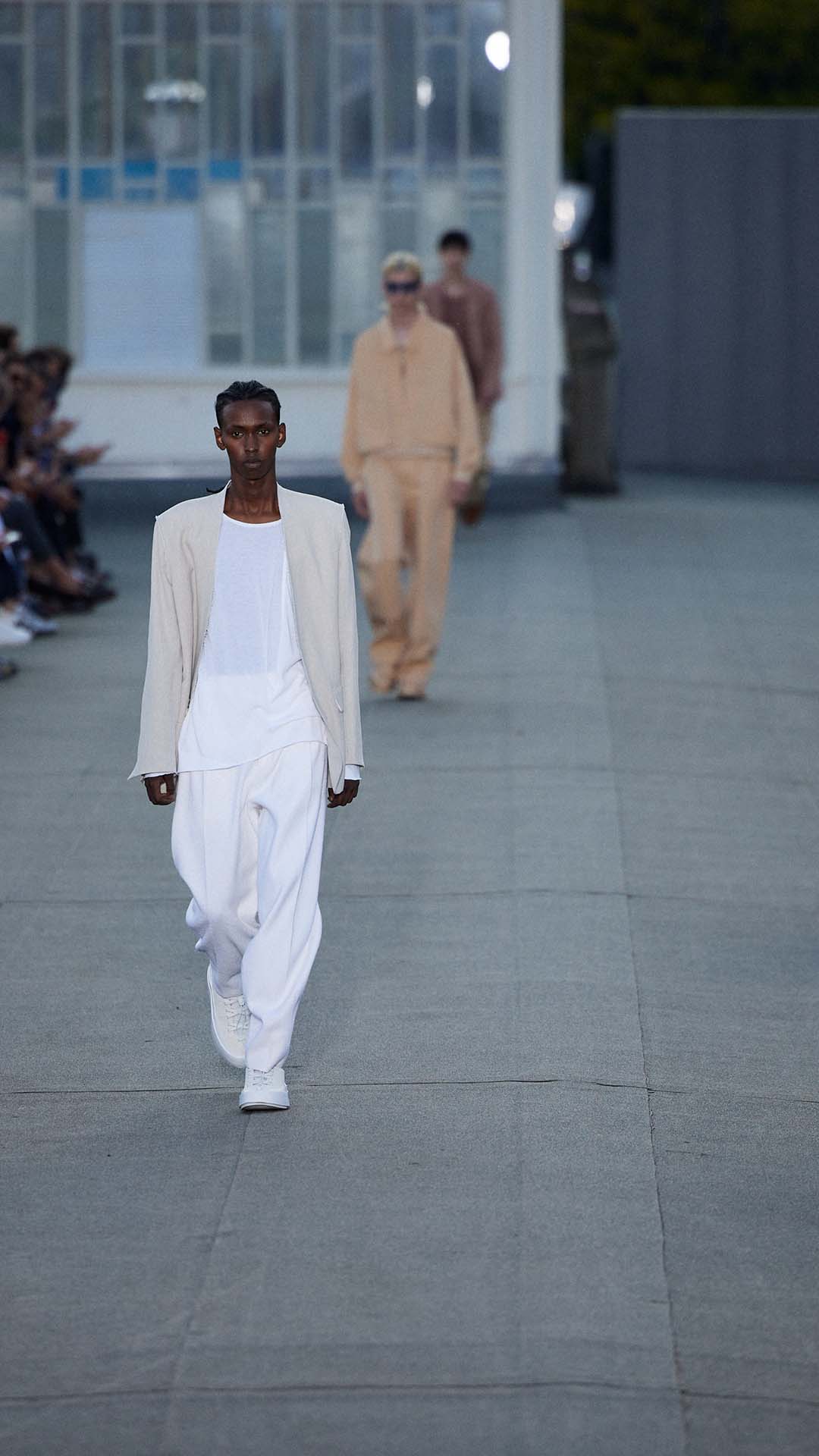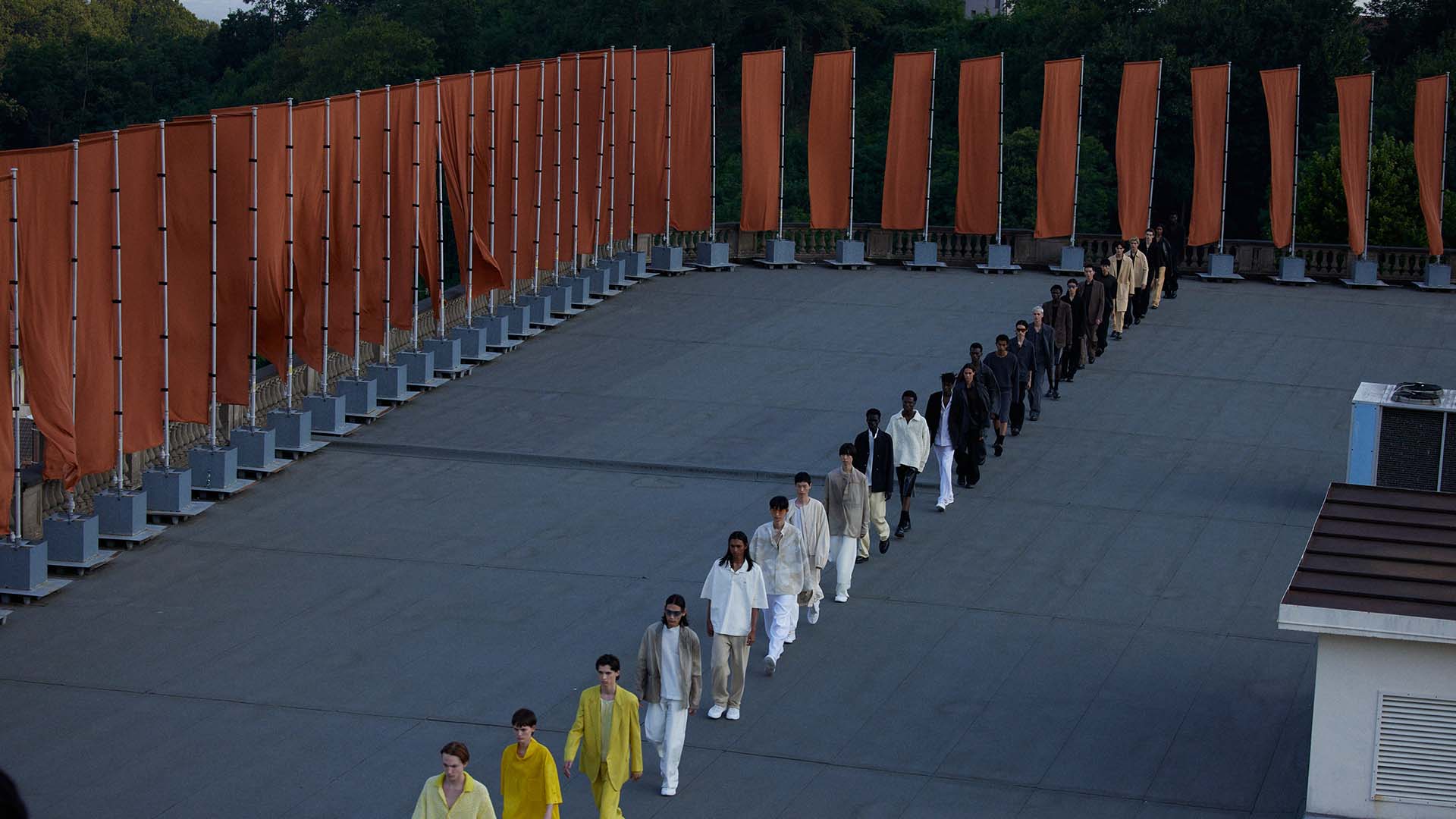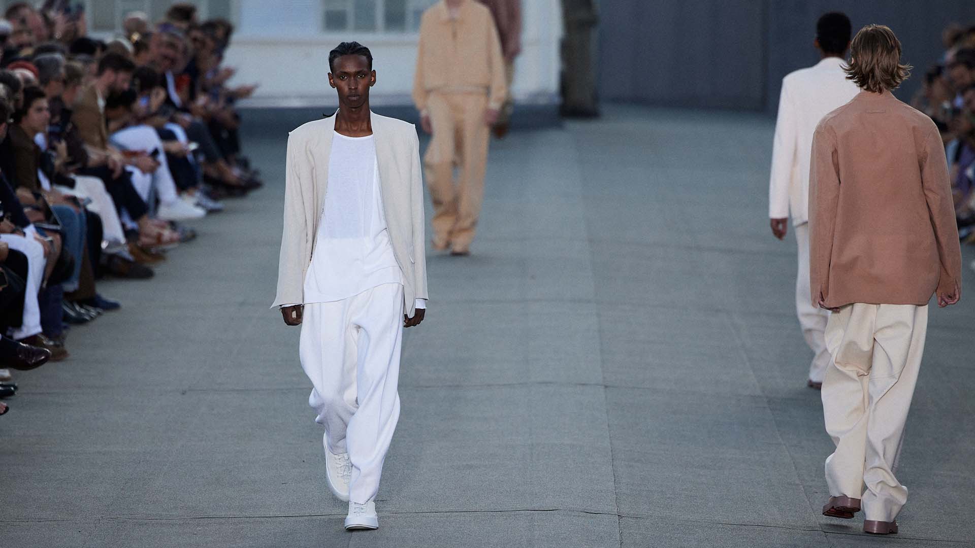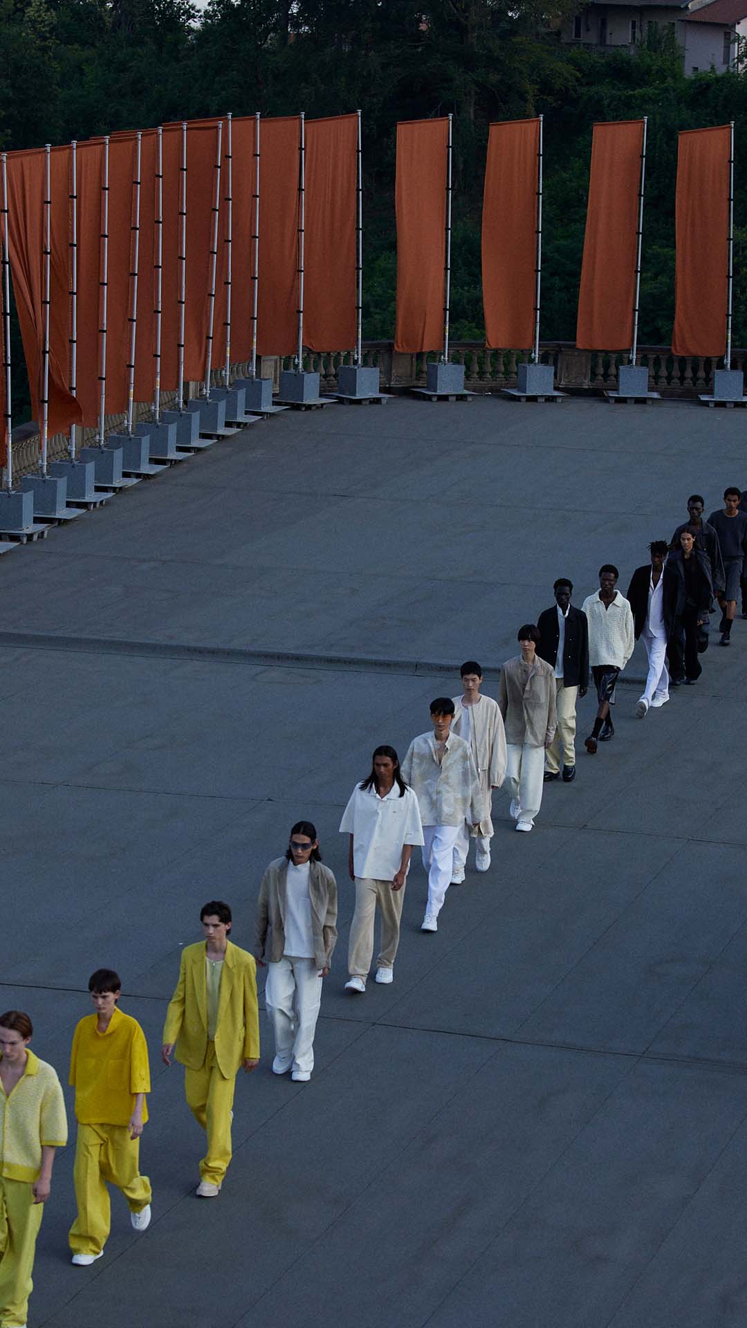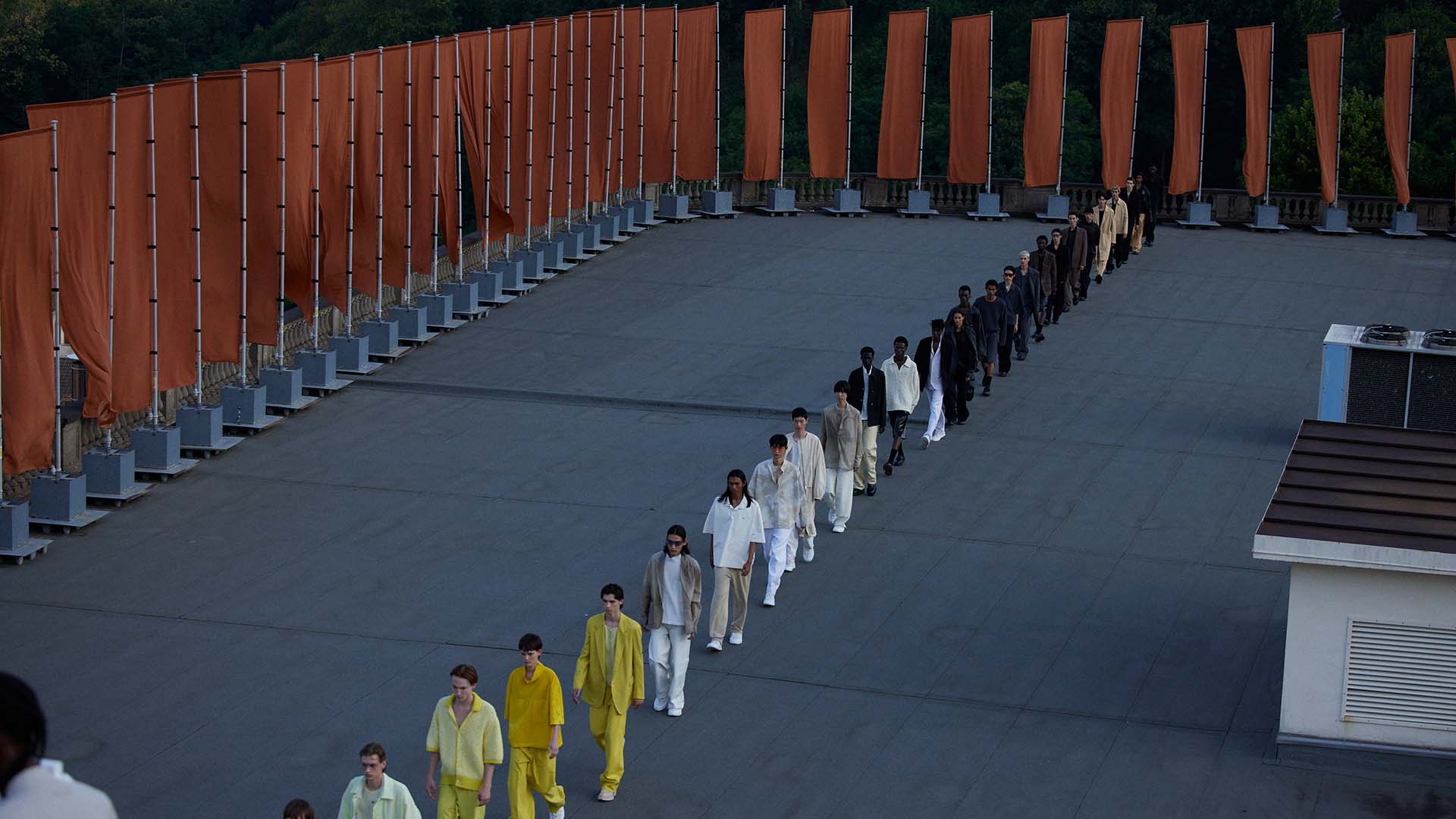 Le défilé printemps été 2023 de Zegna a été présenté sur le toit de la filature de laine historique Lanificio Zegna, et diffusé simultanément dans le monde entier, offrant au public un accès sans précédent au défilé grâce à plusieurs caméras permettant différentes vues autour de l’Oasi.