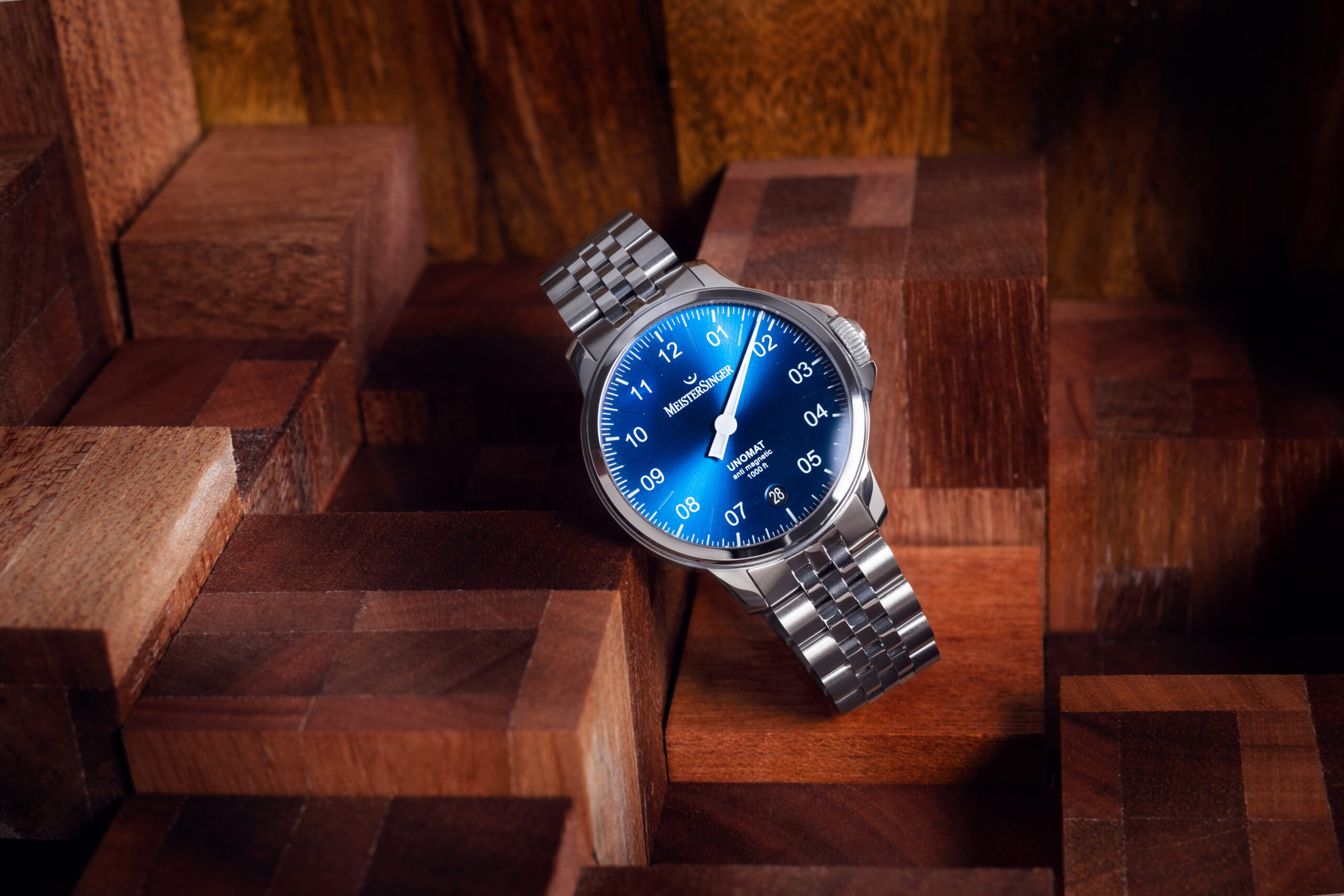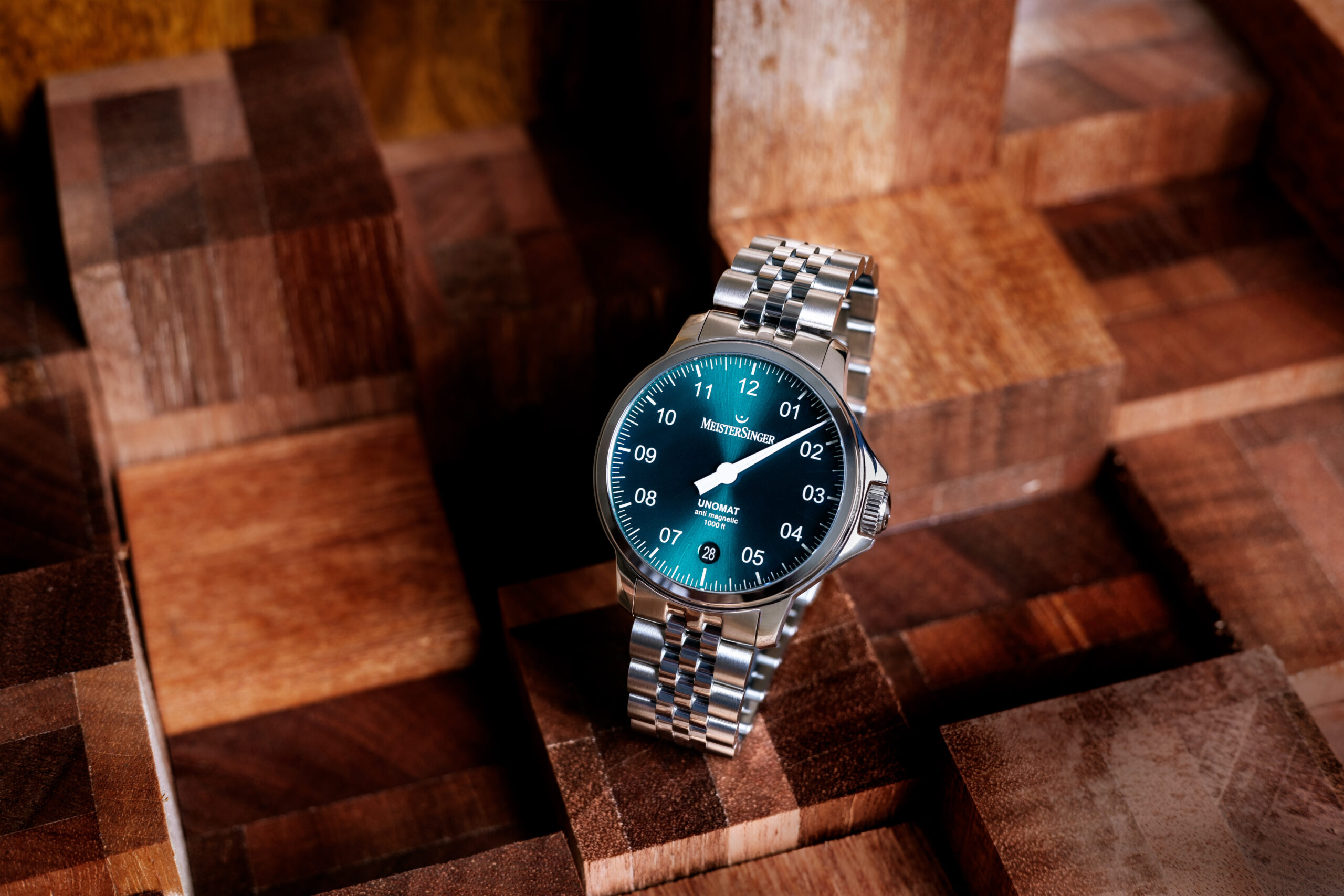 Offrant une étanchéité jusqu’à 300 mètres ainsi qu’une haute résistance aux champs magnétiques, l’Unomat est la plus sportive des montres MeisterSinger. Aujourd’hui, la marque horlogère allemande poursuit le développement de cette collection en dévoilant deux nouvelles couleurs de cadran. Bleu ou vert à la finition soleillée, ce garde-temps équipé d’un protège-couronne distinctif reste néanmoins fidèle à la signature de la maison : une aiguille unique pour indiquer l’heure et les minutes à l’image des premières horloges mécaniques apparues à la fin du Moyen Âge.