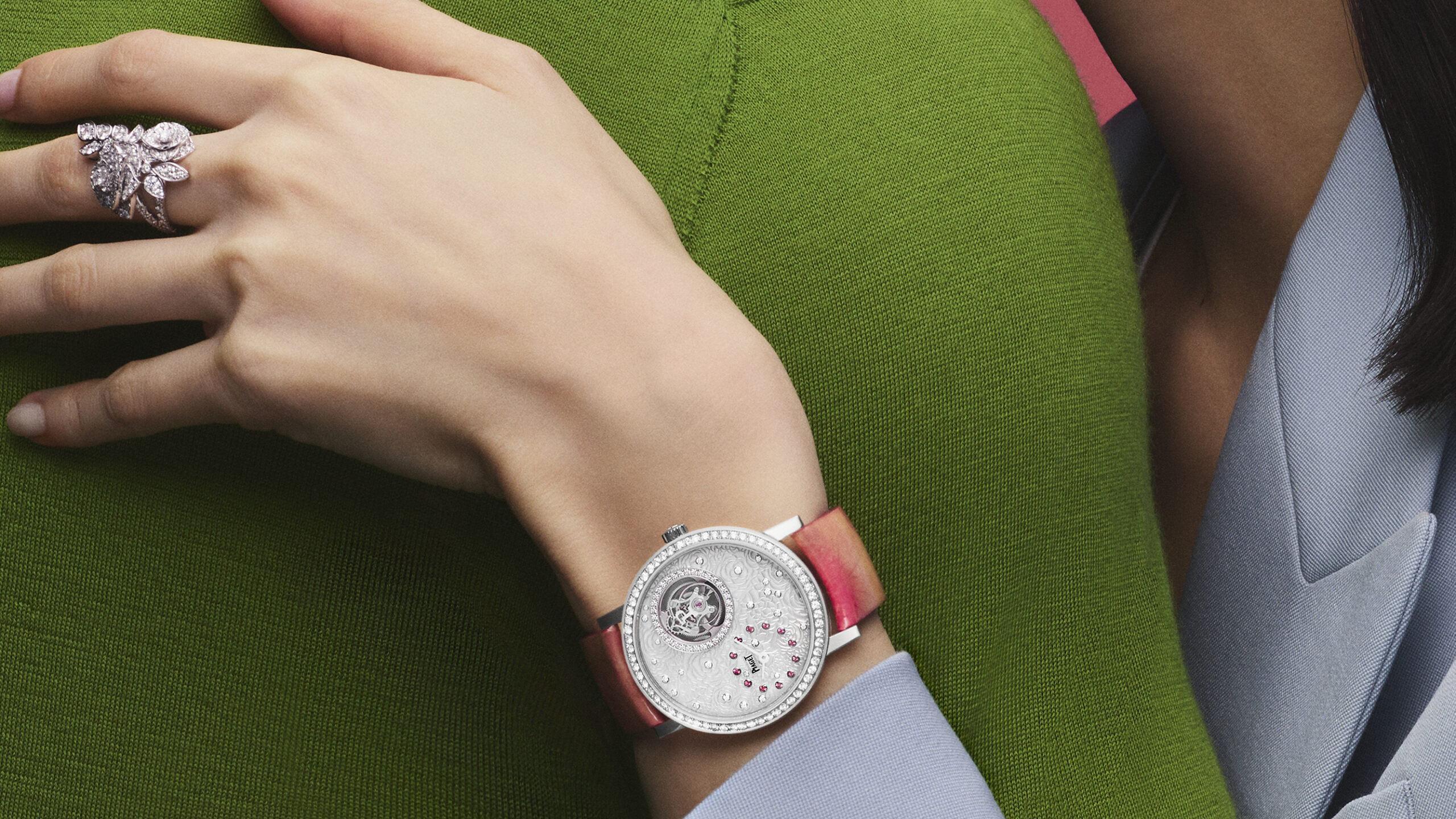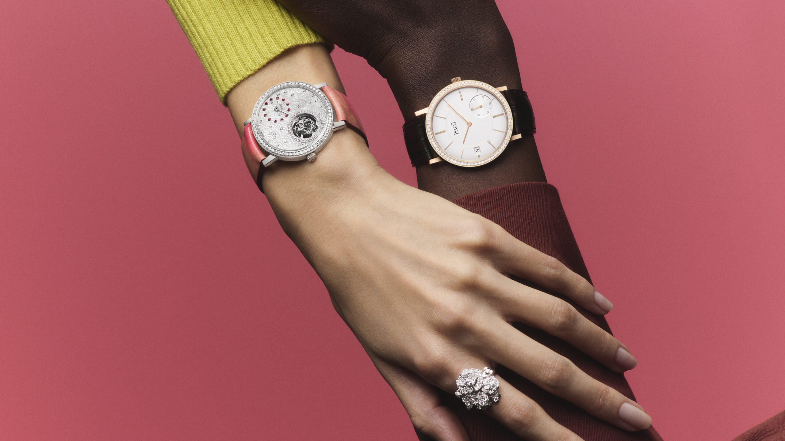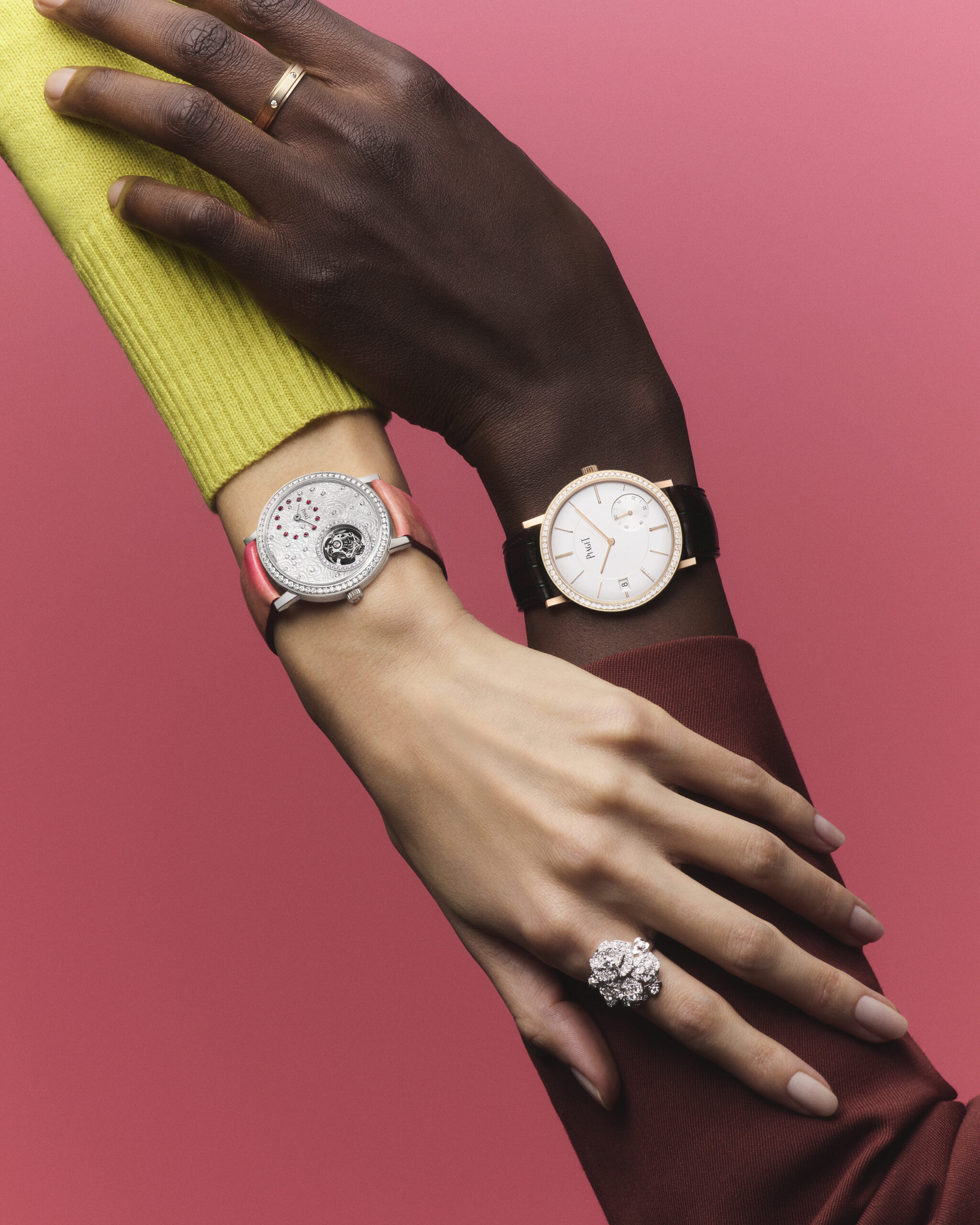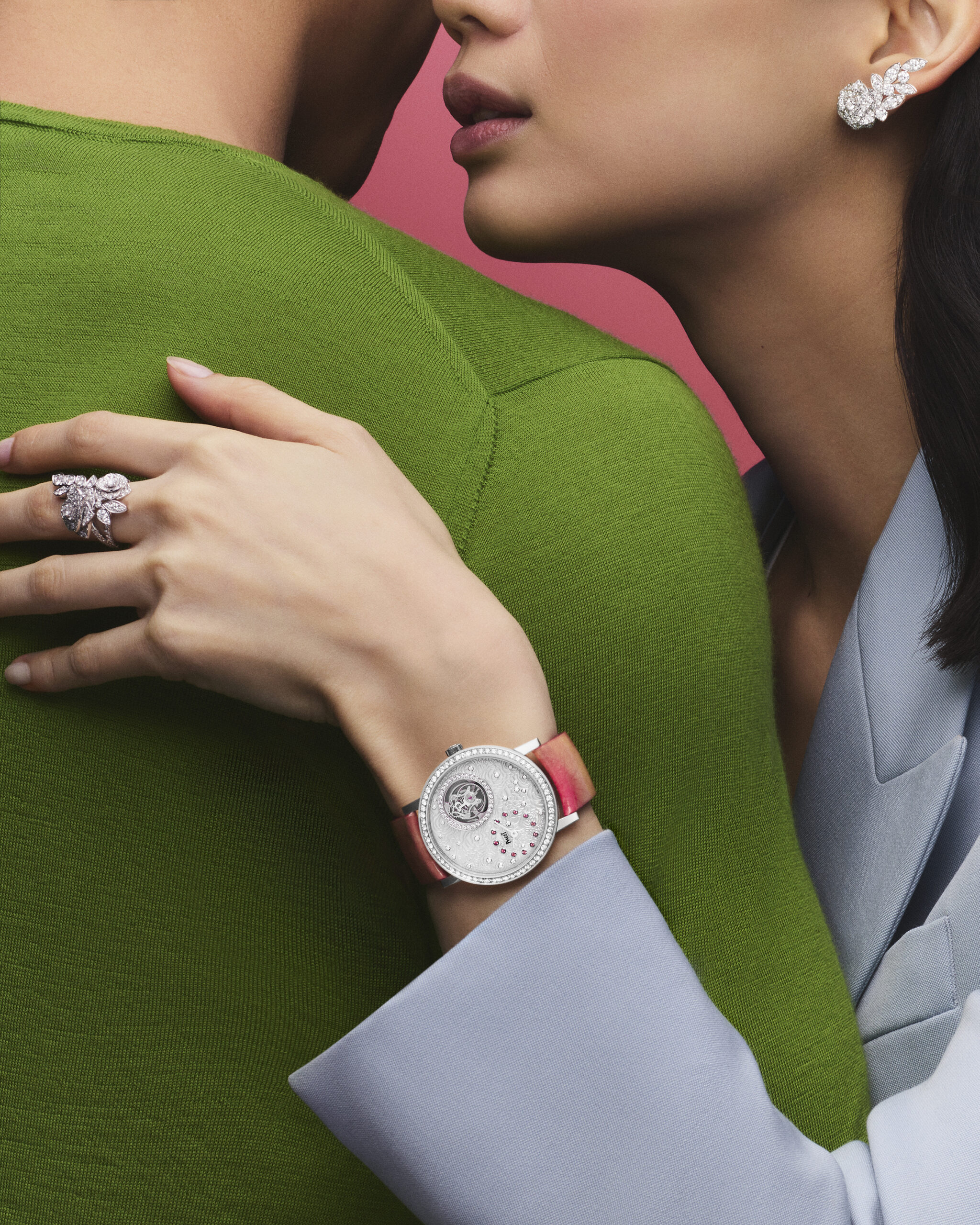 DES OREILLES AUX POIGNETS, DU DÉCOLLETÉ AUX DOIGTS… EN 2022, LA COLLECTION PIAGET ROSE BRILLE PLUS QUE JAMAIS, SECONDE APRÈS SECONDE.