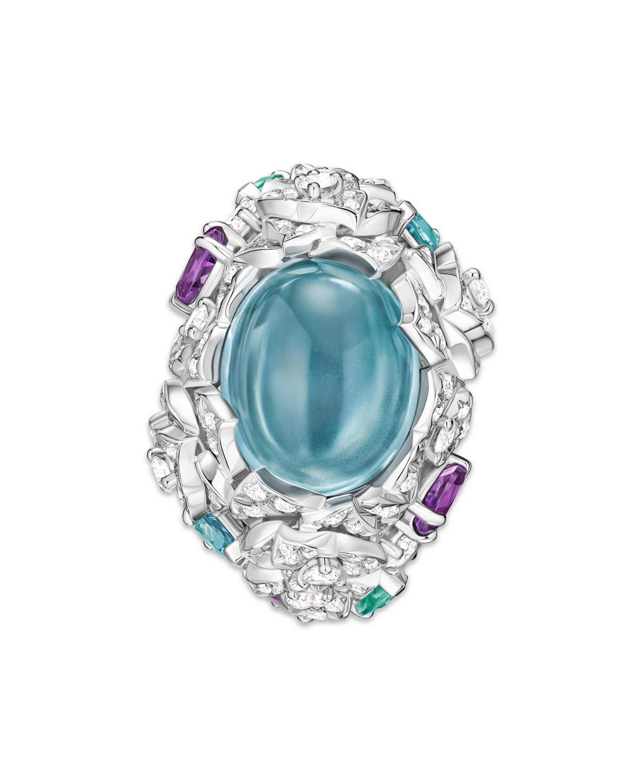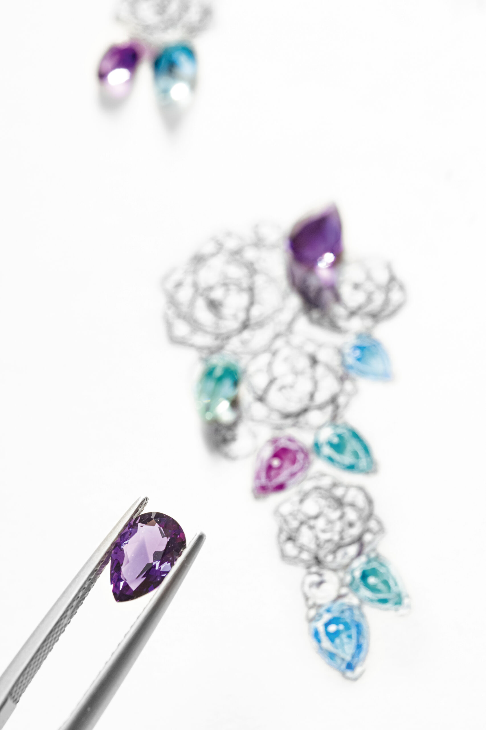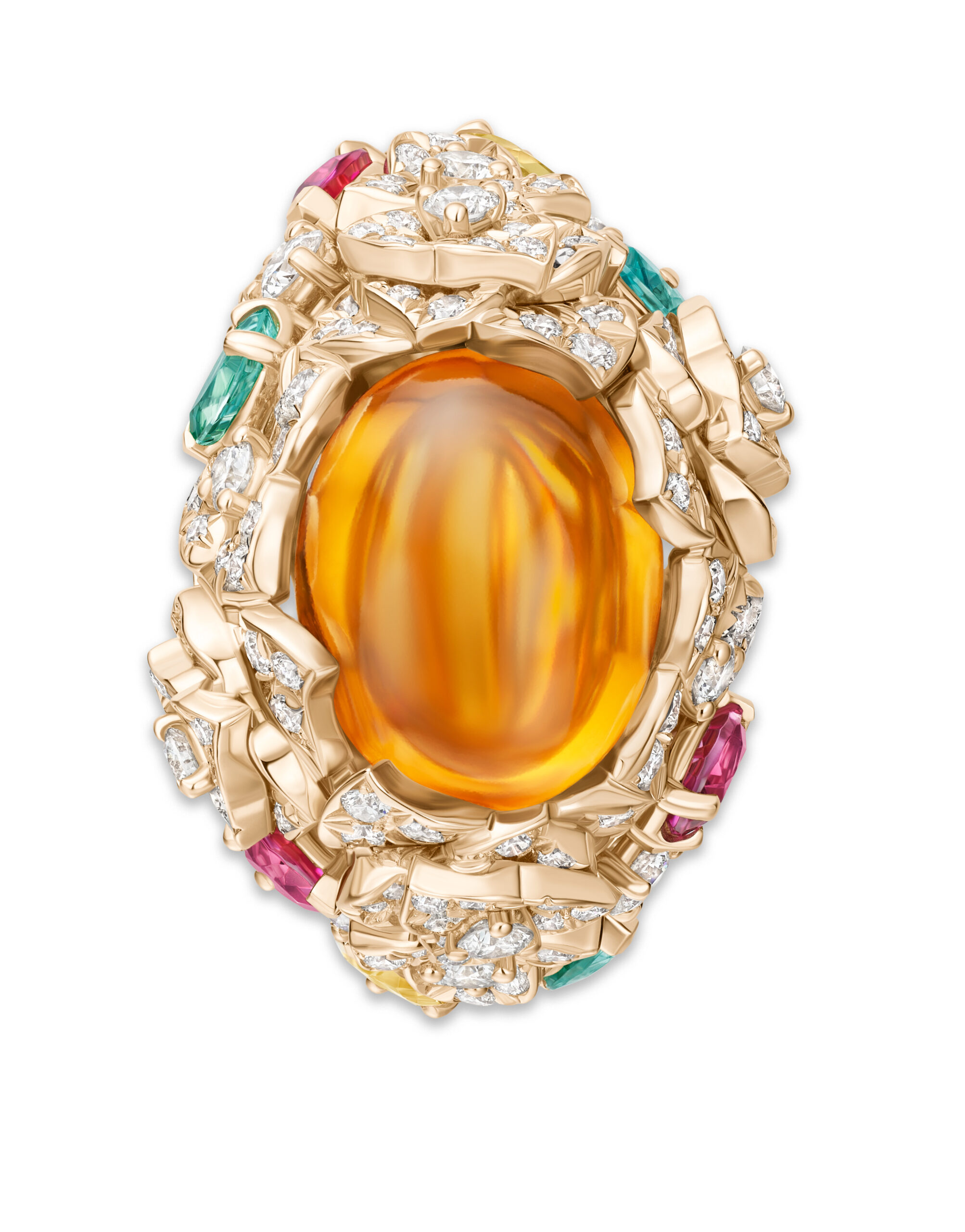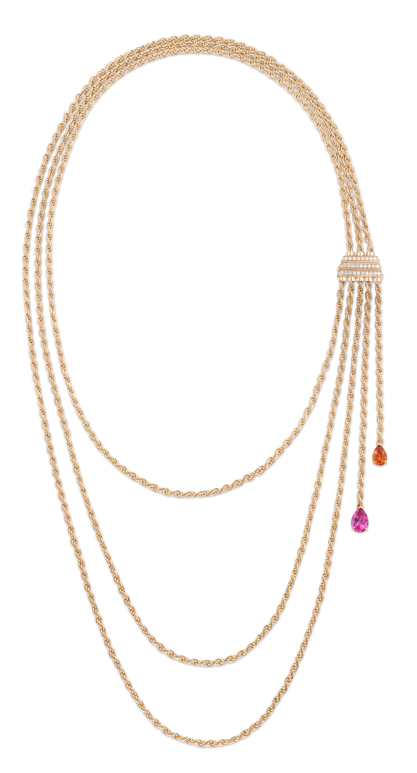 Yves Piaget est un homme de contrastes et de bon goût, aussi passionné pour les beaux-arts que pour l’artisanat et l’excellence. Il y a quelques décennies, il avait l’immense honneur de rassembler non seulement ses amis, mais également la Piaget Society tout entière autour de son art, autour d’une rose. Depuis lors, de la Côte-aux-Fées à la Côte d’Azur, précurseurs, artistes, penseurs, hédonistes hauts en couleur, et personnages en quête incessante de beauté et de plaisir, ont fait de la reine des fleurs le symbole du raffinement et de la joie. Pour fêter le 40e anniversaire de la rose Yves Piaget, la Maison fait briller la beauté pure et l’audace de la rose dans trois nouvelles parures. L’orfèvrerie de Piaget y est sublimée par des pierres colorées minutieusement sélectionnées par nos créateurs et nos gemmologues. Véritable foisonnement d’extravagance, la parure en or rose, composée d’une manchette d’oreille originale, d’une bague et d’un collier d’exception, contraste avec les deux autres parures inspirées par les délicates variations chromatiques du jardin d’Yves Piaget.