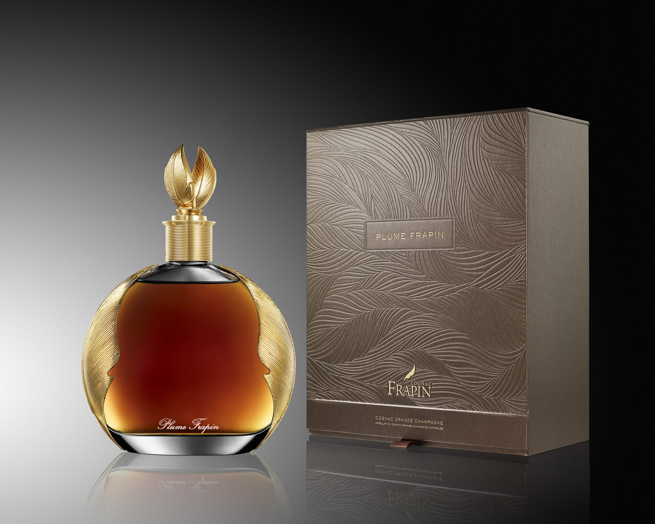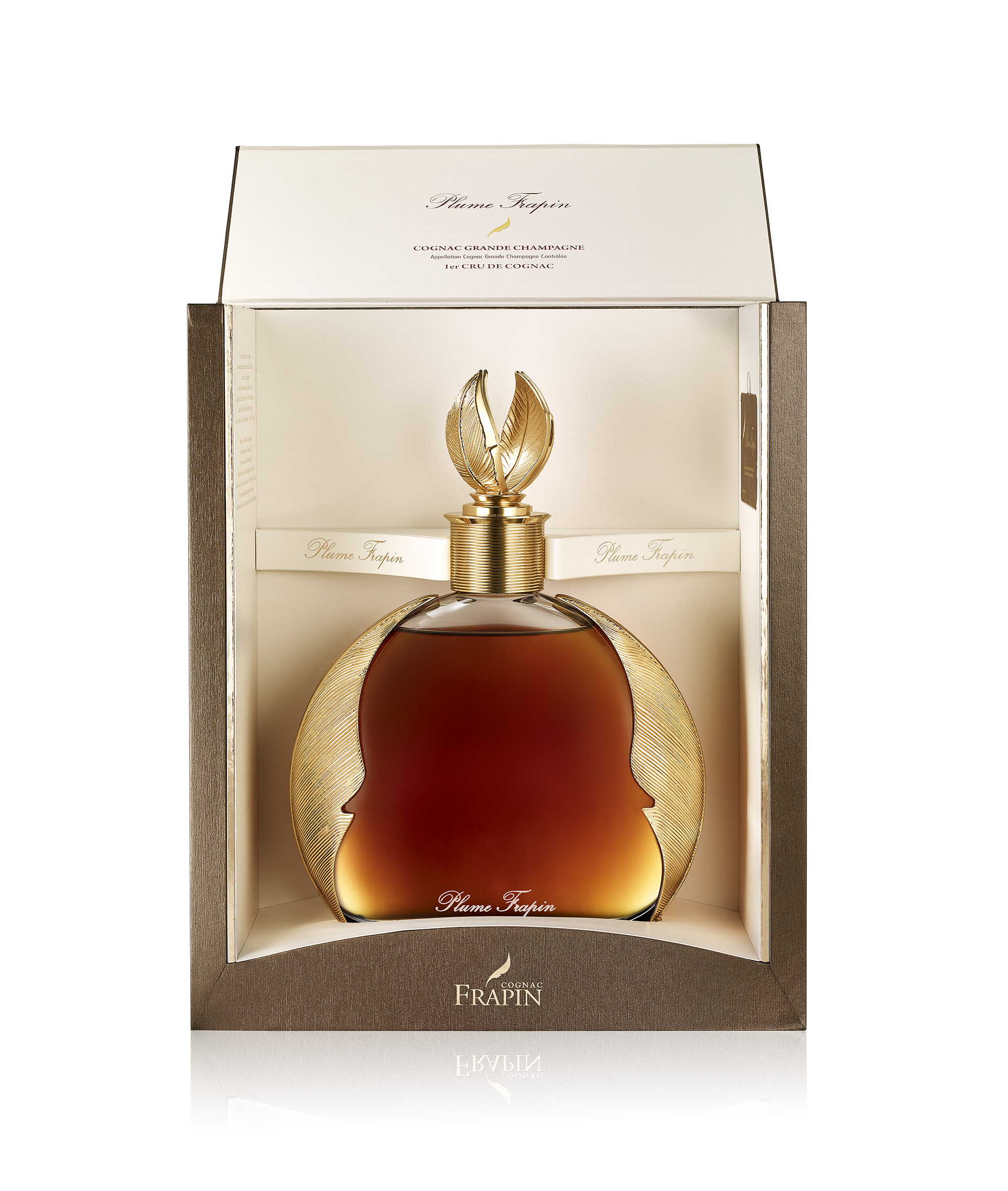 Dans les chais, à l’abri des regards et des convoitises, il est un lieu secret, jalousement gardé, appelé : Le Paradis ; dans lequel reposent les très vieilles eaux-de-vie de Grande Champagne élaborées par plusieurs générations de Frapin. Artisan d’une grammaire subtile, le Maître de Chais a puisé dans cette collection exceptionnelle pour composer la Plume Frapin. Hymne à la volupté, le cognac Plume Frapin repose sous les ors d’un flacon luxueux, une carafe signée des célèbres ateliers de l’Orfèvrerie d’Anjou.
