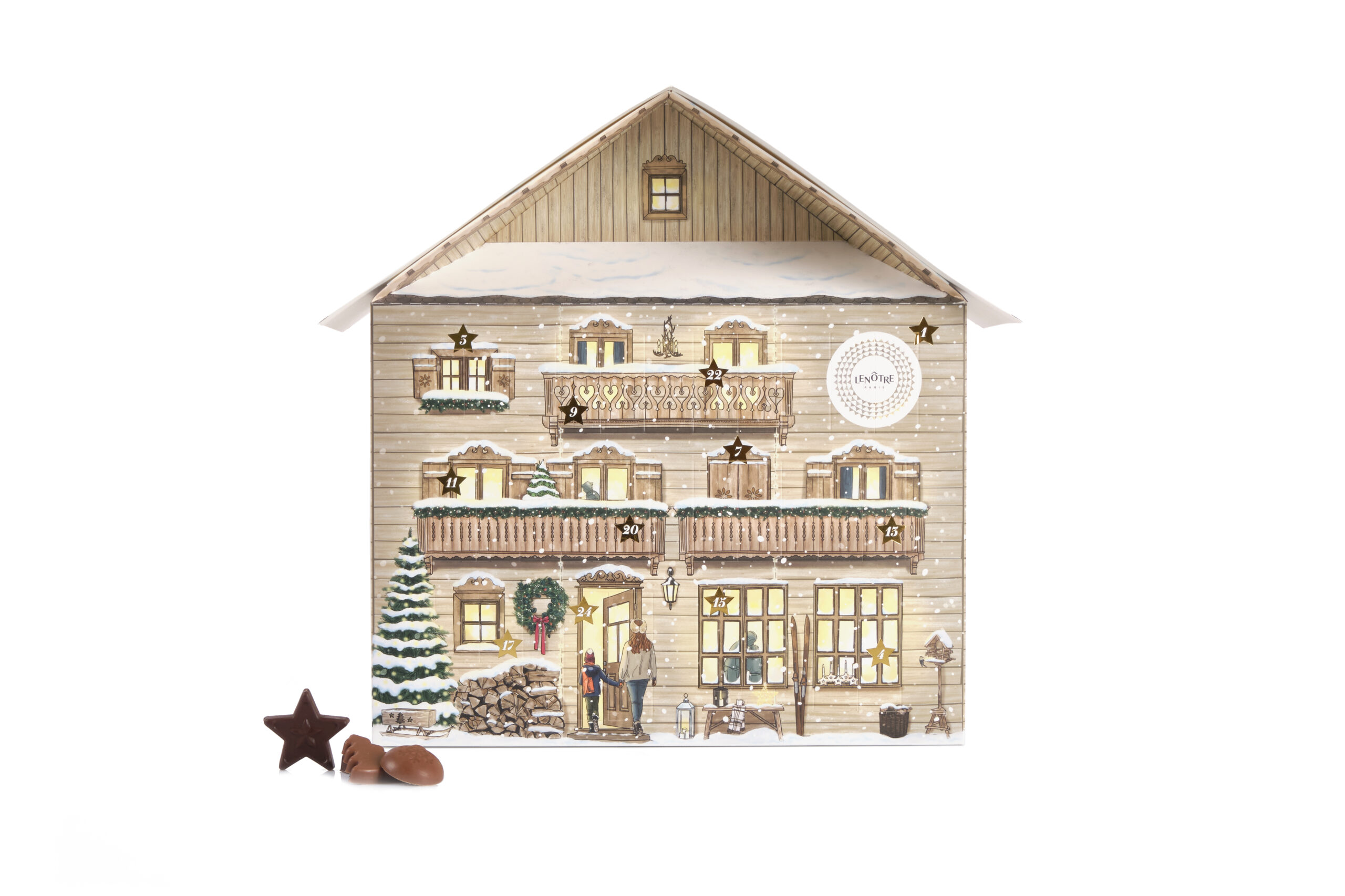 En attendant Noël, récompensez ainsi chaque jour votre patience avec une douceur chocolatée ou une confiserie aux ingrédients soigneusement choisis par les chefs Lenôtre ! Prenez le temps d’observer tous les merveilleux détails et de regarder les personnages par les fenêtres : certains apportent la touche finale au sapin de Noël, tandis que d’autres s’affairent en cuisine… C’est sûr, une grande fête se prépare au Chalet Lenôtre !