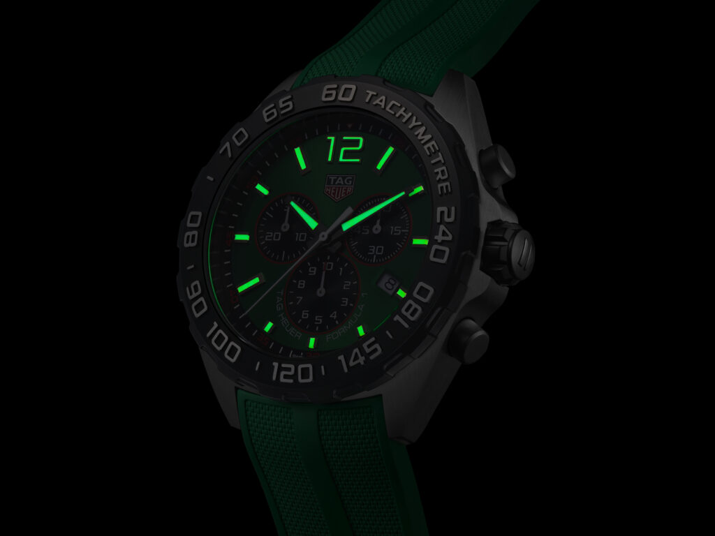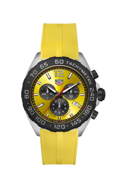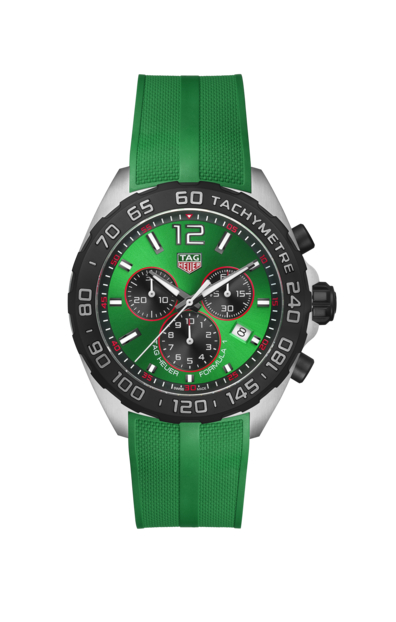 Ces nouveautés expriment avec fierté la passion de TAG Heuer pour la vitesse, l’adrénaline et le design athlétique. Depuis des décennies, le vert, le jaune et le rouge sont les couleurs emblématiques des sports mécaniques. Elles perpétuent l’héritage des livrées des voitures de course adoptées pendant l’entre-deux-guerres et qui identifiaient le pays d’origine d’un bolide, son pilote ou son écurie : le vert pour le British Racing, le rouge en hommage au Rosso Corsa, Or pour le jaune. Ces couleurs traditionnelles ont officiellement dominé les circuits jusque dans les années 1970, mais sont toujours omniprésentes aujourd’hui : sur les drapeaux, les feux, les marquages au sol, les uniformes des équipes, etc. elles composent la palette chromatique permanente de ce sport palpitant.