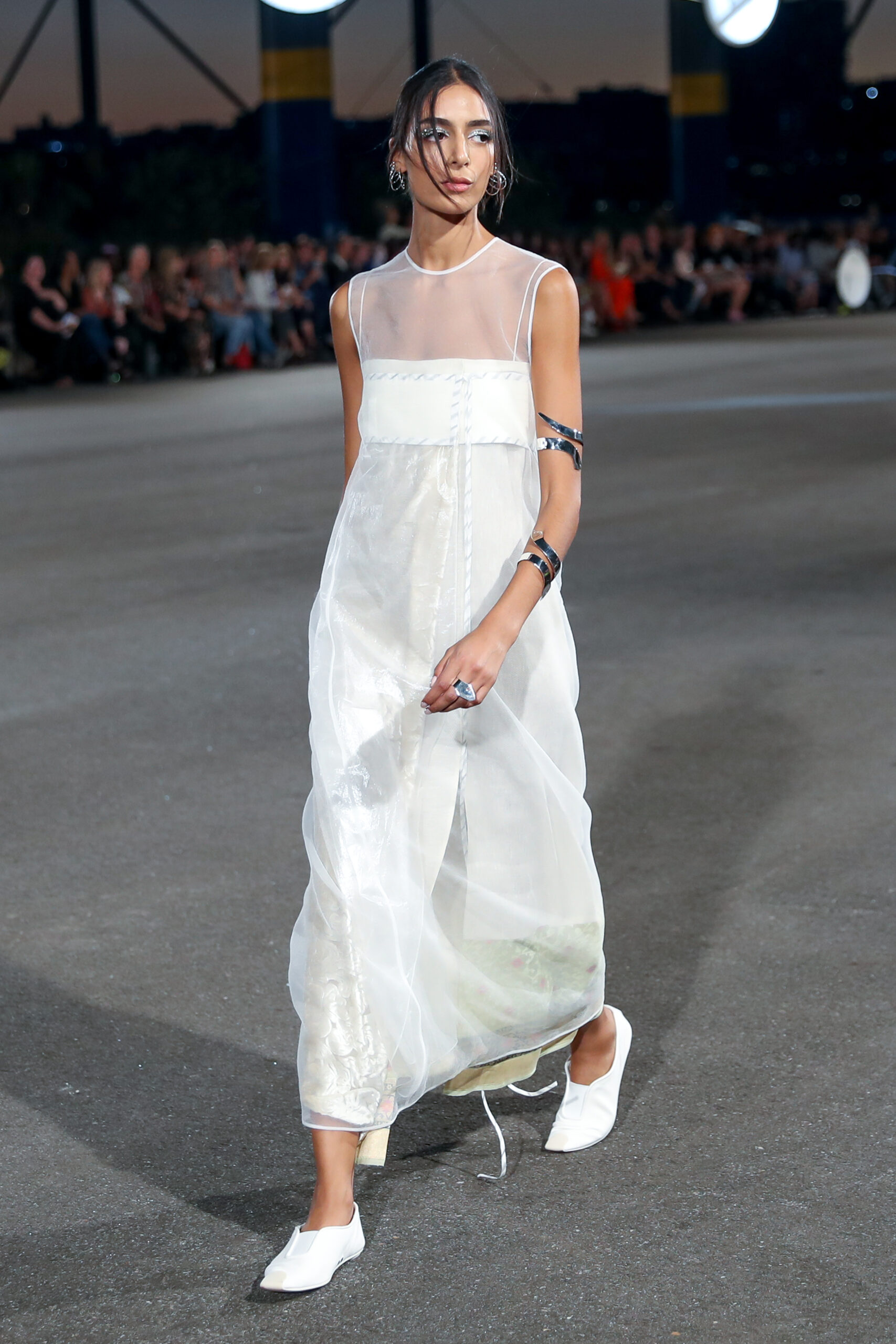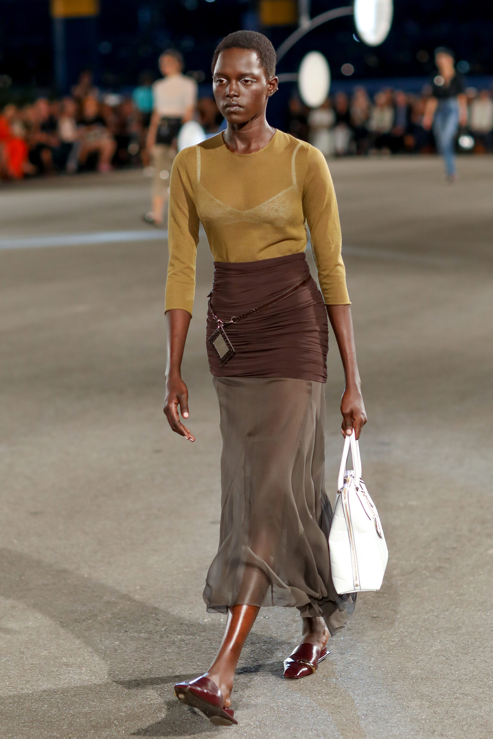« La collection printemps-été 2023 se définit par des instincts opposés : expérimenter librement et revenir aux sources. Des lignes épurées et une palette éthérée sont la toile de fond discrète d’un nouvel accent mis sur la matière et la silhouette. L’innovation des tissus luxueux conçus pour suivre les mouvements du corps – mailles ultrafines, techno satin, jerseys légers. Une exploration de la forme dans des silhouettes enveloppées, des touches sporty et l’opposition de coupes sculpturales sur des couches translucides. Le tout allégé par une touche d’étrangeté; le contraste des sacs à main aux couleurs acidulées, des chaussures surréalistes aux bagues d’orteils trompe l’œil et aux talons « inversés ». Cette collection est personnelle et intuitive, puisant dans mes souvenirs des années 90 lorsque j’ai déménagé à New York. Je voulais explorer mes signatures au travers d’une nouvelle perspective en reflétant ce qui semble moderne aujourd’hui. |