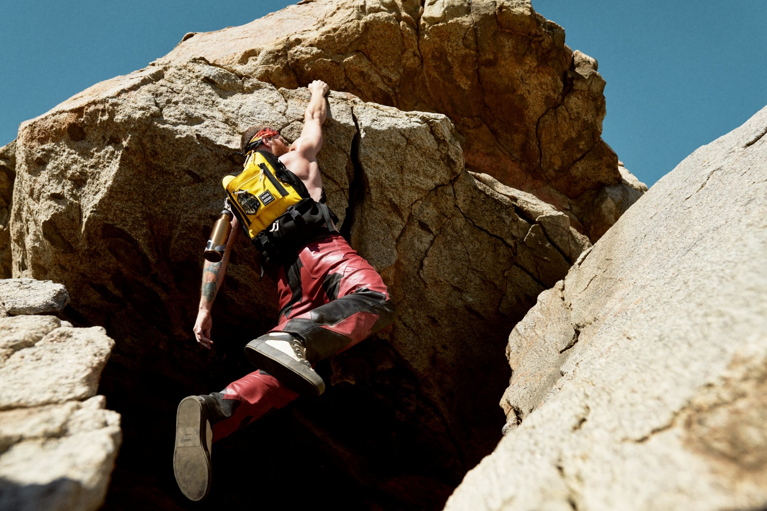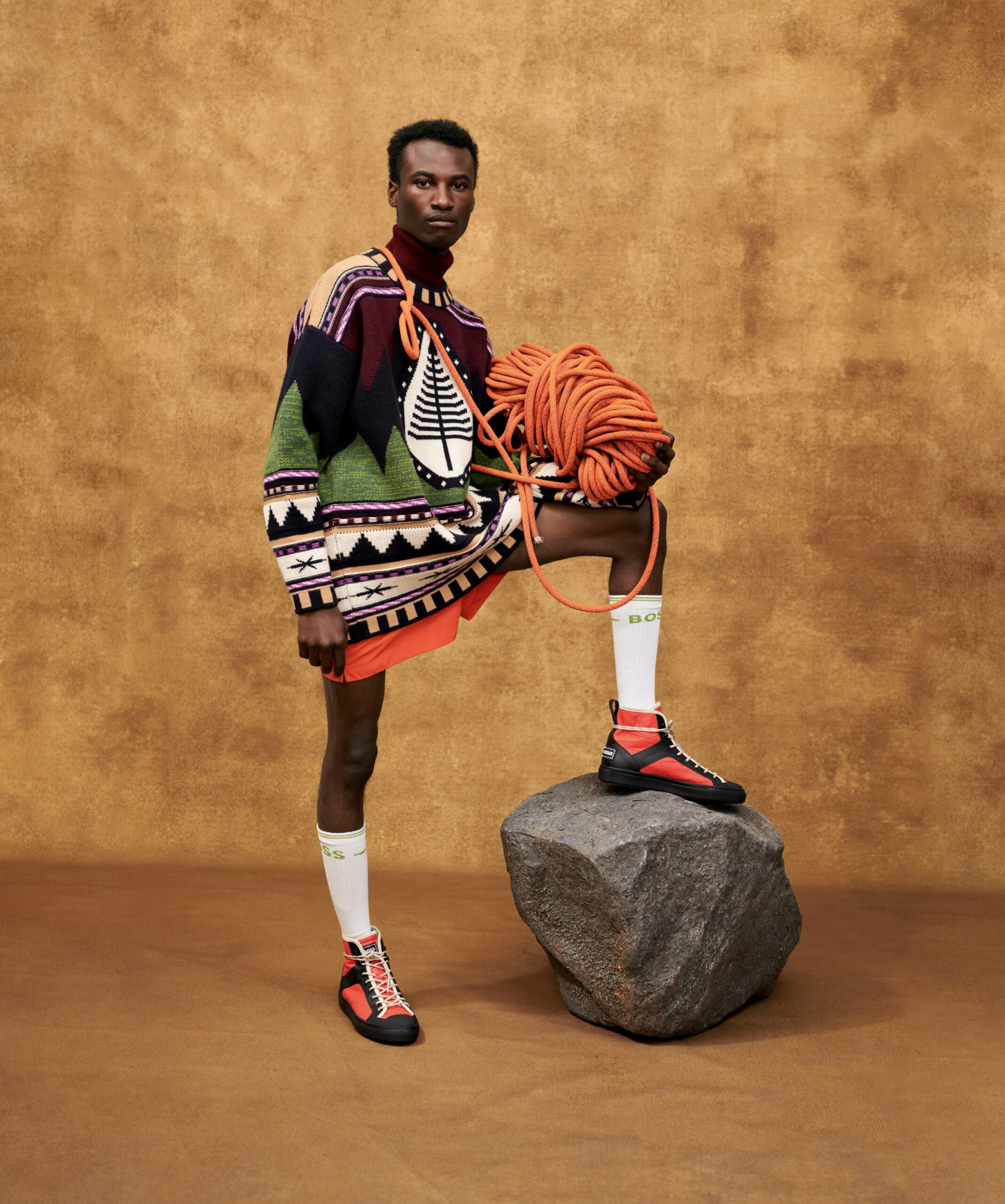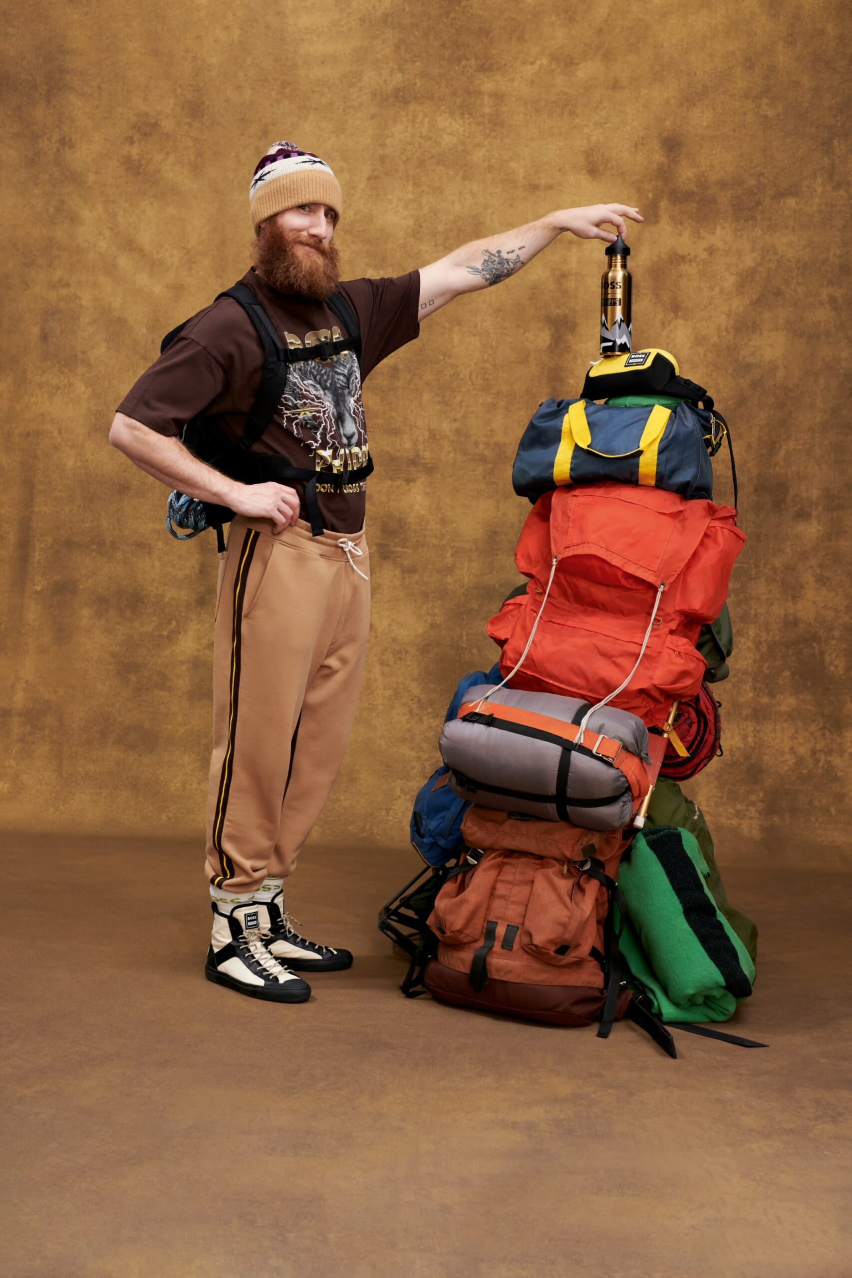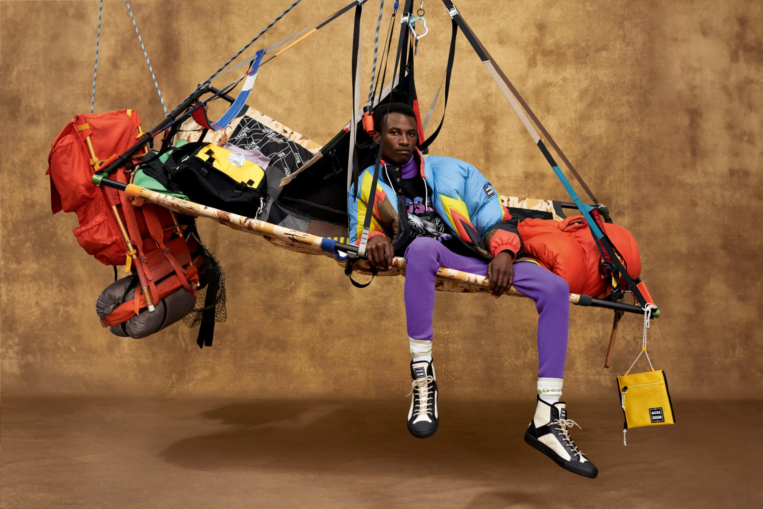 Enfin, des pièces « Responsible » viennent compléter la collection BOSS x PHIPPS, avec des tee-shirts et des écharpes en coton biologique, des baskets montantes développées à partir de fibres de feuilles d’ananas, et un sac à dos coloré en polyester recyclé certifié.