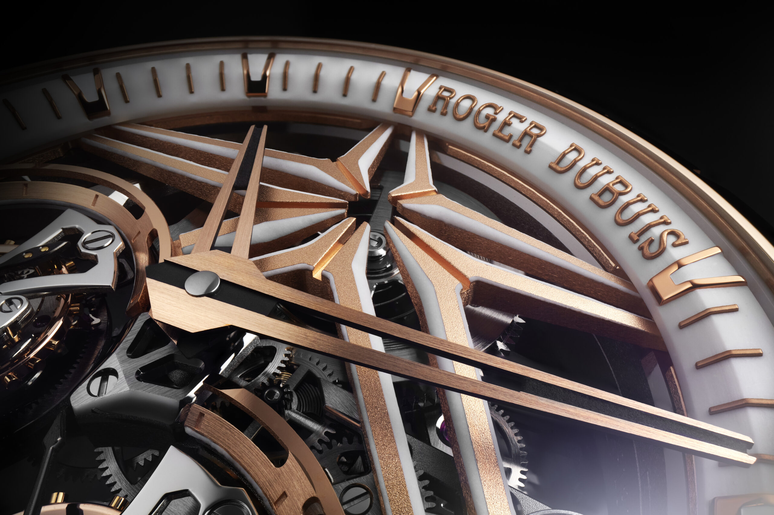 Les lignes nettes et épurées de la boîte de 45 mm et du mouvement signent la forte identité visuelle du modèle, et lui confèrent une allure plus affûtée. Le calibre gagne également en transparence et en relief, grâce à l’évolution de l’étoile Roger Dubuis qui s’élève en apesanteur au-dessus du barillet. Cette esthétique dynamique est estampillée du Poinçon de Genève, l’une des certifications les plus exigeantes de la haute horlogerie, qui requiert que chaque élément de la montre soit décoré à la main.