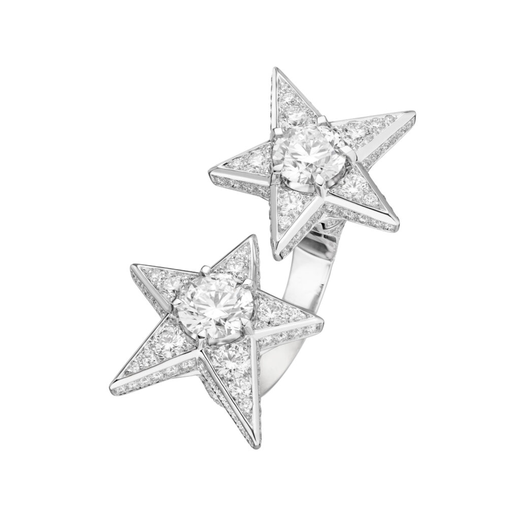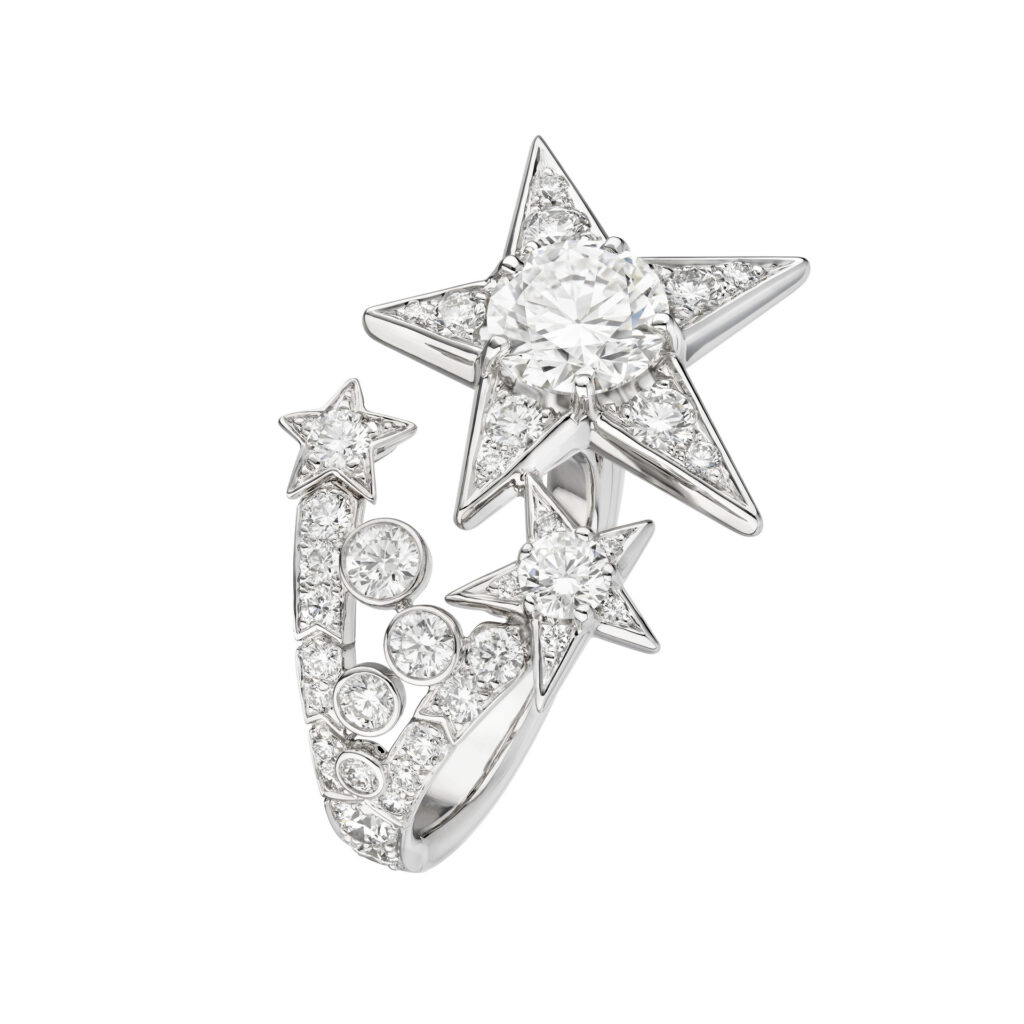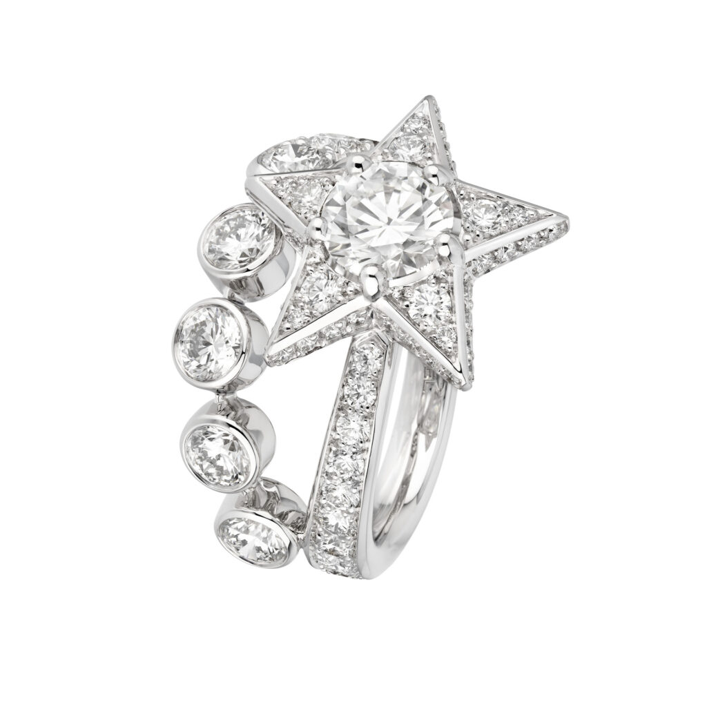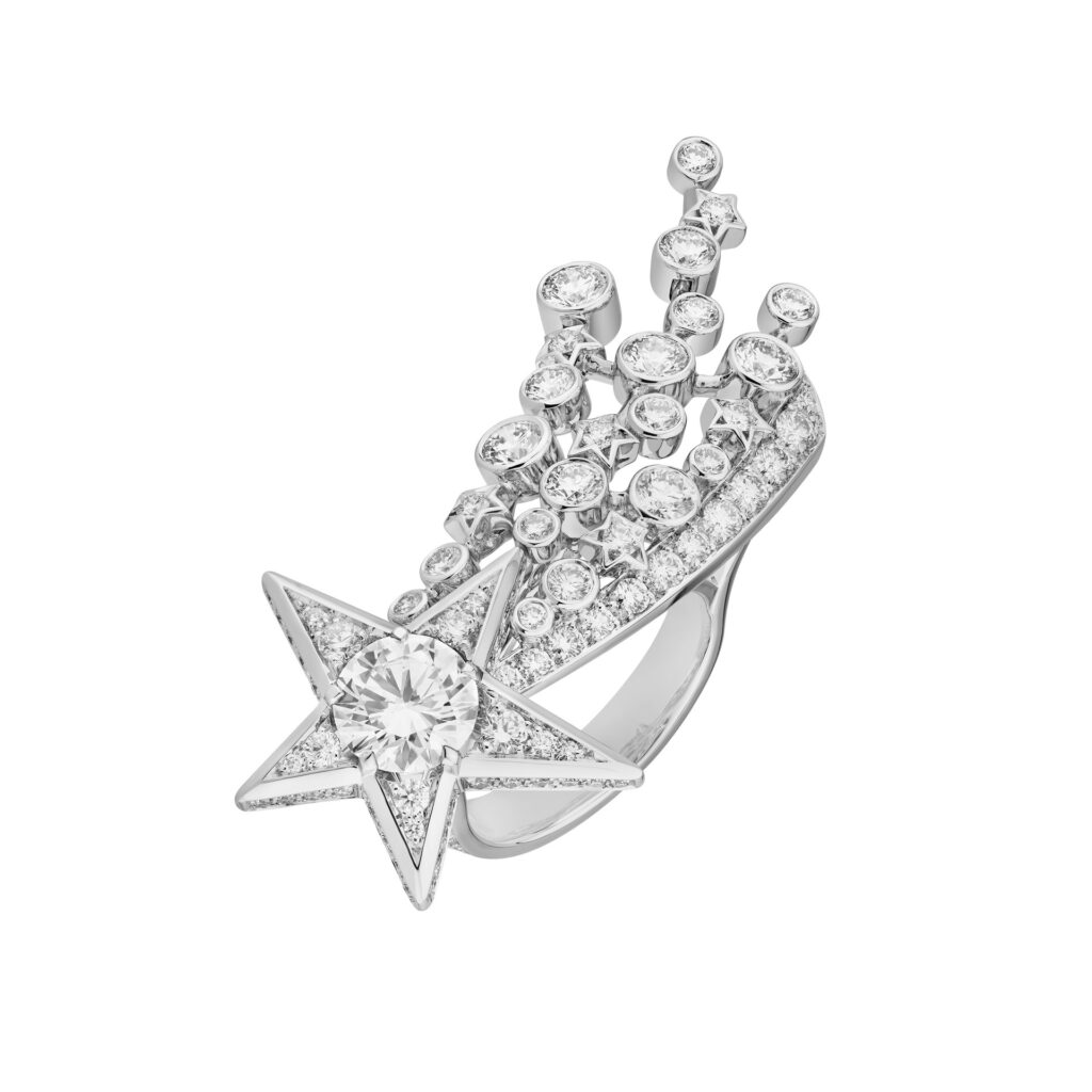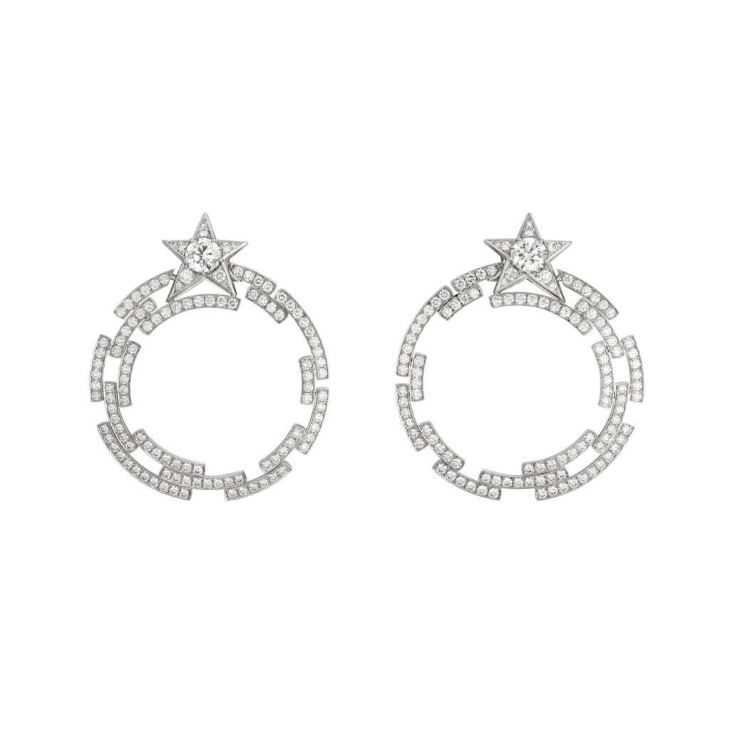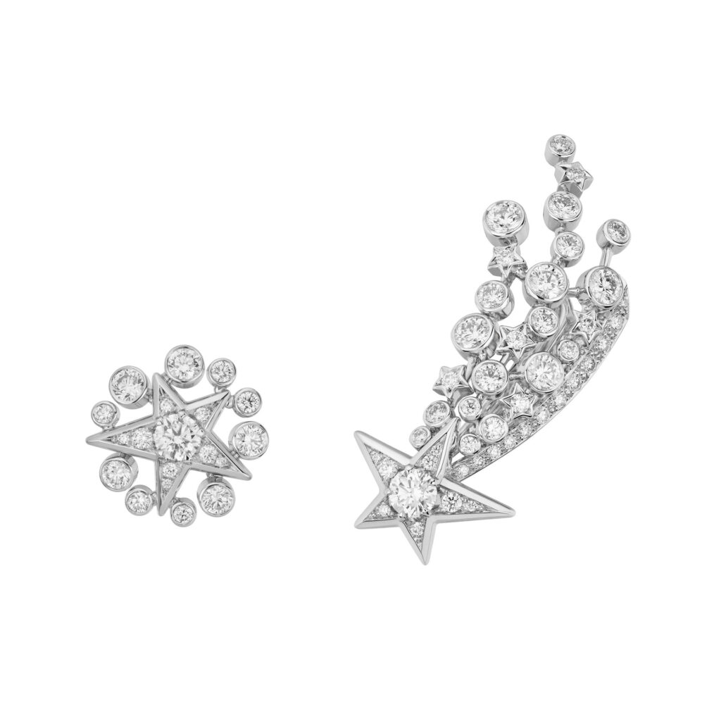 Reprenant l’épure du bracelet Harmonie de « Bijoux de Diamants », le collier, le bracelet, les boucles d’oreille et la bague « Comète Harmonie » sont des étoiles filantes, les seules en noir et blanc si chers à Mademoiselle Chanel.