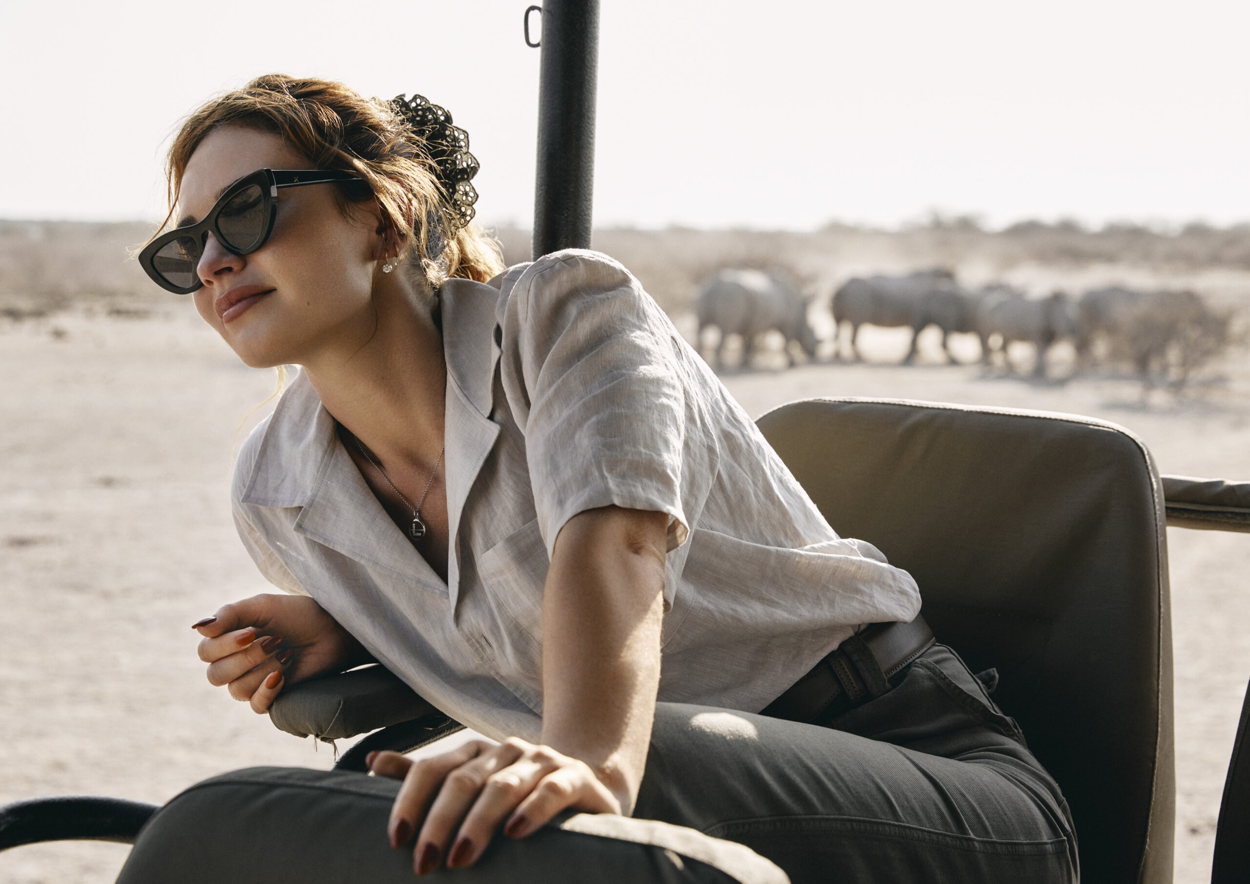 Lily James a commencé par quatre jours de safari dans la réserve de Selinda, une zone animalière exceptionnelle abritant des milliers d’éléphants et sa célèbre troupe de lions. Puis, elle a visité le parc animalier d’Orapa. Représentant un des huit sites de la Route du diamant De Beers totalisant 200 000 hectares (2,5 fois la superficie de New York), il illustre directement le résultat des efforts de l’industrie du diamant naturel pour protéger les espèces animales en voie de disparition.