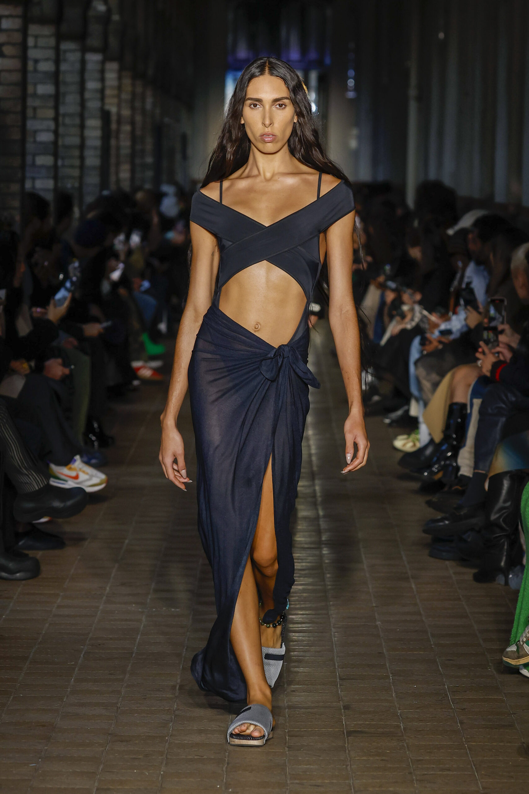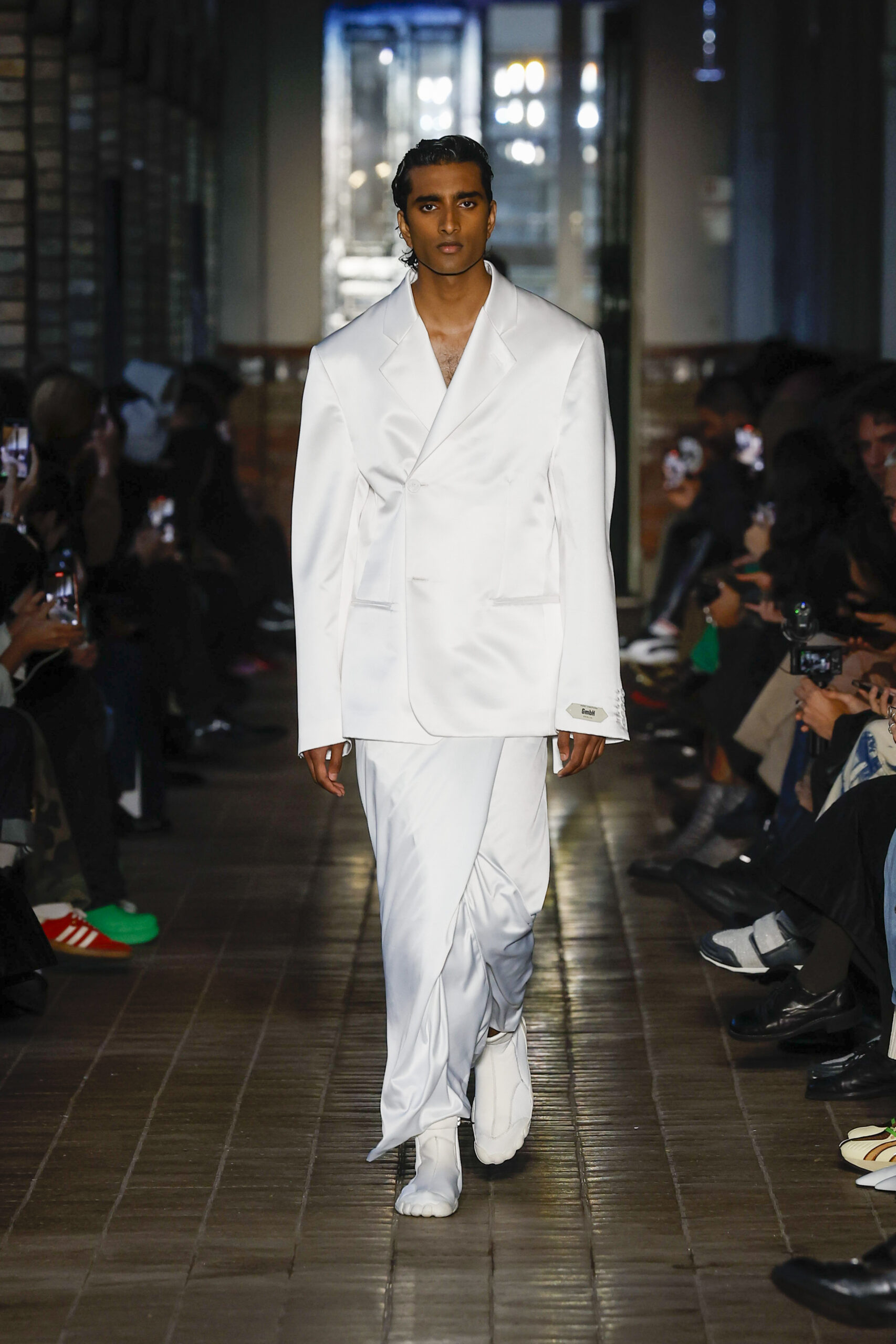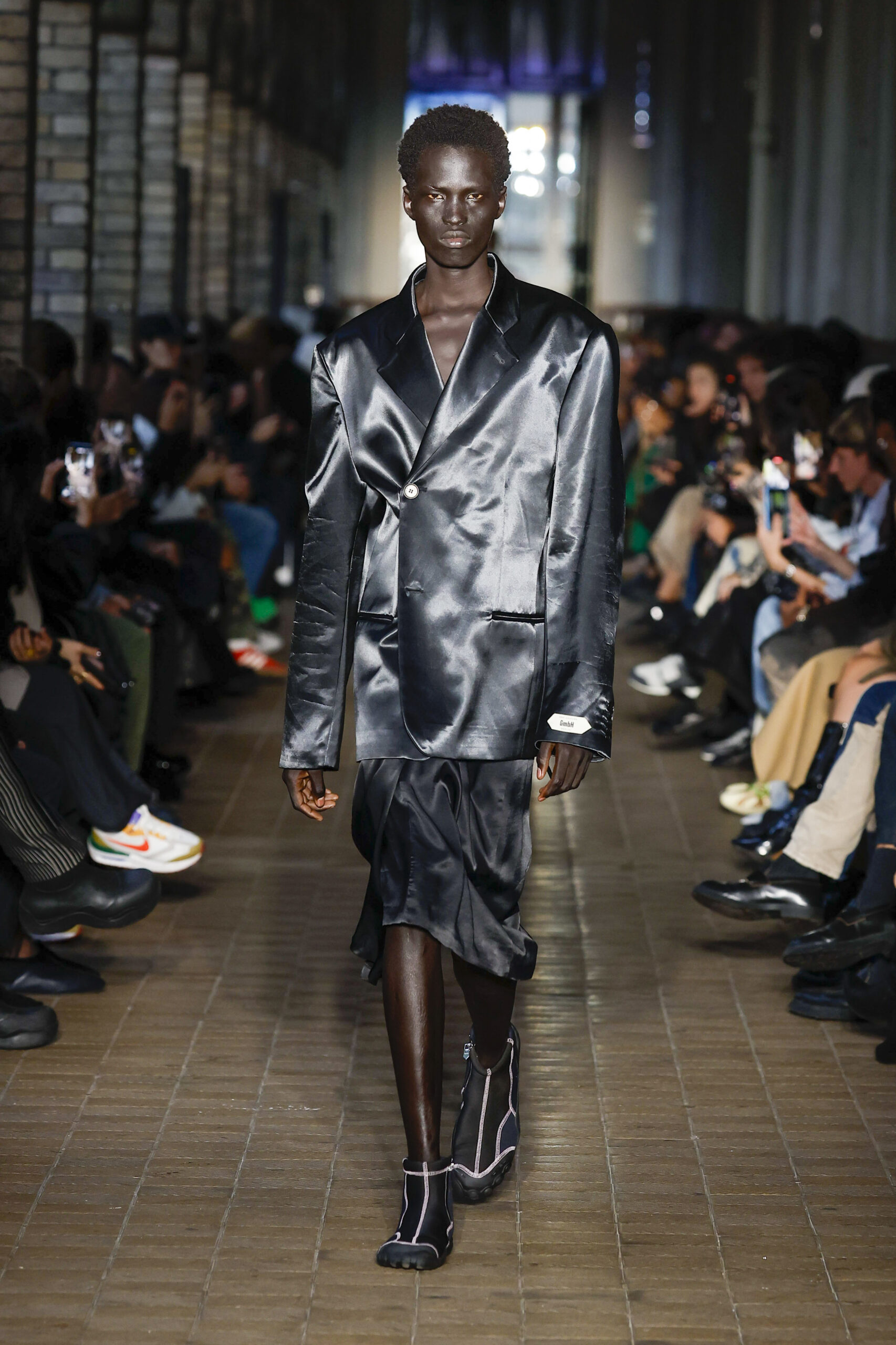 Cette collection préfigure notre nouvelle collaboration avec la marque de chaussures Scholl. L’inventeur du célèbre sabot en bois (The Pescura), fabriqué à la main en Italie, lance avec GmbH une gamme de sandales à dessus en maille technique pour la collection SS23.