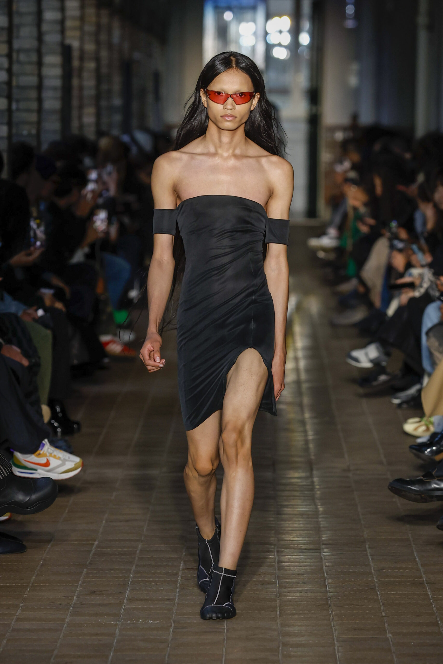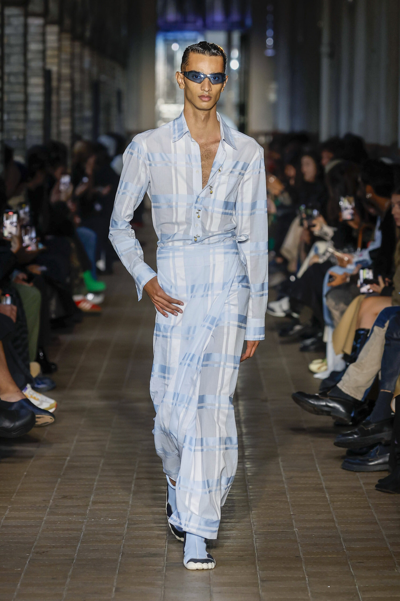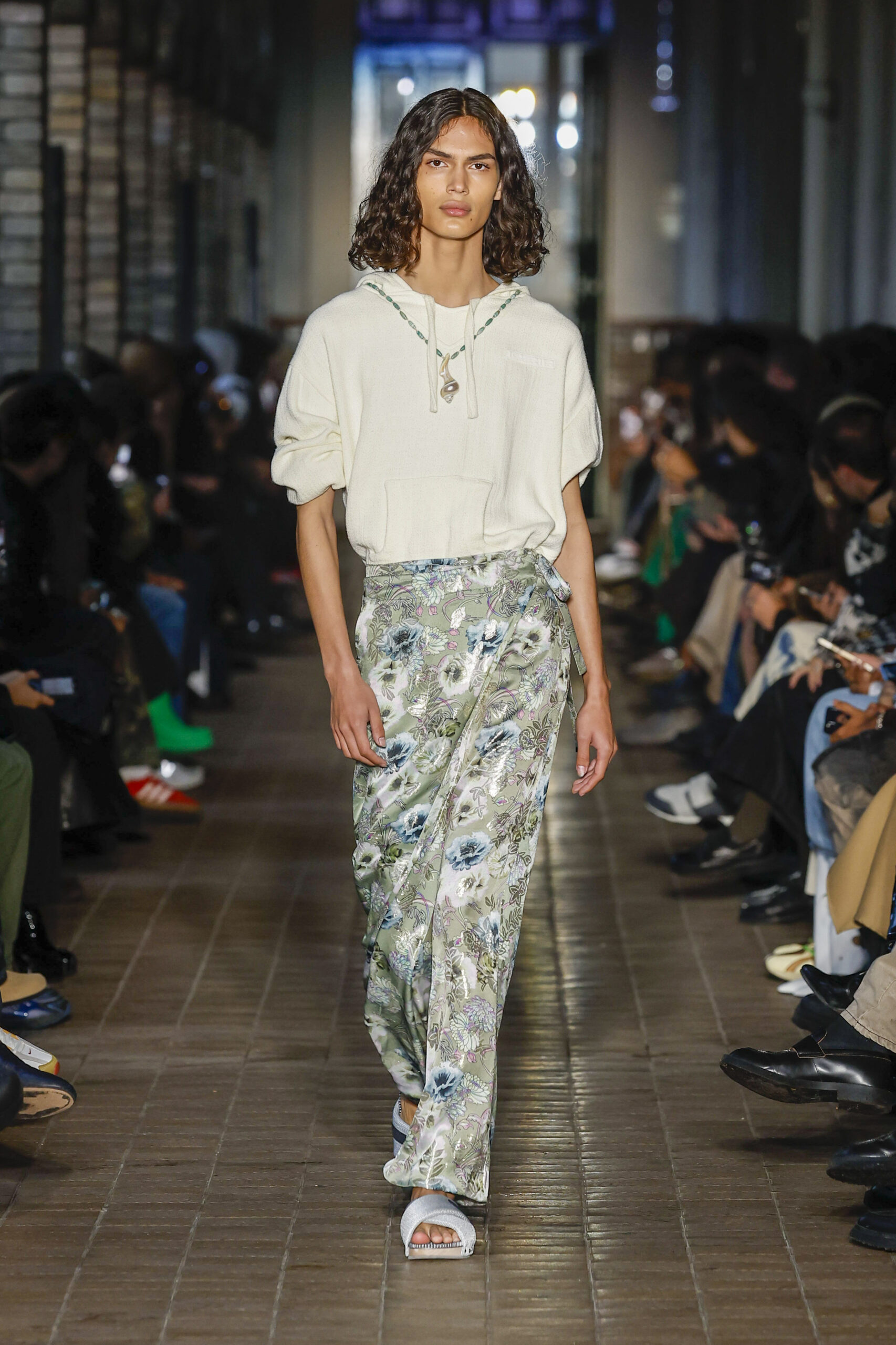 Cette collection préfigure notre nouvelle collaboration avec la marque de chaussures Scholl. L’inventeur du célèbre sabot en bois (The Pescura), fabriqué à la main en Italie, lance avec GmbH une gamme de sandales à dessus en maille technique pour la collection SS23.