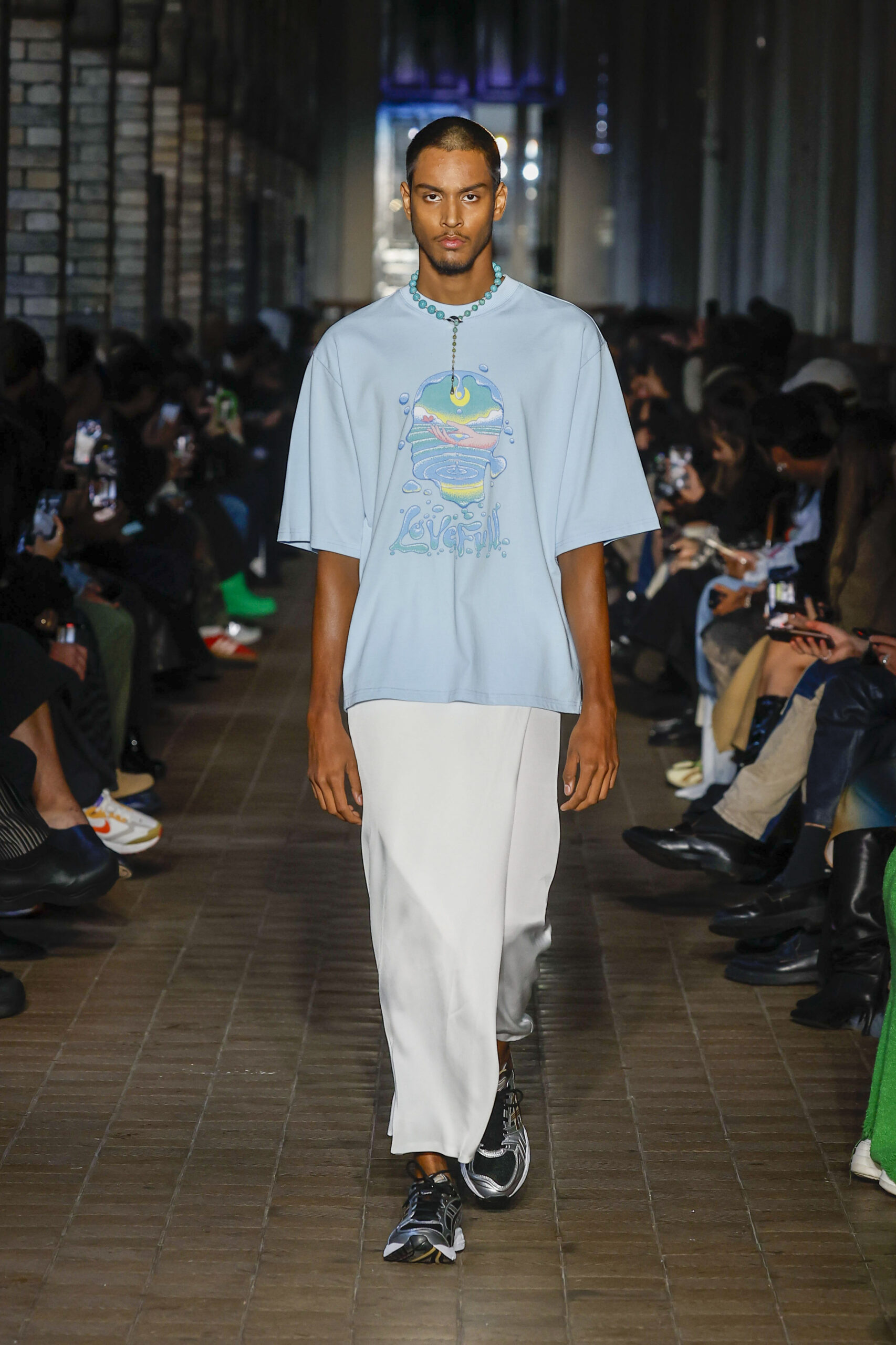 Pour la collection ‘Ghazal’ du Printemps 2023, nous avons collaboré avec Muhammad Fatchurofi, connu sous le nom de Rofi, un artiste indonésien basé à Java, pour les imprimés saisonniers. Nous avons été attirés par ses dessins qui dépeignent souvent la pleine conscience et le calme. Les impressions sont nées de nos conversations sur les propriétés curatives et transformatrices de l’eau. propriétés curatives et transformatrices de l’eau. Les gouttes d’eau forment les mots ‘LOVEFULL’.