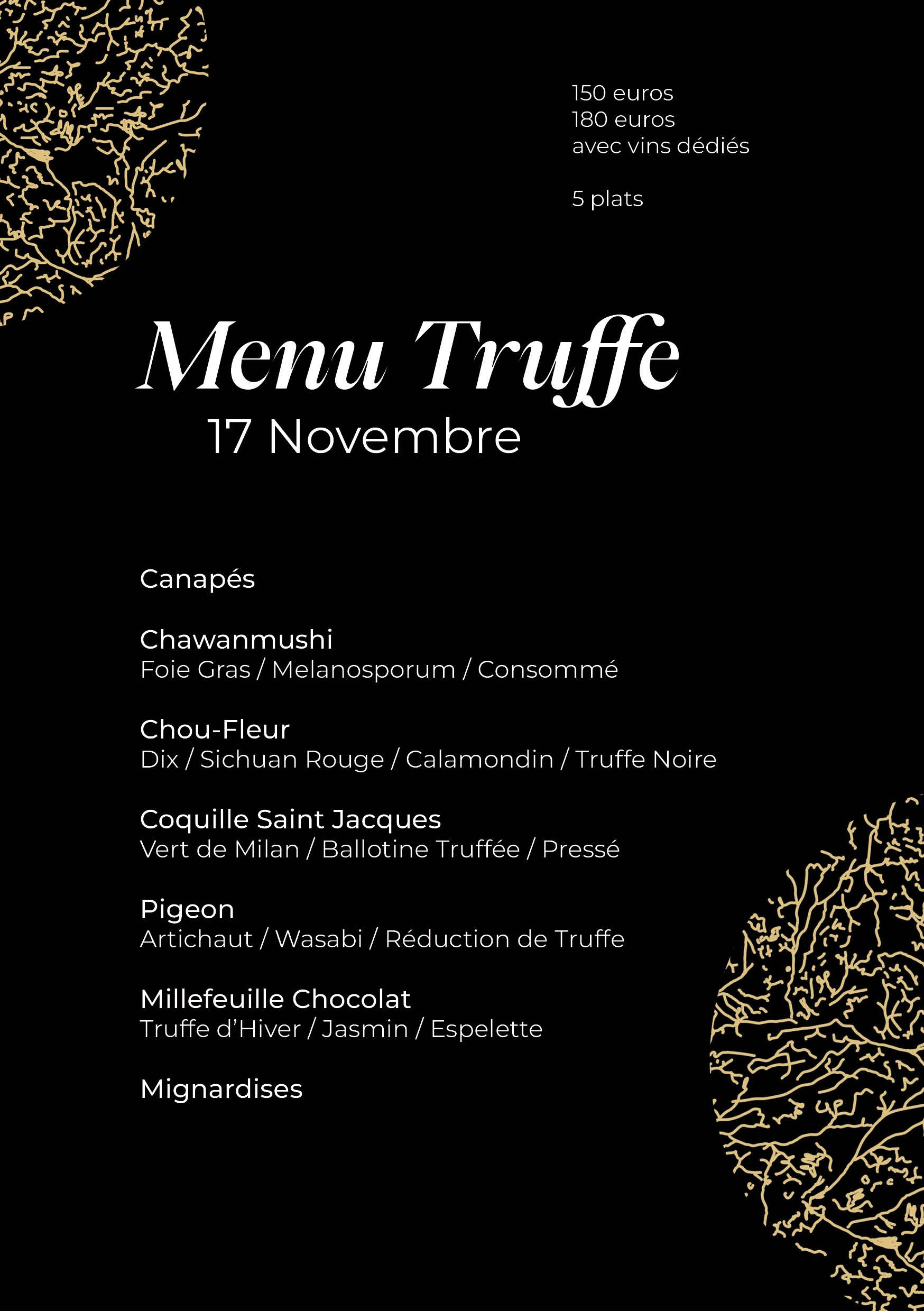 Des mignardises au dessert, la truffe est mise à l’honneur à travers des plats créatifs dont la revisite simplifiée de l’assiette gagnante du Prix Taittinger, autour de la Saint-Jacques.